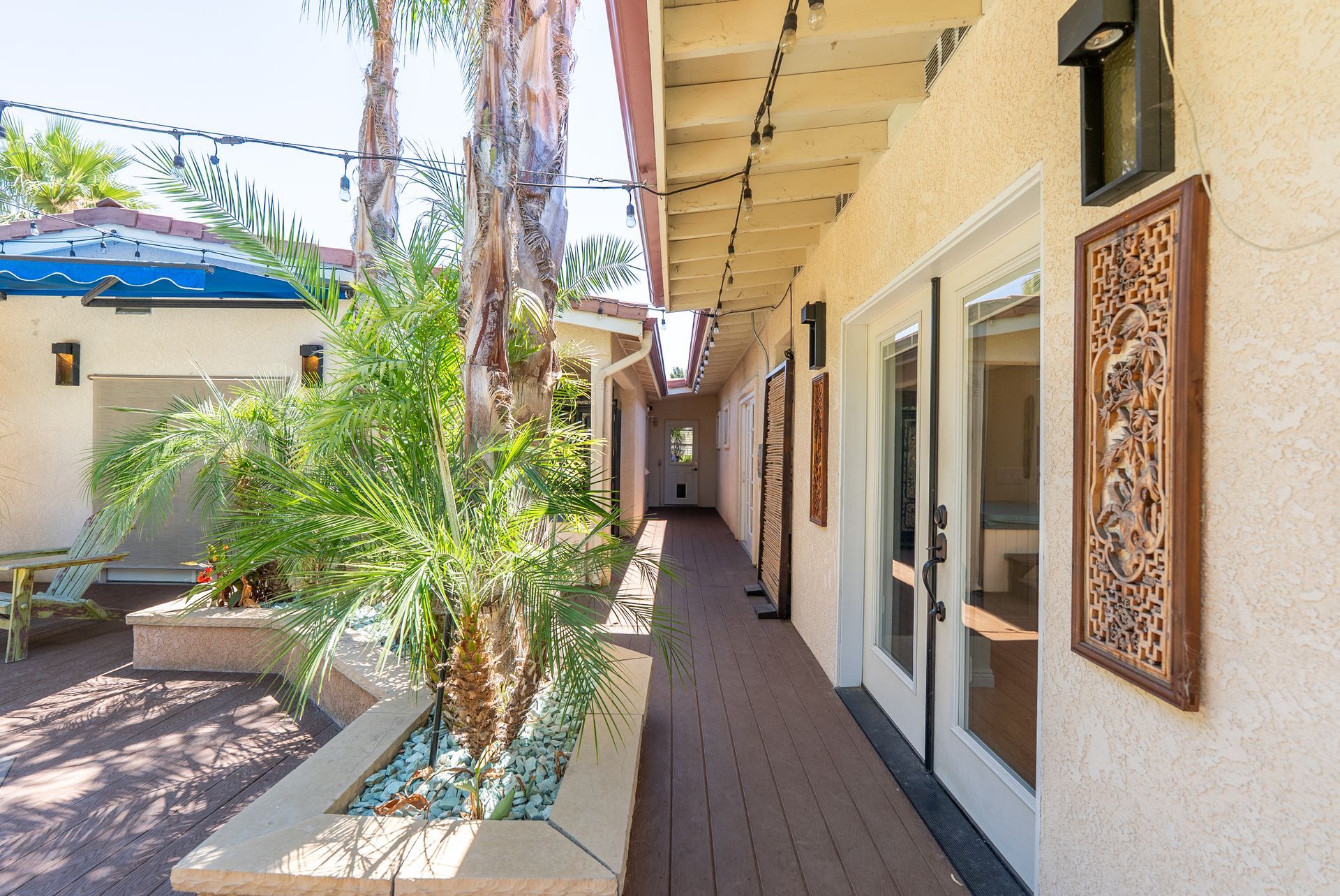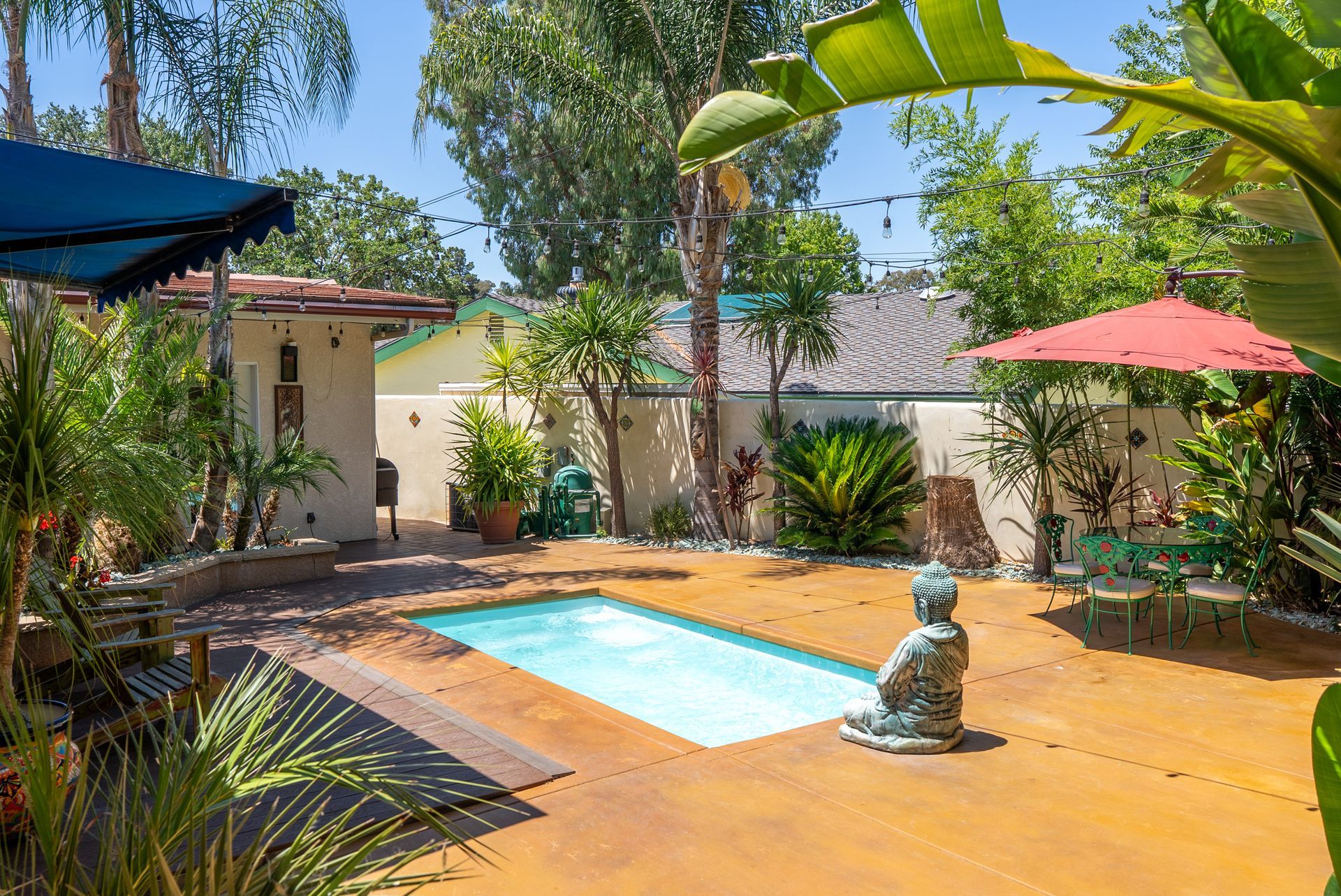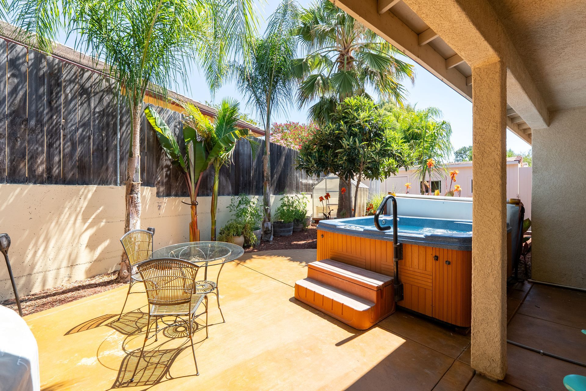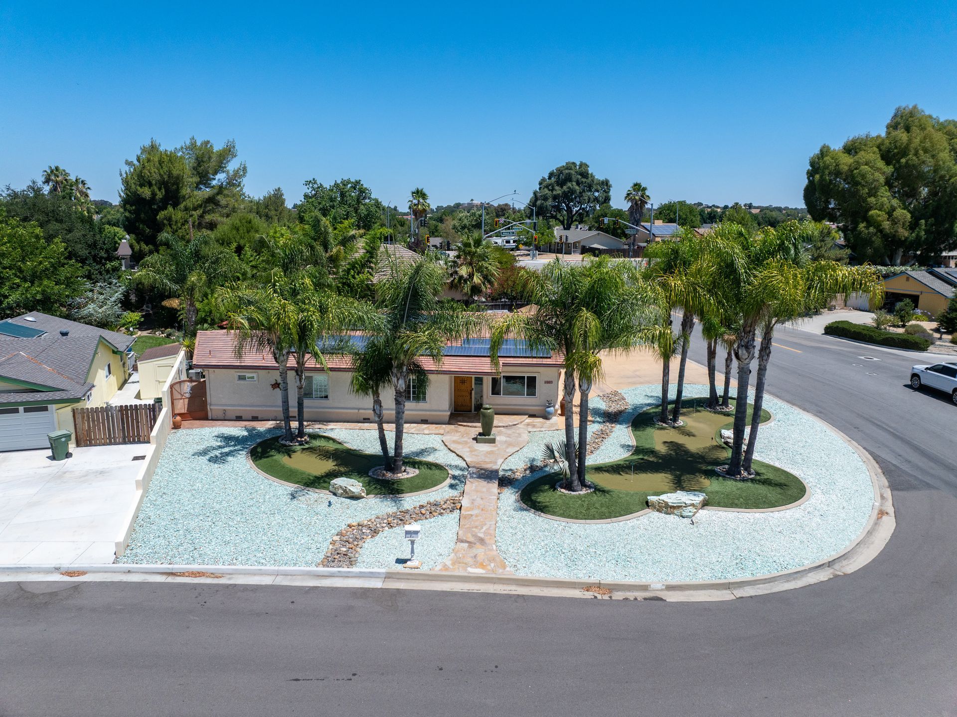 Welcome to your own Central Coast retreat in the heart of the renowned Paso Robles Wine Country. Just minutes from the Paso Robles Country Club and the beloved Deed’s Bar & Grill, this outstanding offering includes your own private putting green and a separate apartment. Step inside the main residence, with approximately 1,612 sf, to a light filled living room, dining area and stone trimmed chef’s kitchen. The open floor plan is functional and offers the easy and iconic California indoor/outdoor lifestyle. The chef’s kitchen includes a stainless steel appliance suite - refrigerator, gas range, built-in microwave, dishwasher, wine fridge—along with granite countertops and backsplash, a center island, breakfast bar, and custom cabinetry, including glass fronted display cabinets. Laundry is conveniently located off the kitchen and living room. The main house offers 4 bedrooms and 3 full bathrooms, including 2 primary suites, one which was added in 2019 and thoughtfully boasts French doors flowing easily outside to the resort style backyard, bamboo flooring, stunning inlaid built-in antique cabinetry, an extra deep closet, and a large walk-in tile and glass enclosed shower. A separate apartment of approximately 628 sf offers 1 bedroom and 1 bathroom, an open living space with a full kitchen, eating area and living area, all flowing outside to a private yard and jacuzzi – this space is perfect for a home office, in-law unit, private guest space and offers income potential which adds a whole bunch of value to this very special offering. The private backyard is a perfect landscape for entertaining and relaxing, highlighted by a sparkling swim spa, jacuzzi (yep, that adds up to 3 spas) and a tropical landscape including palm trees and mature bamboo plants. Features include sparkling hardwood flooring, ceiling fans, 36 solar panels, mirrored closet doors, 2 car garage, 2 storage sheds – one of which is ideal for golf cart storage. You will truly never want to leave this extraordinary oasis. Please do not miss this MOVE-IN residence that is centrally located close to the many amenities of downtown Paso Robles – cafes, boutiques, wine bars, annual events and so much more – award winning wineries, and local concert venues, and only a short drive to SLO County’s famous beach towns. Welcome to darn near paradise – aka Paso Robles.