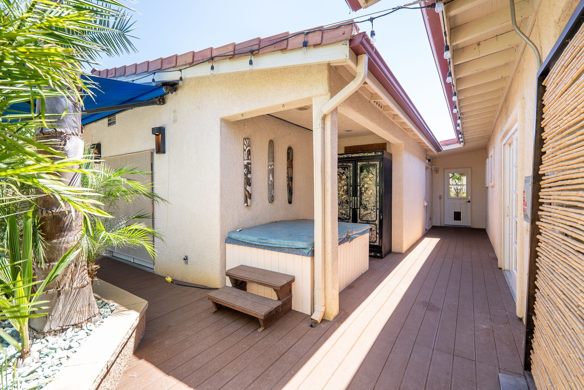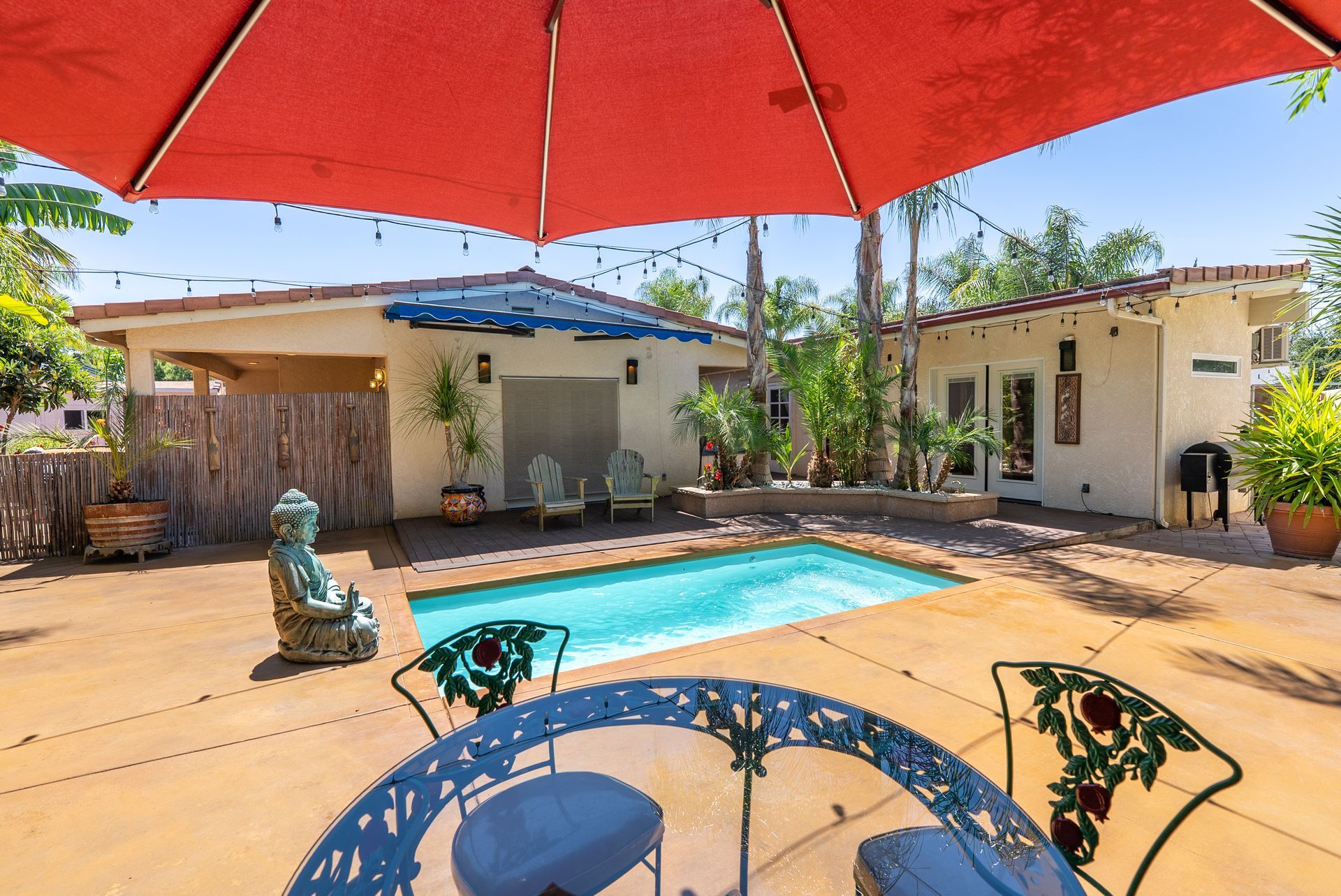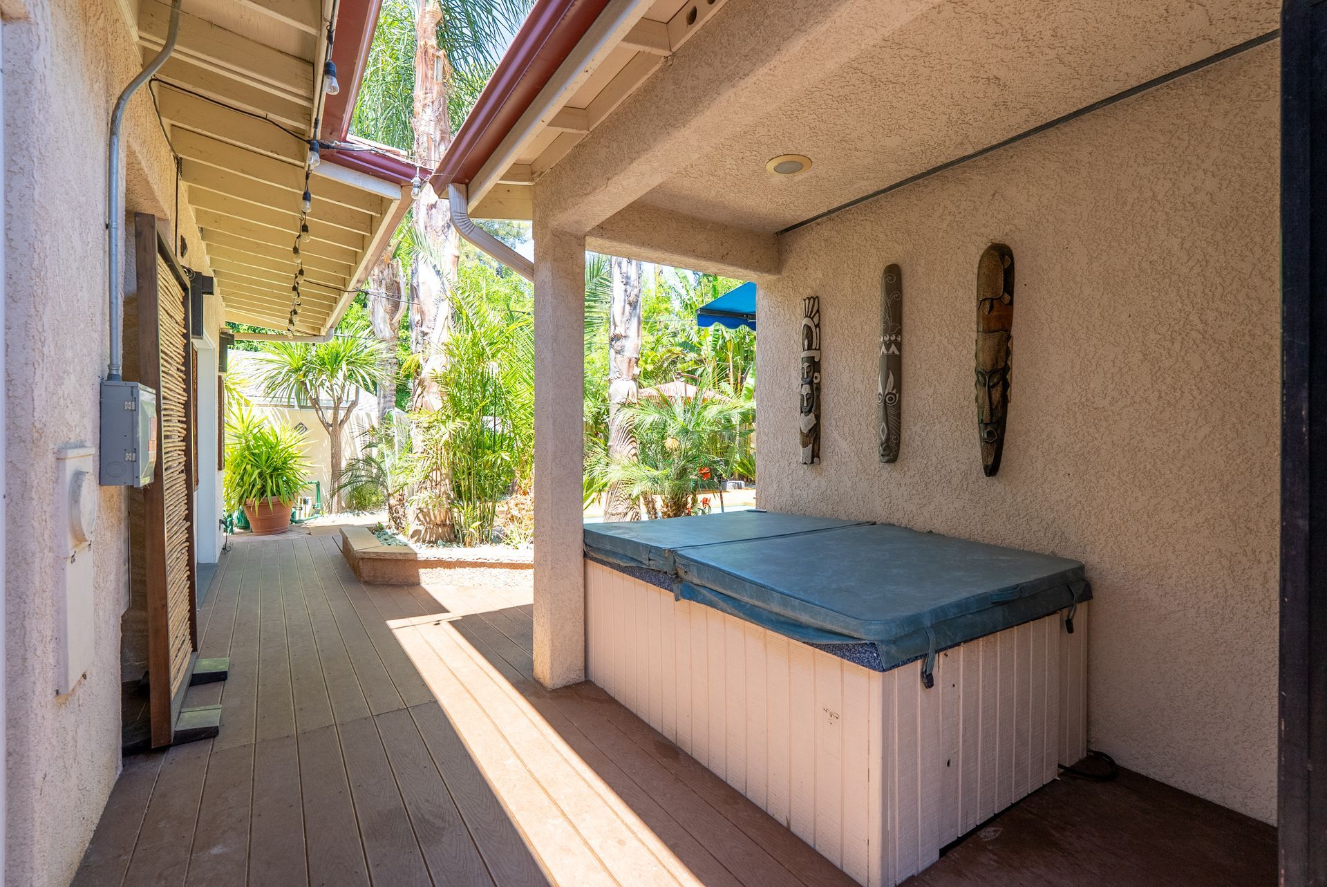 Welcome to your own Central Coast retreat in the heart of the renowned Paso Robles Wine Country. Just minutes from the Paso Robles Country Club and the beloved Deed’s Bar & Grill, this outstanding offering includes your own private putting green and a separate apartment. Step inside the main residence, with approximately 1,612 sf, to a light filled living room, dining area and stone trimmed chef’s kitchen. The open floor plan is functional and offers the easy and iconic California indoor/outdoor lifestyle. The chef’s kitchen includes a stainless steel appliance suite - refrigerator, gas range, built-in microwave, dishwasher, wine fridge—along with granite countertops and backsplash, a center island, breakfast bar, and custom cabinetry, including glass fronted display cabinets. Laundry is conveniently located off the kitchen and living room. The main house offers 4 bedrooms and 3 full bathrooms, including 2 primary suites, one which was added in 2019 and thoughtfully boasts French doors flowing easily outside to the resort style backyard, bamboo flooring, stunning inlaid built-in antique cabinetry, an extra deep closet, and a large walk-in tile and glass enclosed shower. A separate apartment of approximately 628 sf offers 1 bedroom and 1 bathroom, an open living space with a full kitchen, eating area and living area, all flowing outside to a private yard and jacuzzi – this space is perfect for a home office, in-law unit, private guest space and offers income potential which adds a whole bunch of value to this very special offering. The private backyard is a perfect landscape for entertaining and relaxing, highlighted by a sparkling swim spa, jacuzzi (yep, that adds up to 3 spas) and a tropical landscape including palm trees and mature bamboo plants. Features include sparkling hardwood flooring, ceiling fans, 36 solar panels, mirrored closet doors, 2 car garage, 2 storage sheds – one of which is ideal for golf cart storage. You will truly never want to leave this extraordinary oasis. Please do not miss this MOVE-IN residence that is centrally located close to the many amenities of downtown Paso Robles – cafes, boutiques, wine bars, annual events and so much more – award winning wineries, and local concert venues, and only a short drive to SLO County’s famous beach towns. Welcome to darn near paradise – aka Paso Robles.