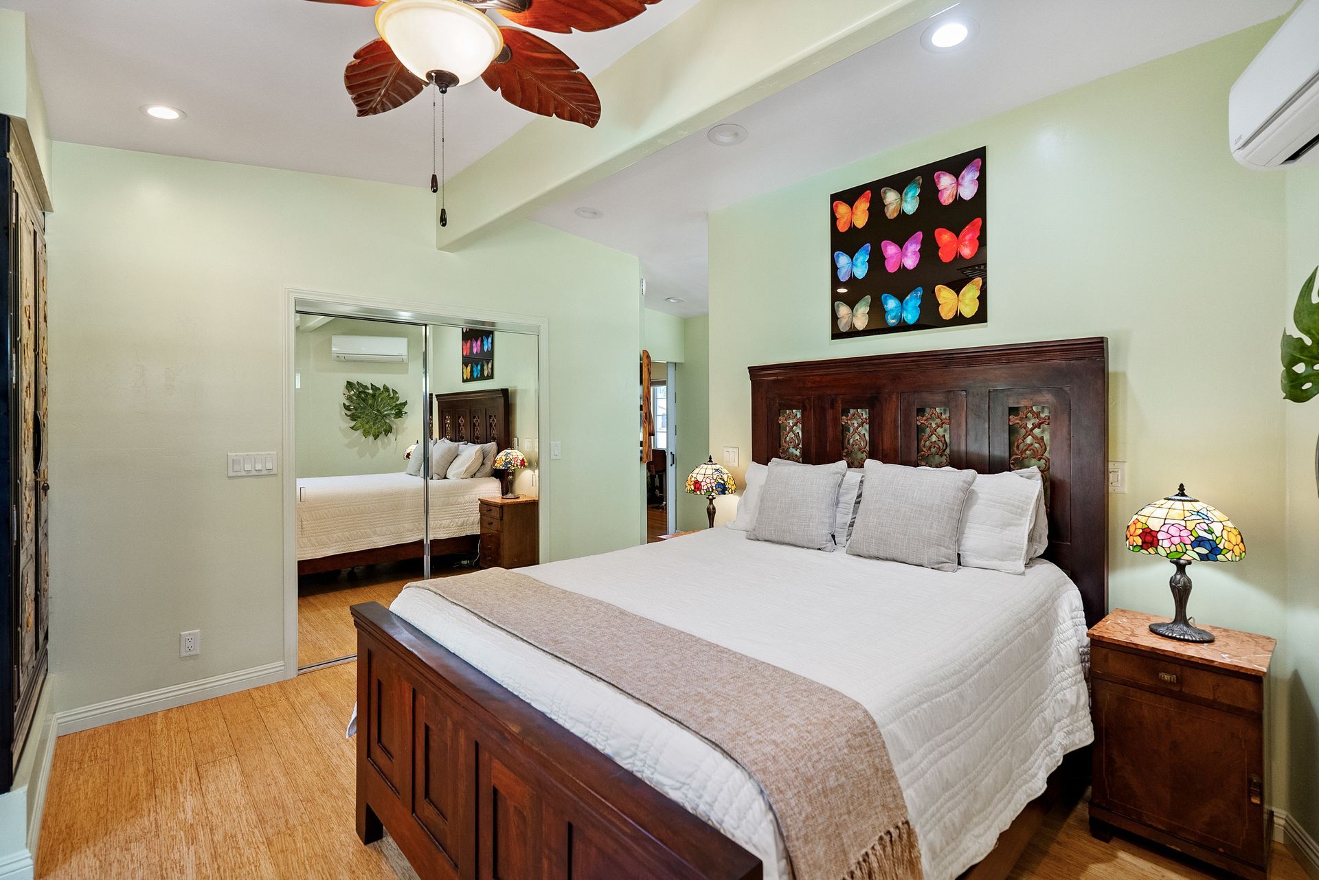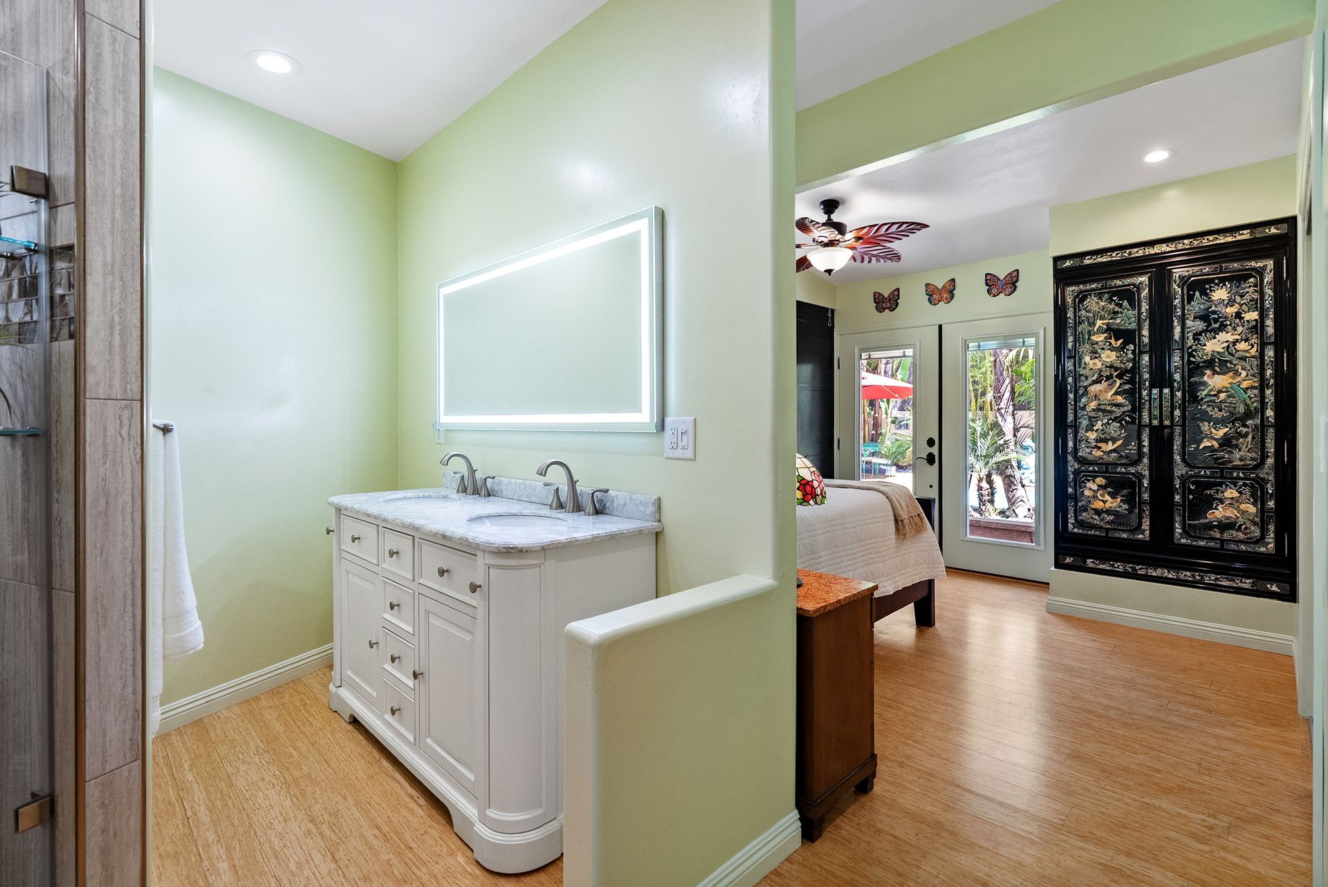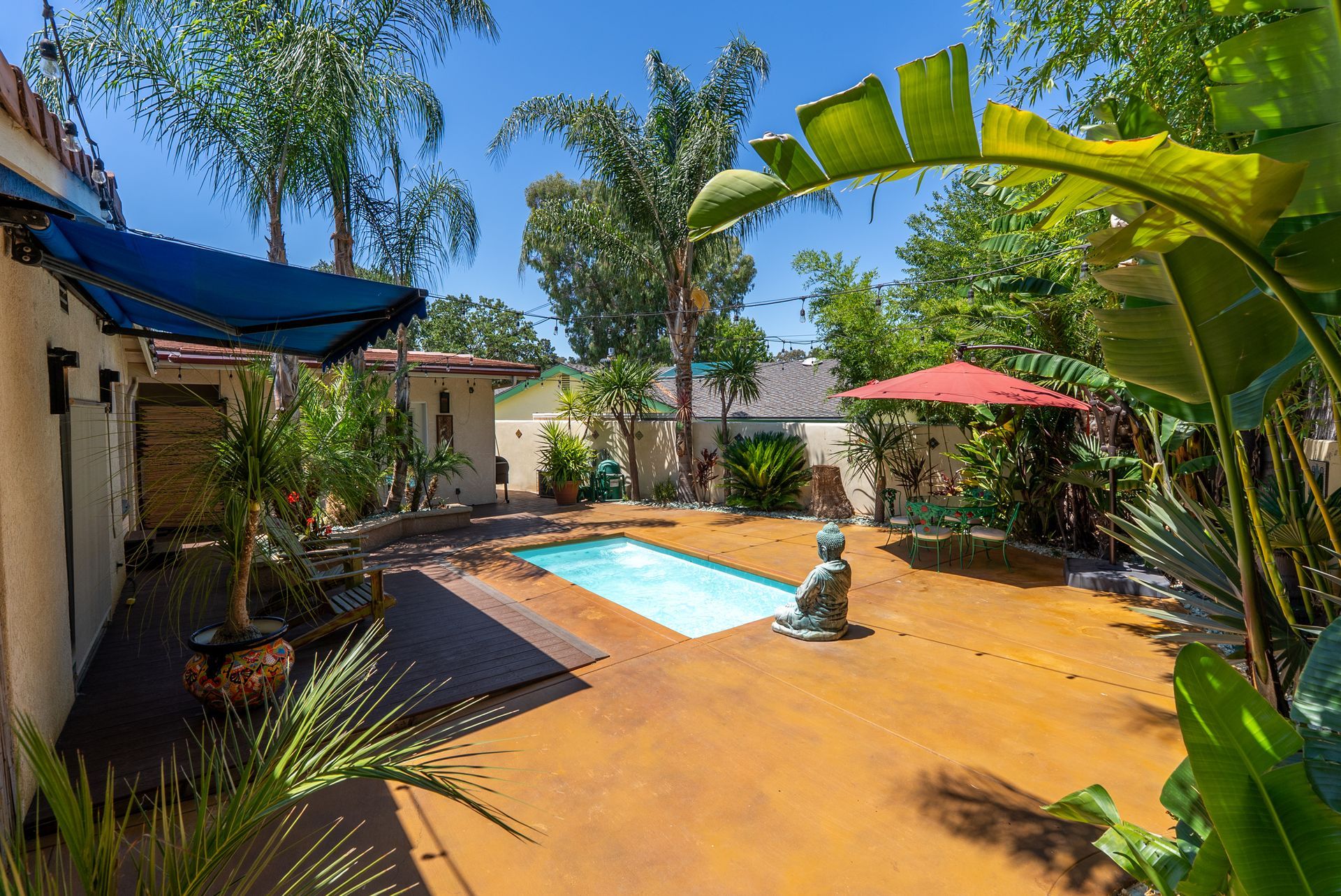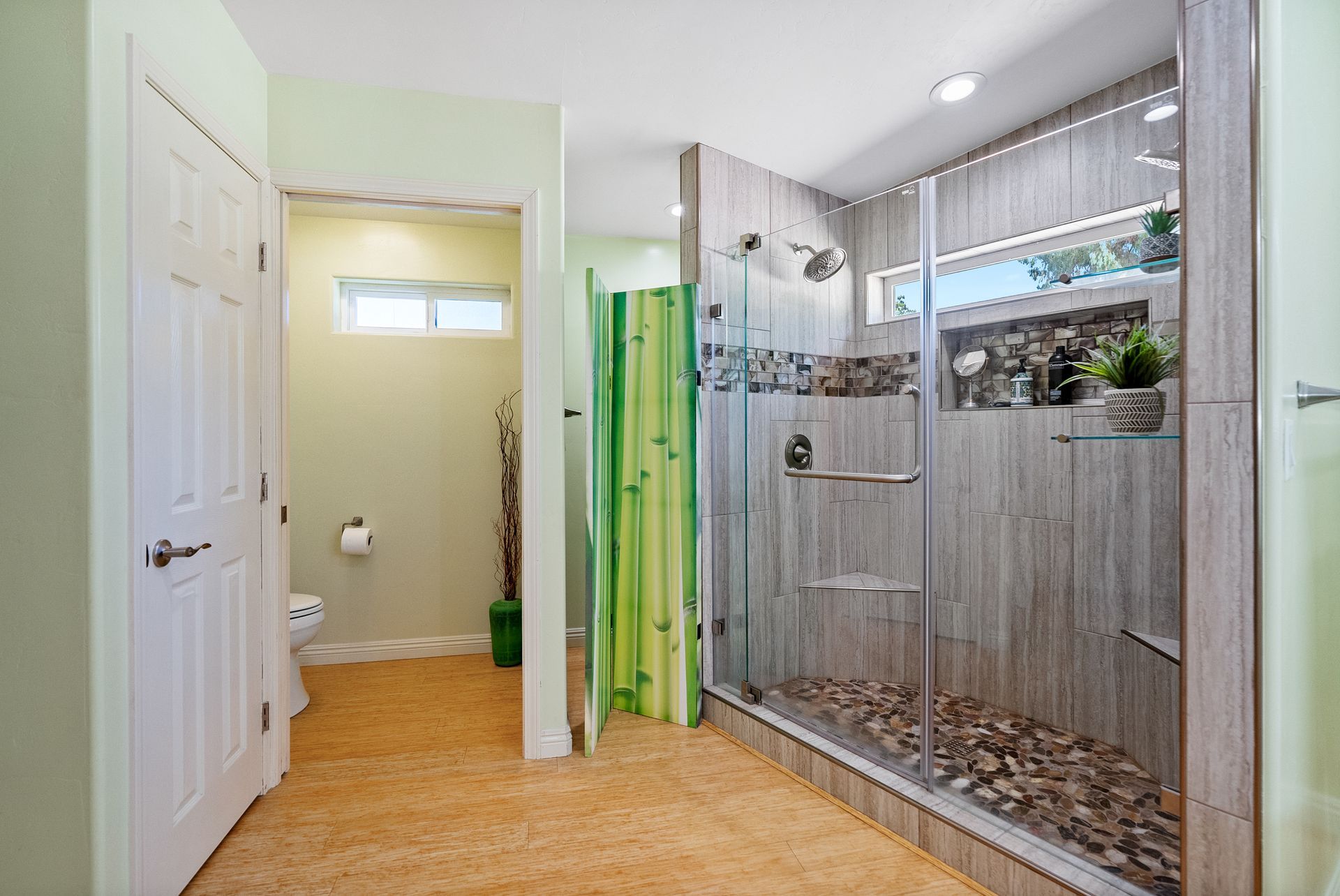 Welcome to your own Central Coast retreat in the heart of the renowned Paso Robles Wine Country. Just minutes from the Paso Robles Country Club and the beloved Deed’s Bar & Grill, this outstanding offering includes your own private putting green and a separate apartment. Step inside the main residence, with approximately 1,612 sf, to a light filled living room, dining area and stone trimmed chef’s kitchen. The open floor plan is functional and offers the easy and iconic California indoor/outdoor lifestyle. The chef’s kitchen includes a stainless steel appliance suite - refrigerator, gas range, built-in microwave, dishwasher, wine fridge—along with granite countertops and backsplash, a center island, breakfast bar, and custom cabinetry, including glass fronted display cabinets. Laundry is conveniently located off the kitchen and living room. The main house offers 4 bedrooms and 3 full bathrooms, including 2 primary suites, one which was added in 2019 and thoughtfully boasts French doors flowing easily outside to the resort style backyard, bamboo flooring, stunning inlaid built-in antique cabinetry, an extra deep closet, and a large walk-in tile and glass enclosed shower. A separate apartment of approximately 628 sf offers 1 bedroom and 1 bathroom, an open living space with a full kitchen, eating area and living area, all flowing outside to a private yard and jacuzzi – this space is perfect for a home office, in-law unit, private guest space and offers income potential which adds a whole bunch of value to this very special offering. The private backyard is a perfect landscape for entertaining and relaxing, highlighted by a sparkling swim spa, jacuzzi (yep, that adds up to 3 spas) and a tropical landscape including palm trees and mature bamboo plants. Features include sparkling hardwood flooring, ceiling fans, 36 solar panels, mirrored closet doors, 2 car garage, 2 storage sheds – one of which is ideal for golf cart storage. You will truly never want to leave this extraordinary oasis. Please do not miss this MOVE-IN residence that is centrally located close to the many amenities of downtown Paso Robles – cafes, boutiques, wine bars, annual events and so much more – award winning wineries, and local concert venues, and only a short drive to SLO County’s famous beach towns. Welcome to darn near paradise – aka Paso Robles.