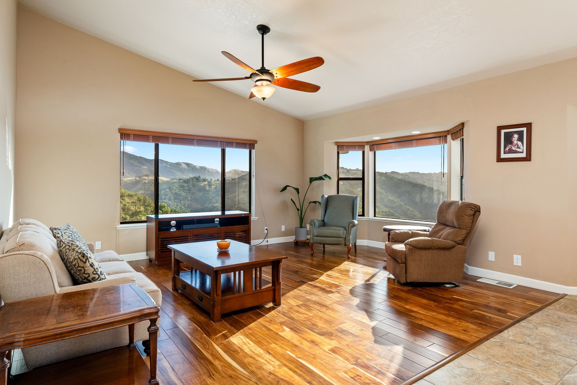VIEWS, VIEWS, and MORE VIEWS from every room of this extraordinary property. On a clear day, you can see forever. 10630 San Marcos is a truly exceptional offering, both inside and out. This property features a finished 3-car garage spanning approximately 988 square feet, which includes a dedicated office/workshop space, 220 v 50 amp outlet, a convenient half bathroom, and a covered carport for additional parking. Additionally, there is an unfinished basement offering a generous amount of extra storage and space for various activities, separate pad for RV parking, and potential for an Accessory Dwelling Unit (ADU). This stunning single-family residence provides an abundance of space and luxurious features, making it perfect for families and guests. The home is designed on a single level with a functional and open floor plan, allowing every room to capture breathtaking views of the majestic coastal hills. The living spaces seamlessly move to the recently renovated rear deck, which offers tranquil outdoor space and embodies the highly sought-after California indoor/outdoor lifestyle. This expansive home boasts 4 spacious bedrooms, 3 well-appointed quartz trimmed bathrooms, gleaming acacia wood floors, dual paned windows with additional tinted coating and sunshades, and 8 skylights. The property includes both a formal living room and a comfortable family room, along with a dedicated indoor laundry room for added convenience. The modern kitchen is a chef's delight, featuring a 5 burner gas stove top with griddle insert, granite countertops, stainless steel appliances, and sleek white cabinetry, it flows effortlessly to the family and dining rooms, creating an ideal space for entertaining guests. A generous primary suite showcases the views, a walk-in closet and an updated bathroom with quartz countertops, dual sinks and a glass enclosed shower. This substantial custom home is move-in ready, built to last, and situated on a picturesque 5.26-acre oak-studded parcel, providing ample space for outdoor activities. The setting is private and serene, offering a peaceful retreat from the hustle and bustle of everyday life, yet it is only a short drive to the charming downtown of Atascadero and the beautiful coastal town of Morro Bay.
