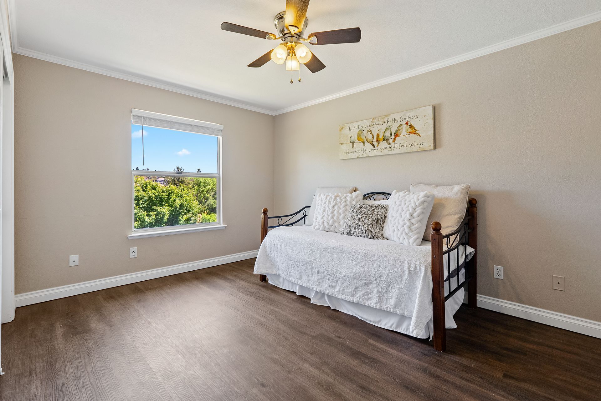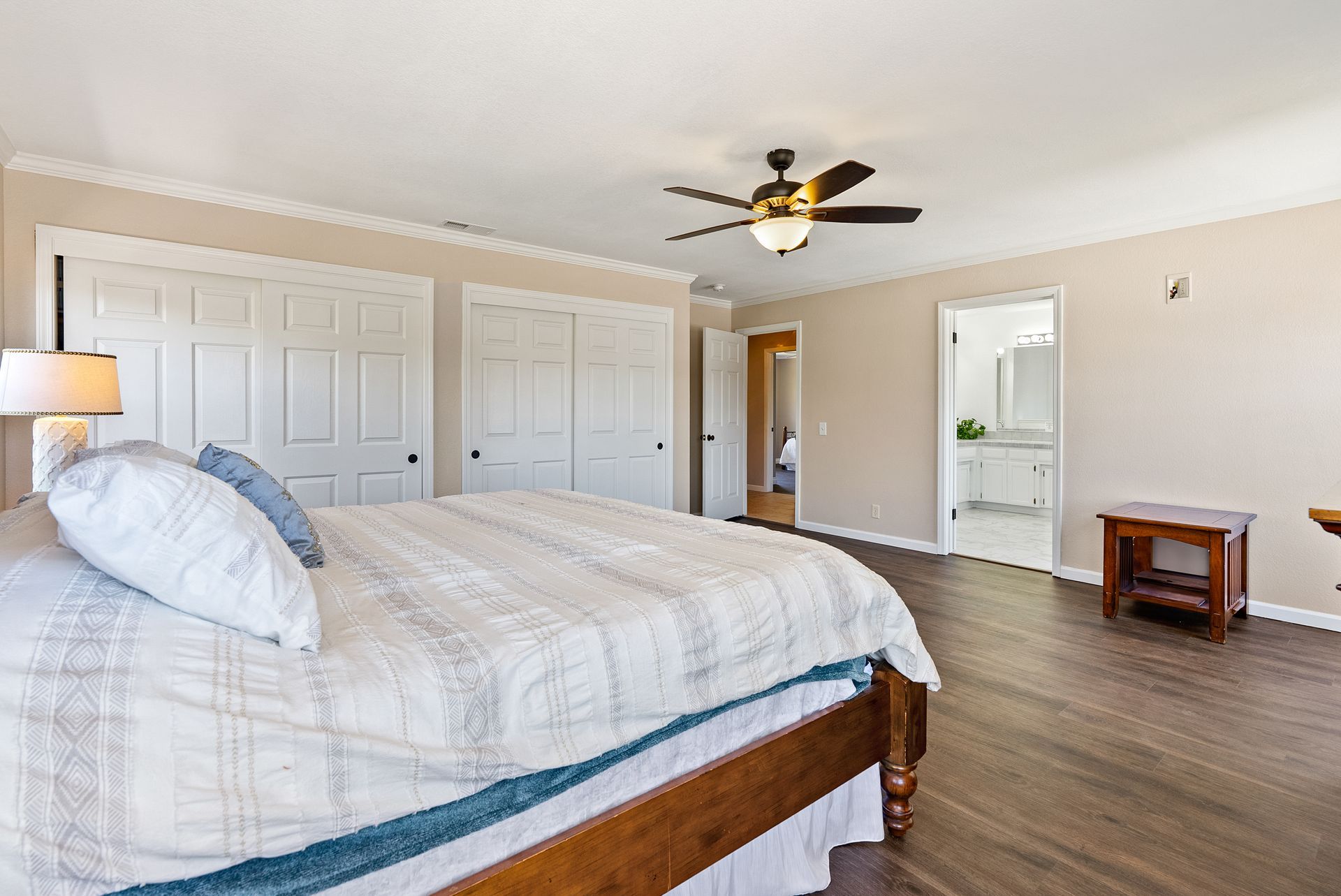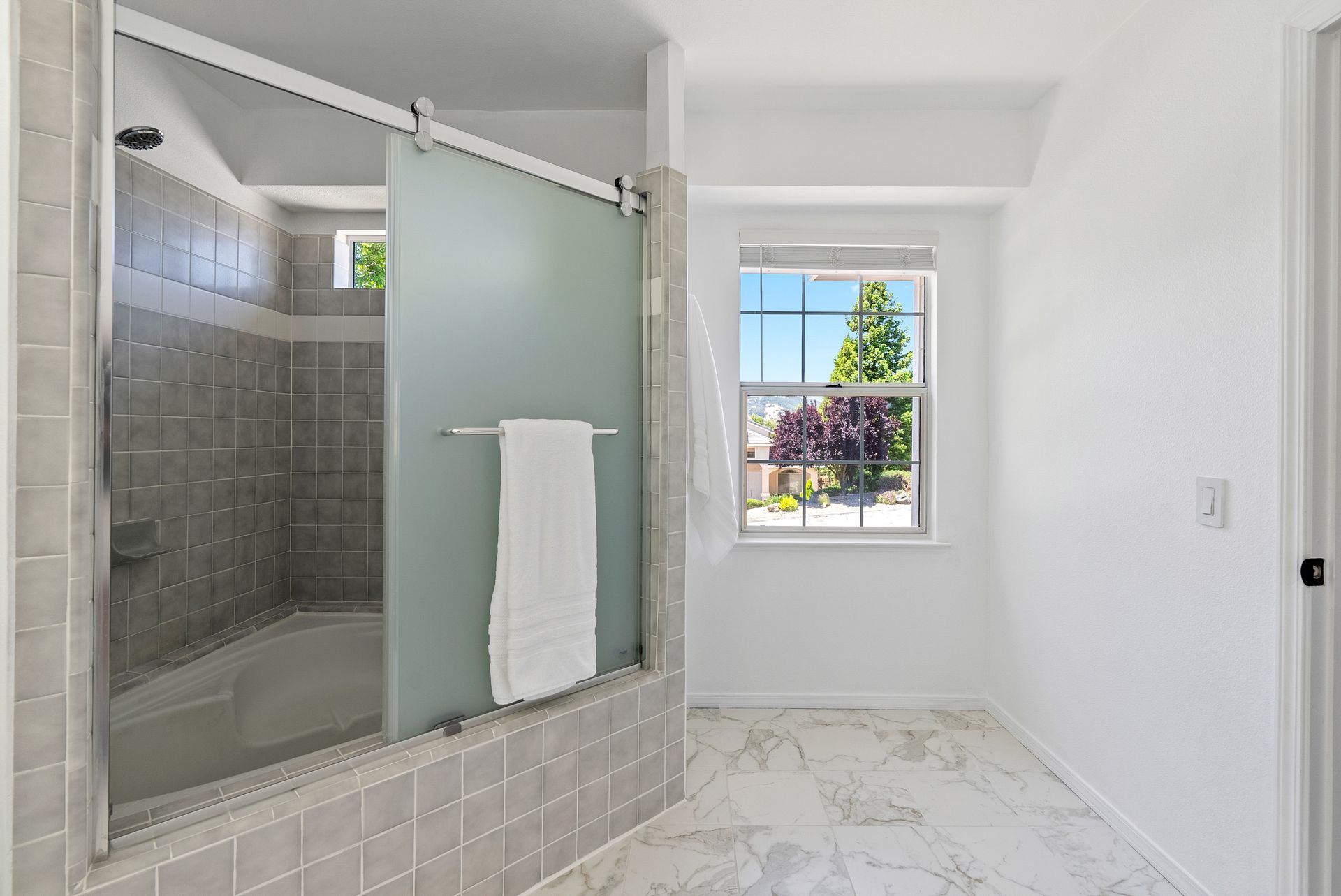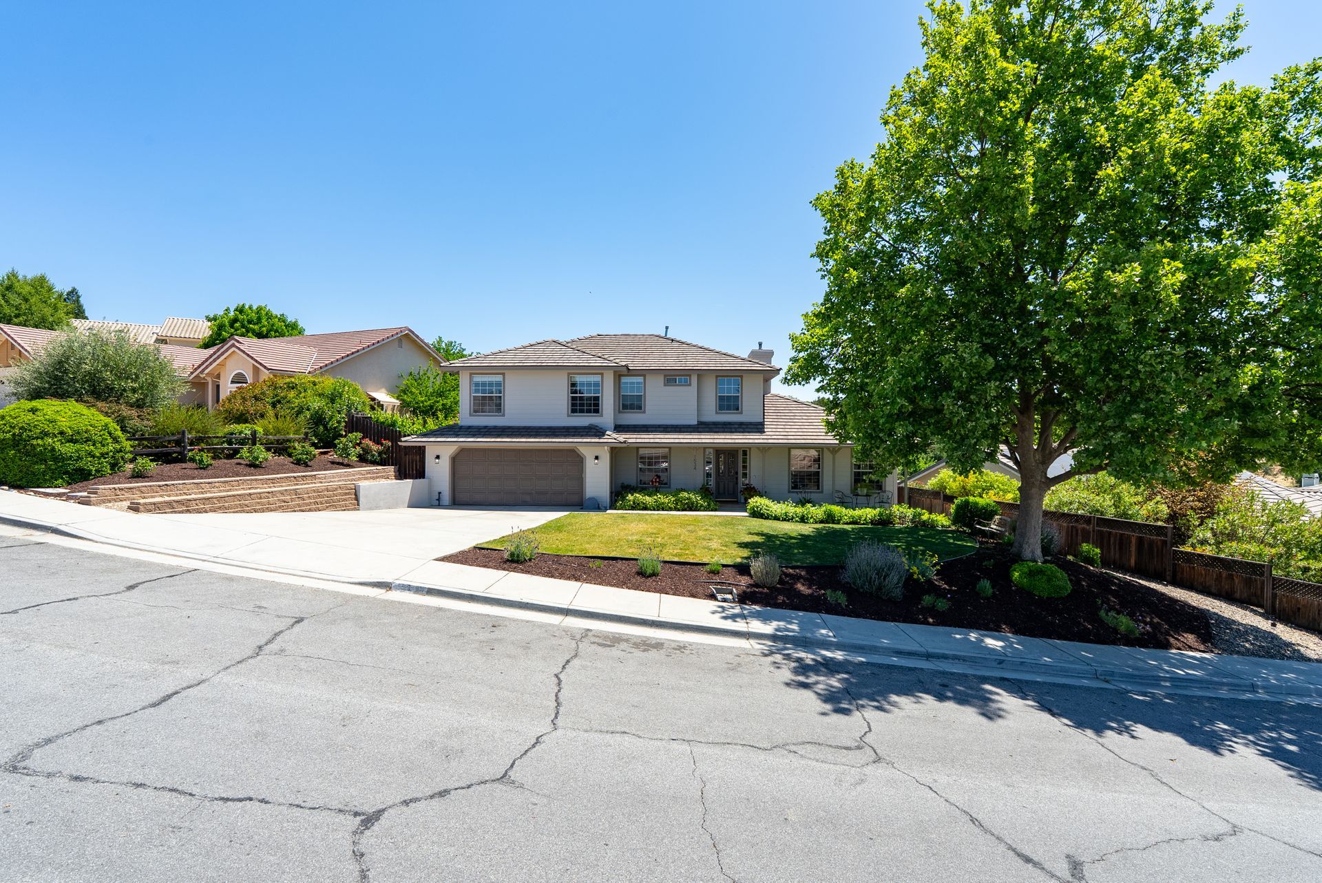 This truly is THE ONE for which you’ve been waiting! Move-in ready & nestled in one of Paso Robles’ most desirable neighborhoods, this beautiful residence offers an indoor/outdoor flow, comfort & stunning views of the rolling coastal hills from every room. A welcoming covered front porch sets the tone, inviting you into the formal entryway & a spacious, light-filled living room which easily flows out to the appreciably sized backyard (almost 1/3 of an acre). The covered rear patio creates an ideal space for relaxing while enjoying the serene surroundings. The heart of the home is the stunning chef’s kitchen, thoughtfully remodeled with luxurious finishes. Highlights include custom granite countertops sourced from Brazil, designer subway tile backsplash, a walk-in pantry, stainless steel appliances including a 5-burner gas range, French-door refrigerator, built-in microwave, dishwasher & farm-style sink. A large center island w/ breakfast bar offers ample space for entertaining, including a built-in wine fridge. Adjacent to the kitchen is a generously sized granite trimmed laundry room w/ a sink & powder room. Just off the entryway, a spacious study features custom built-ins; this space can easily serve as a home office & guest space. Upstairs are 3 spacious bedrooms, including a serene primary suite w/ treetop views, a light & bright ensuite bathroom with dual sinks. The additional bedrooms are well-sized & the updated hall bathroom features a modern vanity. Additional features include luxury vinyl flooring, Simplisafe camera/doorbell, custom hardware, USB outlets, adding style & function. The backyard is a true standout, featuring 10 grapevines of several varietals, along w/ cherry, plum & pear trees that produce delicious fruit – perfect for sharing, making jam, enjoying Paso’s summer harvest. Outdoor living is enhanced w/ multiple entertaining spaces including covered front & back porches, an elevated patio w/ expansive views, where you can actually watch launches from Vandenberg Space Force Base, a basketball/game court & storage shed. The attached two-car garage includes a new garage door opener & additional built-in storage. This light-filled home blends tasteful updates, thoughtful design & natural beauty – making it a rare and exceptional opportunity. Rounding out this offering is the close proximity to the iconic downtown Paso Robles w/ its myriad of wine bars, restaurants, boutiques, cafes, & renowned annual events. Welcome home!