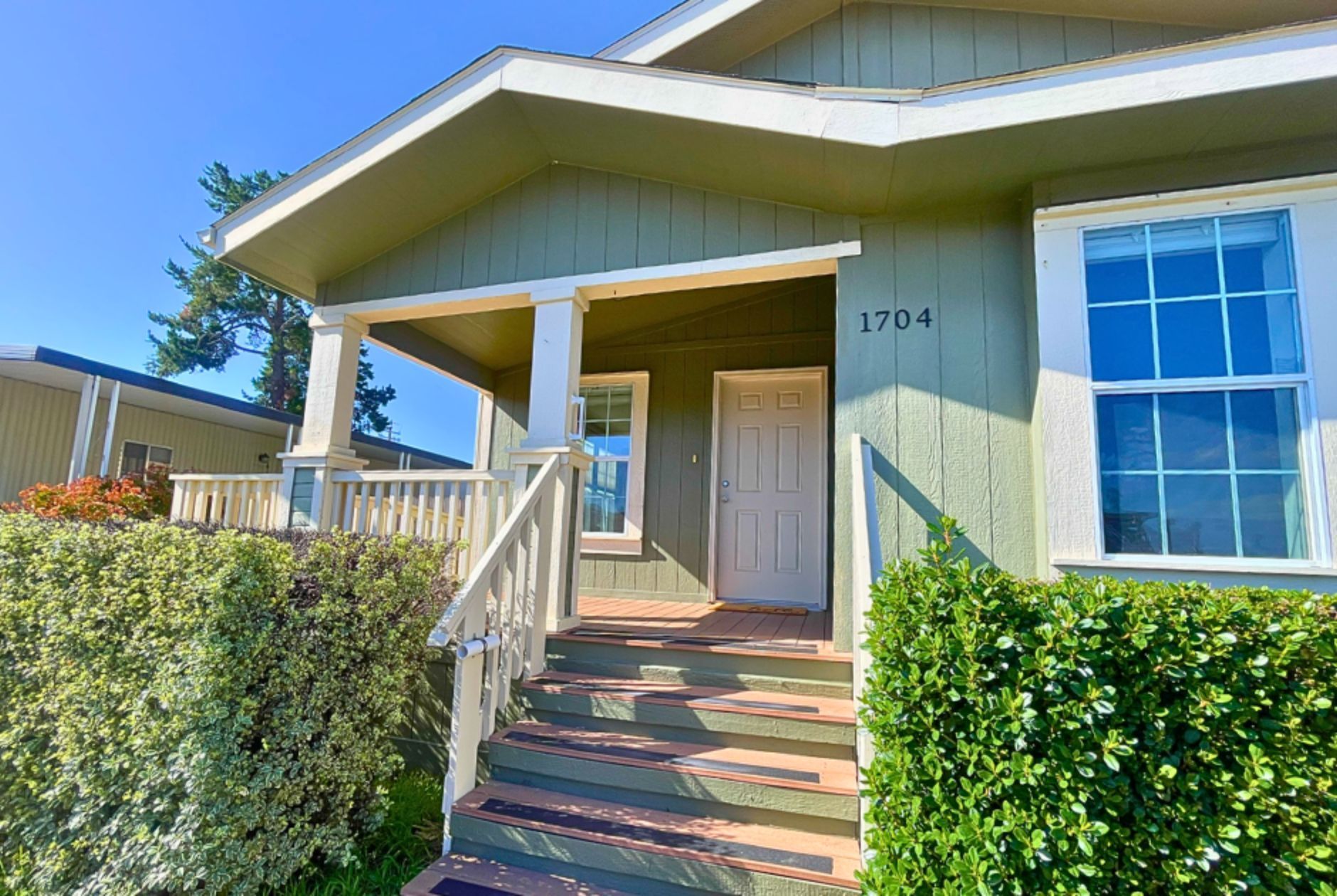 Wow! This is THE ONE for which you’ve been waiting. Situated in the desirable all age Laguna Lake Mobile Estates in the fabulous Perfumo Canyon area & centrally located to the many amenities of SLO, this beautiful & move-in ready manufactured home is comfortable & tranquil, drenched in views of the stunning Irish Hills. Recent upgrades include fresh interior paint throughout & new carpet in the secondary bedrooms. The ambiance of this special residence is enhanced by high ceilings, gleaming luxury vinyl flooring & a neutral palette. The front living areas seamlessly flow to the charming covered front porch, embracing the quintessential California indoor-outdoor lifestyle. The kitchen is equipped with a stainless steel appliance suite, gas burning stove, plentiful cabinetry, & easily opens into the spacious dining nook. The open concept floorplan’s front living areas are functional & framed by a myriad of windows creating a light & bright canvas. A private primary suite offers a generous walk-in closet, shower, vanity & linen closet. Two other bedrooms & a full sized hall bathroom round out the private spaces, allowing for guest & home office space. Interior appointments include ceiling fans, custom window shades & a dedicated laundry room with a back door leading to the carport & storage shed further enhancing the versatility of this elegant residence. Outside, you’ll find a yard which wraps around the home, perfect for gardening or relaxing. This home includes access to the incredible amenities of Laguna Lake Mobile Home Estates which include RV parking, a clubhouse with a full catering kitchen, meeting room, banquet facilities, sitting area graced by a majestic fireplace; an annex clubhouse (yep, that essentially makes 2 clubhouses!) with another full kitchen and meeting room, library and craft room; a seriously large swimming pool for exercise as well as lounging; sparkling spa, lots of monthly activities including potlucks & games, all of which provide excellent spaces to enjoy & connect w/ your wonderful neighbors. This truly is a terrific community with neighbors who care about each other. Move-in ready, this clean and well-kept home combines convenience, comfort, & community living in a prime location. Close proximity to downtown SLO, local shopping centers & our fabulous coastal towns and beaches, too. With modern features, an open & airy interior & vibrant community setting, 1704 Garnette Drive fully embraces the charm of Central Coast living.