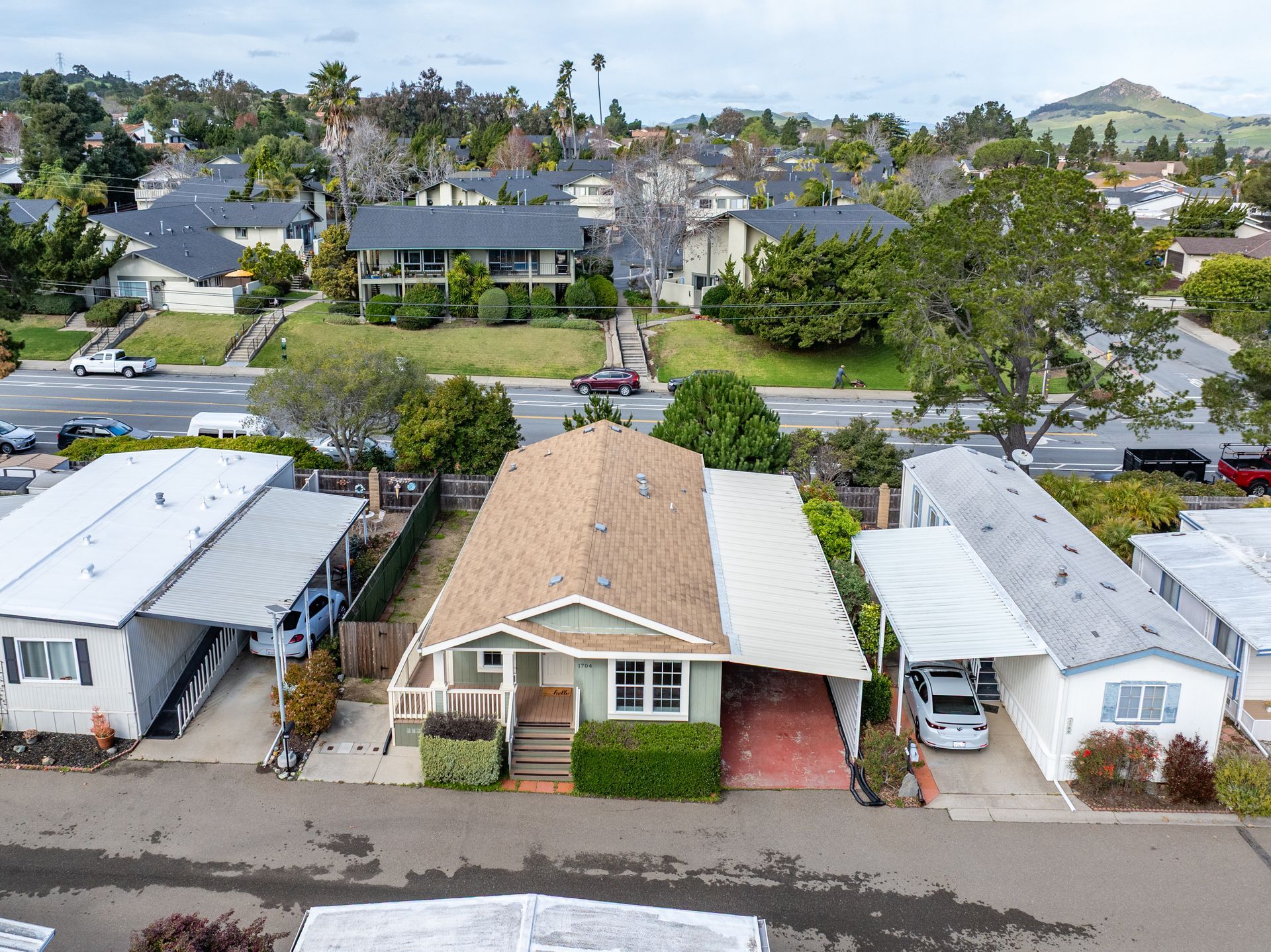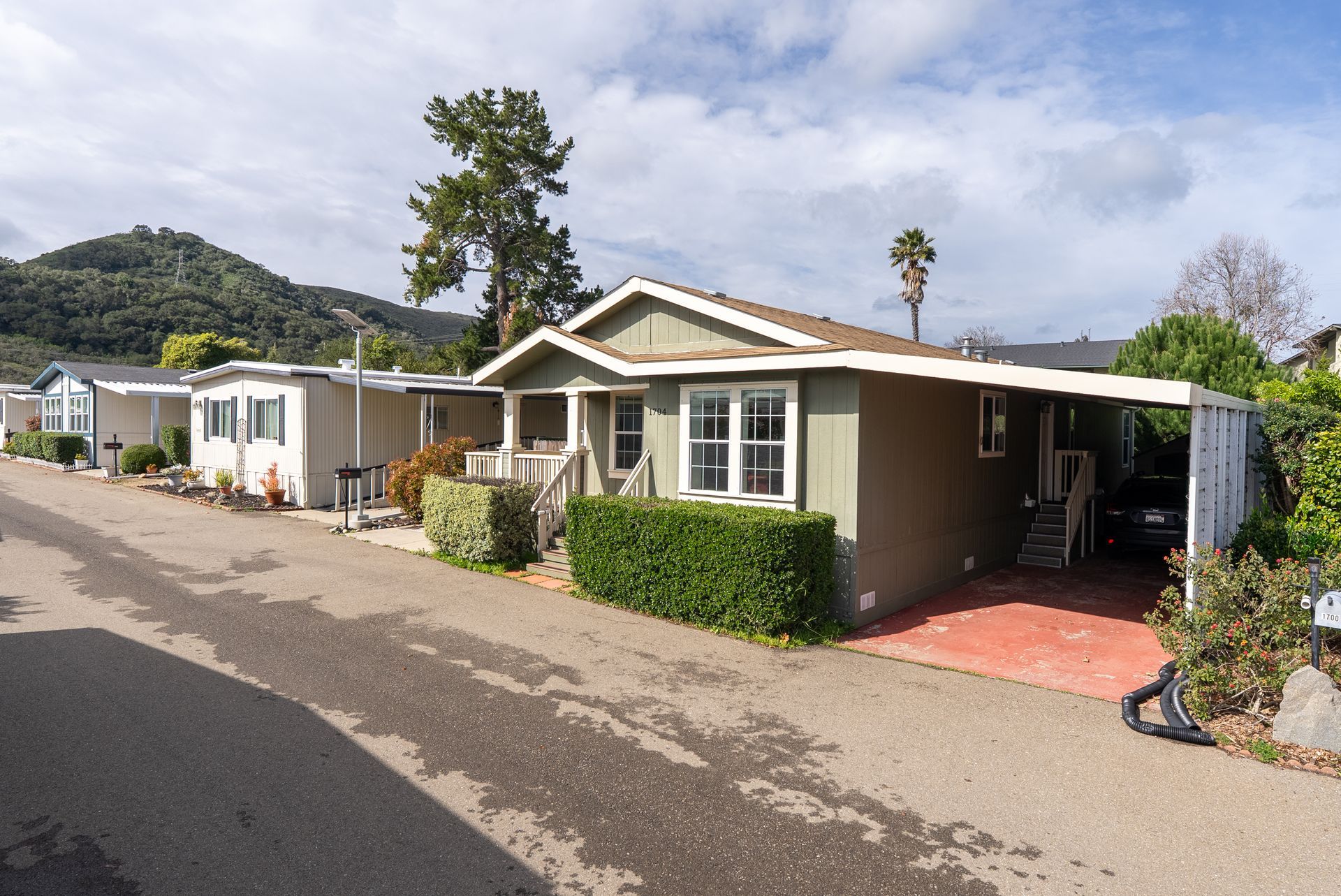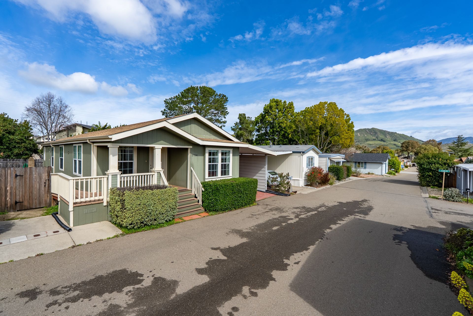 Wow! This is THE ONE for which you’ve been waiting. Situated in the desirable all age Laguna Lake Mobile Estates in the fabulous Perfumo Canyon area & centrally located to the many amenities of SLO, this beautiful & move-in ready manufactured home is comfortable & tranquil, drenched in views of the stunning Irish Hills. Recent upgrades include fresh interior paint throughout & new carpet in the secondary bedrooms. The ambiance of this special residence is enhanced by high ceilings, sparkling luxury vinyl flooring & a neutral palette. The front living areas seamlessly flow to the charming covered front porch, embracing the quintessential California indoor-outdoor lifestyle. The kitchen is equipped w/ a stainless steel appliance suite, gas burning stove, plentiful cabinetry, & easily opens into the spacious dining nook. The open concept floorplan’s front living areas are functional & framed by a myriad of windows creating a light & bright canvas. A private primary suite offers a generous walk-in closet, shower, vanity & linen closet. Two other bedrooms & a full sized hall bathroom round out the private spaces, allowing for guest & home office space. Interior appointments include ceiling fans, custom window shades & a dedicated laundry room with a back door leading to the carport & storage shed further enhancing the versatility of this elegant residence. Outside, you’ll find a yard which wraps around the home, perfect for gardening or relaxing. This home includes access to the incredible amenities of Laguna Lake Mobile Home Estates which include RV parking, a clubhouse with a full catering kitchen, meeting room, banquet facilities, sitting area graced by a majestic fireplace; an annex clubhouse (yep, that essentially makes 2 clubhouses!) with another full kitchen and meeting room, library and craft room; a seriously large swimming pool for exercise as well as lounging; sparkling spa, lots of monthly activities including potlucks & games, all of which provide excellent spaces to enjoy & connect with your wonderful neighbors. This truly is a terrific community with neighbors who care about each other. Move-in ready, this clean and well-kept home combines convenience, comfort, & community living in a prime location. Close proximity to downtown SLO, local shopping centers & our fabulous coastal towns and beaches, too. With modern features, an open & airy interior & vibrant community setting, 1704 Garnette Drive fully embraces the charm of Central Coast living.