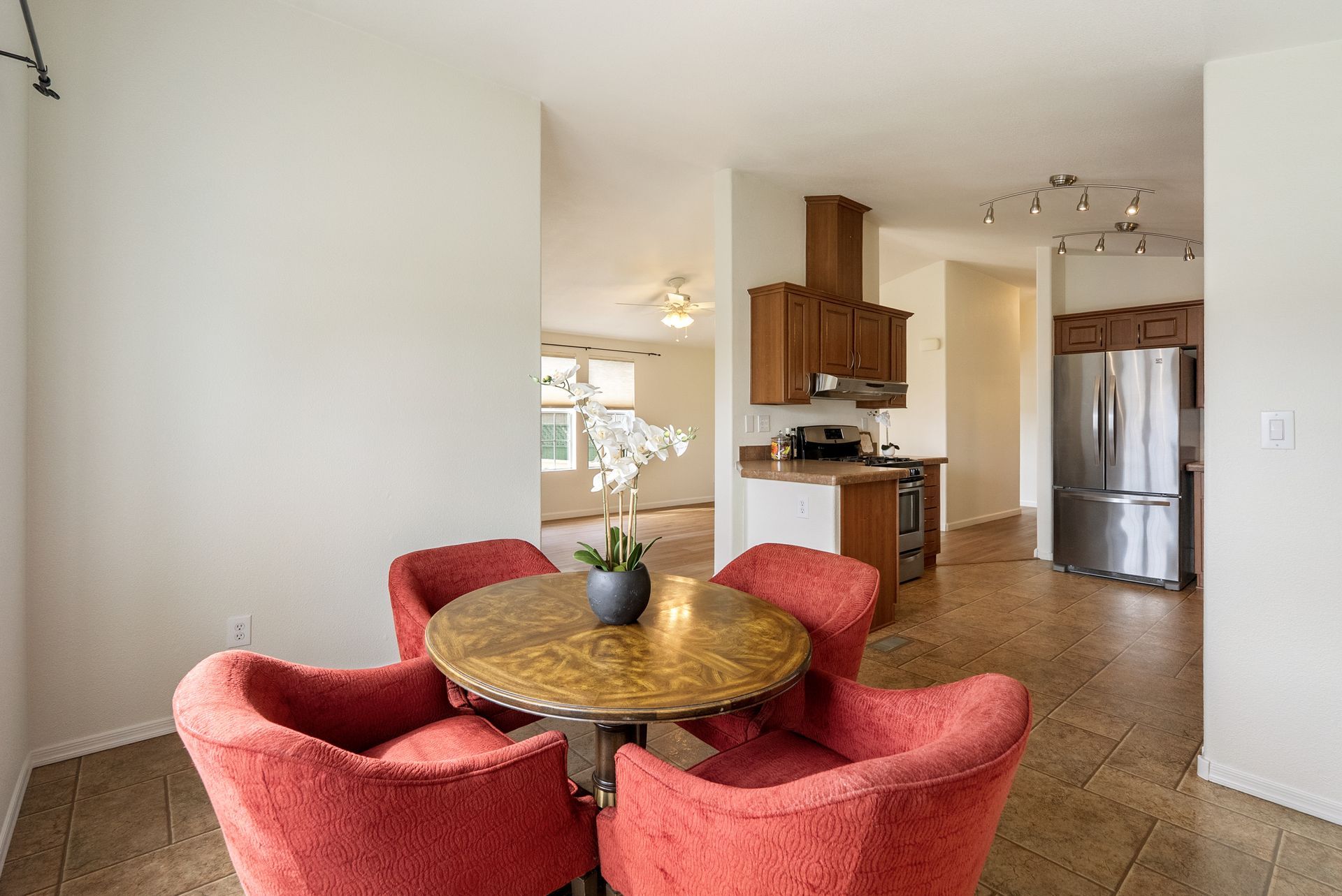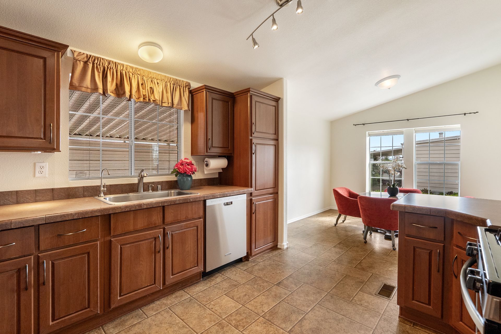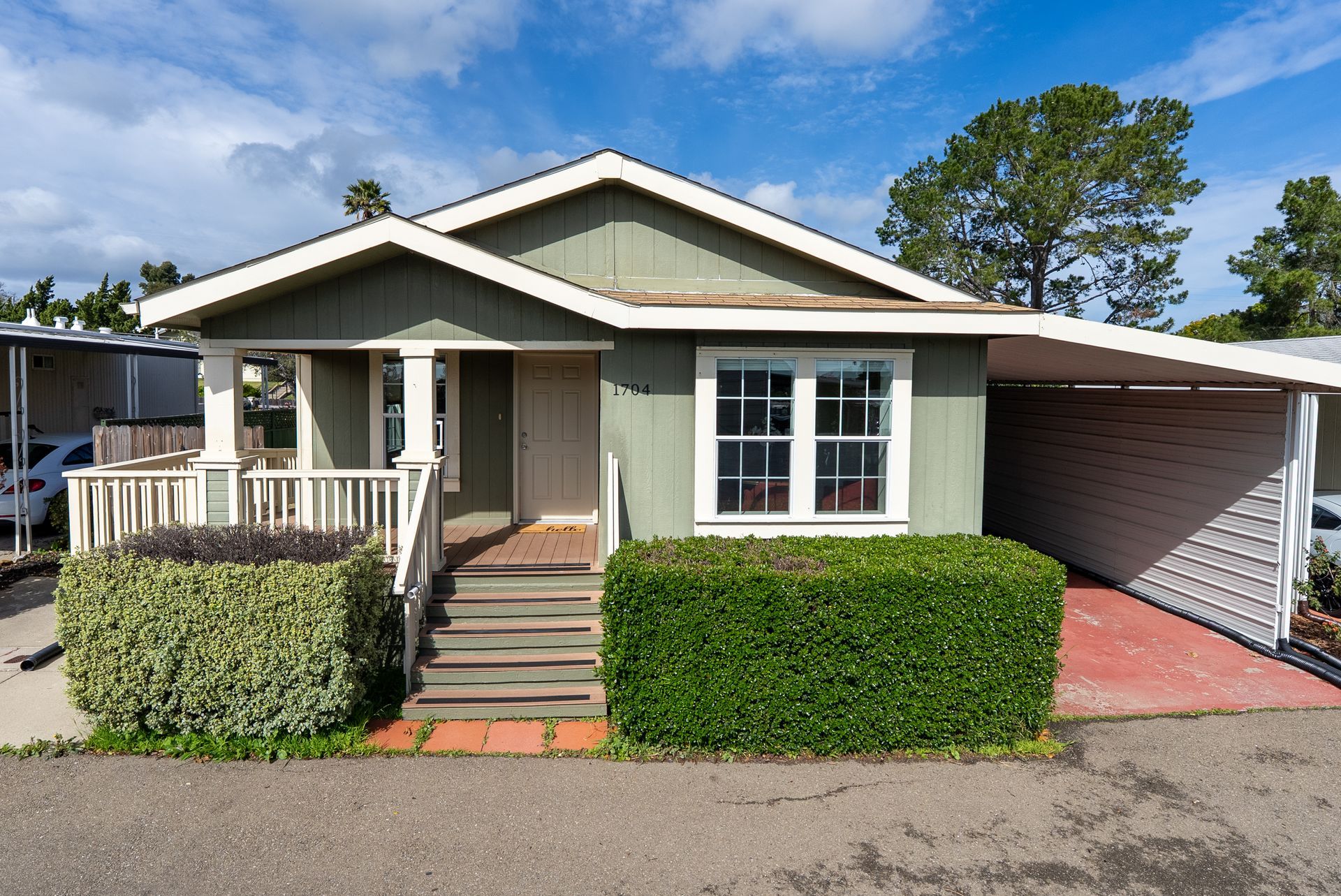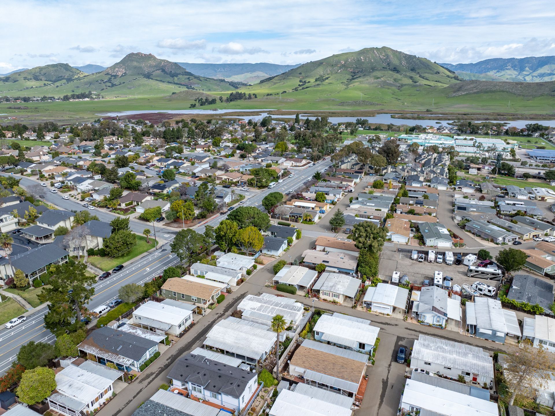 Wow! This is THE ONE for which you’ve been waiting. Situated in the desirable all age Laguna Lake Mobile Estates in the fabulous Perfumo Canyon area & centrally located to the many amenities of SLO, this beautiful & move-in ready manufactured home is comfortable & tranquil, drenched in views of the stunning Irish Hills. Recent upgrades include fresh interior paint throughout & new carpet in the secondary bedrooms. The ambiance of this special residence is enhanced by high ceilings, sparkling luxury vinyl flooring & a neutral palette. The front living areas seamlessly flow to the charming covered front porch, embracing the quintessential California indoor-outdoor lifestyle. The kitchen is equipped w/ a stainless steel appliance suite, gas burning stove, plentiful cabinetry, & easily opens into the spacious dining nook. The open concept floorplan’s front living areas are functional & framed by a myriad of windows creating a light & bright canvas. A private primary suite offers a generous walk-in closet, shower, vanity & linen closet. Two other bedrooms & a full sized hall bathroom round out the private spaces, allowing for guest & home office space. Interior appointments include ceiling fans, custom window shades & a dedicated laundry room with a back door leading to the carport & storage shed further enhancing the versatility of this elegant residence. Outside, you’ll find a yard which wraps around the home, perfect for gardening or relaxing. This home includes access to the incredible amenities of Laguna Lake Mobile Home Estates which include RV parking, a clubhouse with a full catering kitchen, meeting room, banquet facilities, sitting area graced by a majestic fireplace; an annex clubhouse (yep, that essentially makes 2 clubhouses!) with another full kitchen and meeting room, library and craft room; a seriously large swimming pool for exercise as well as lounging; sparkling spa, lots of monthly activities including potlucks & games, all of which provide excellent spaces to enjoy & connect with your wonderful neighbors. This truly is a terrific community with neighbors who care about each other. Move-in ready, this clean and well-kept home combines convenience, comfort, & community living in a prime location. Close proximity to downtown SLO, local shopping centers & our fabulous coastal towns and beaches, too. With modern features, an open & airy interior & vibrant community setting, 1704 Garnette Drive fully embraces the charm of Central Coast living.