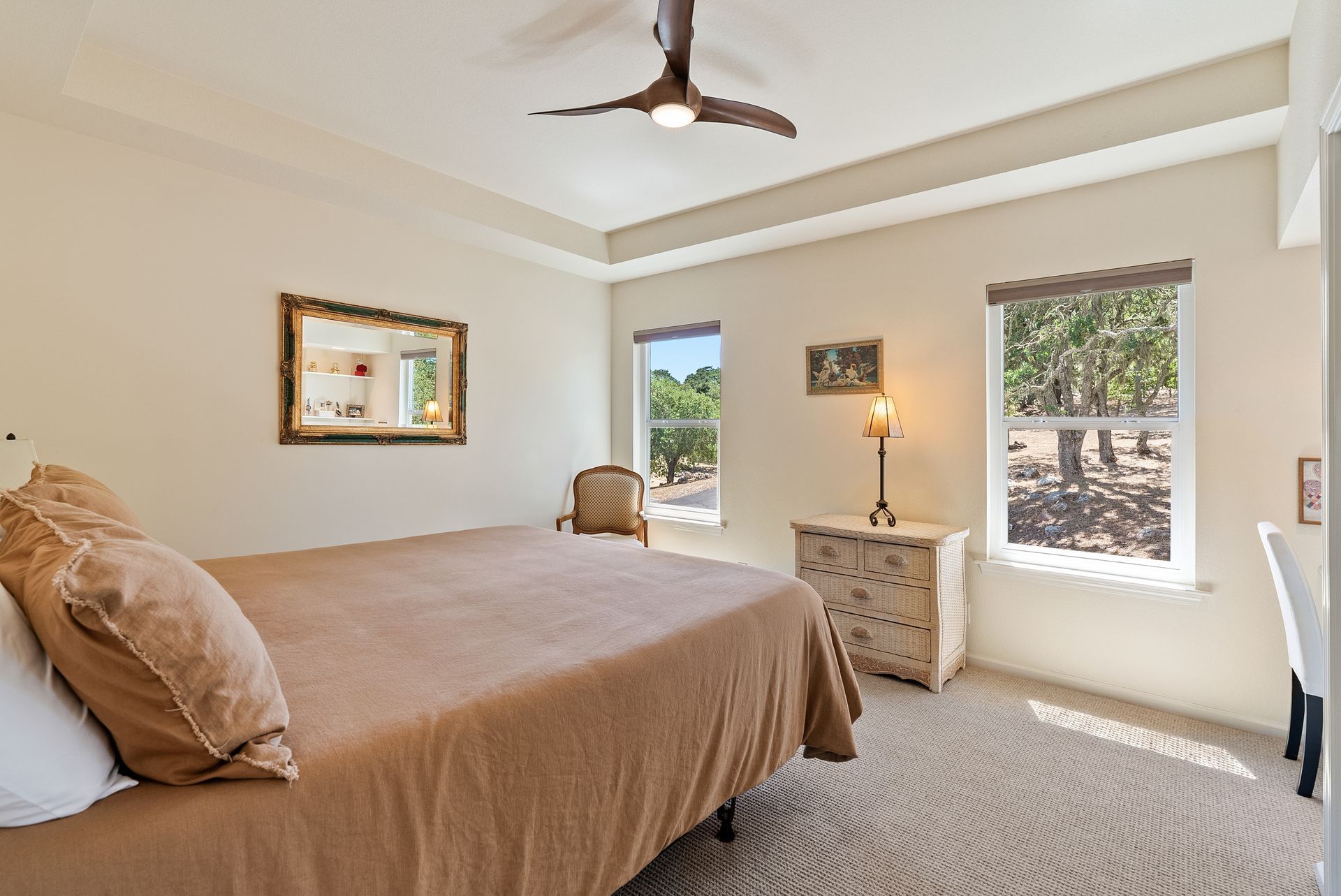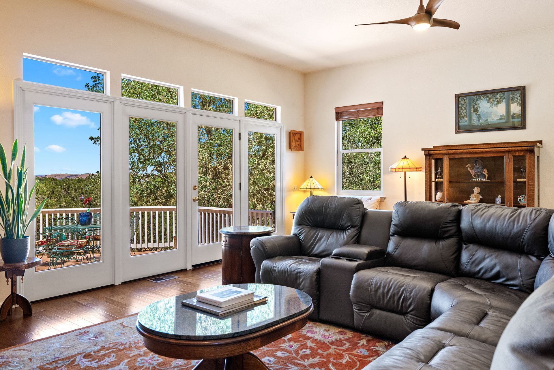 Welcome to your forever home—a refined retreat that blends elevated design, natural beauty, and effortless comfort in the heart of Atascadero’s majestic western hills. Enjoy the VIEWS & cooling coastal breezes on warm summer days while taking in the serenity of your own full fenced parcel of approximately 5 oak-studded enchanting acres, privately situated behind gates and lovingly curated with mature oaks, native flora, and seasonal blooms. This custom-built estate-style residence spans approximately 3,778 square feet and showcases exceptional craftsmanship and timeless elegance. From the moment you step inside, the home’s thoughtful design and graceful details are on full display. The versatile floorplan features three bedrooms and two and a half bathrooms, including a restful primary suite with a spa-inspired en suite bath, a dedicated laundry room, and a spacious flexible multipurpose space ideal for fitness, yoga, hobbies, guests, and a home office. The chef’s kitchen flows seamlessly into the generous living and dining areas and into the stunning outdoors, creating the perfect indoor/outdoor California lifestyle. The modern, quartz-trimmed kitchen is designed for cooking and entertaining, equipped with premium appliances including a Sub-Zero refrigerator, a spacious island with breakfast bar, custom cabinetry, a walk-in pantry, and a built-in desk. The living room is both inviting and refined, with a charming brick fireplace and French doors opening to the back deck. Designed for relaxation and entertaining, the deck and covered front porch offer idyllic spaces for al fresco dining and peaceful lounging. The attached finished 3-car garage boasts a separate office/workshop and an extra storage room—providing ample space for hobbies, parking, and recreational pursuits. Luxurious finishes include hardwood floors, high-end wool carpeting, and TracStep garage floors. Meticulously maintained & light-filled with sweeping views from every room. While the setting offers complete tranquility, it’s just minutes from downtown Atascadero’s restaurants, brew pubs, boutiques, historically recognized City Hall, Sunken Gardens, and vibrant events. You’re also near the beloved Atascadero Lake Park—featuring paddle boat rentals, Charles Paddock Zoo, Concerts in the Park, the annual Wine Festival, the holiday stroll around the lake & many other annual events. This extraordinary residence is a rare blend of privacy, elegance, & convenience—truly a place to call home.