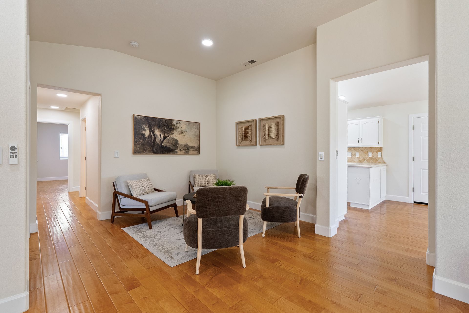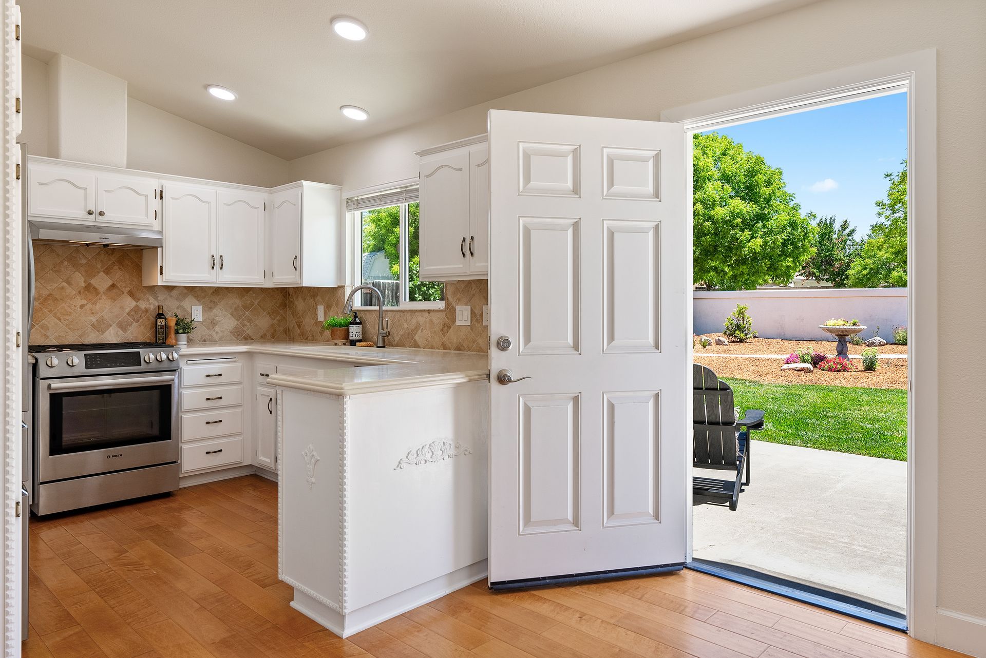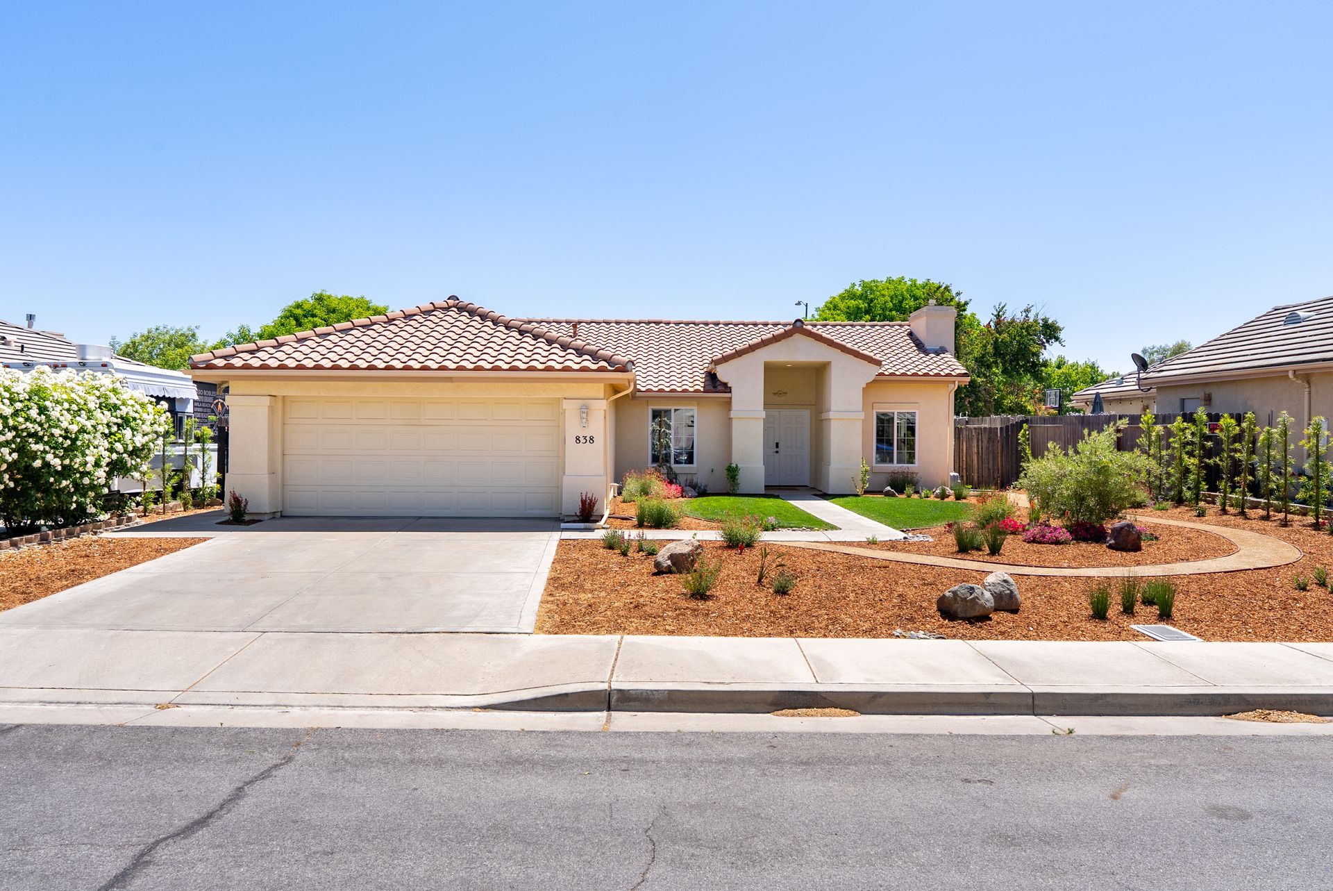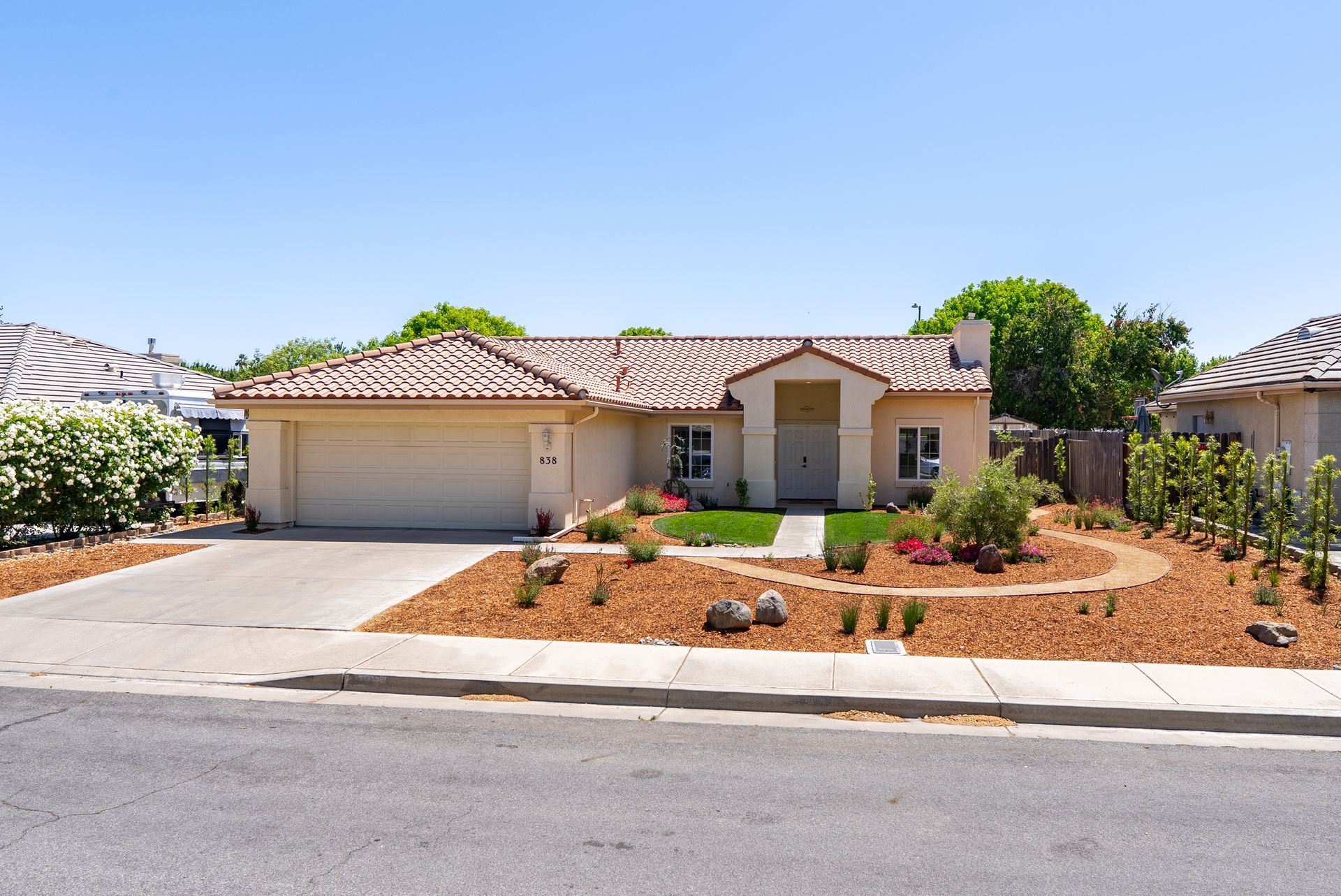 This is THE ONE you’ve been waiting for… an elegant & MOVE-IN READY single level residence with a Mediterranean flair in the desirable MeadowLark Farms neighborhood. From the moment you arrive, you will be captivated w/ the recently updated landscaping offering a perfect California-scape that combines beauty, drought friendly plants & low maintenance ease. This special residence has an easy flow w/ high ceilings in the living spaces & wide hallways, providing a sense of luxurious living, tied together w/ hardwood flooring & a modern recently painted interior. The contemporary kitchen is appointed w/ a stainless steel Bosch 5 burner gas range; stainless steel French-door Frigidaire refrigerator, stone countertops, travertine tile backsplash & a window over the double sink, allowing you to enjoy the lovely backyard. The seamless transition through the kitchen, dining area & backyard provide a great entertaining canvas. The living room is graced by a gas burning fireplace & lots of windows; a charming sitting area & separate enclosed room w/ double doors complete the public spaces & offer flex space for a myriad of options such as home office, bedroom & so much more. The hall bathroom is tastefully updated w/ tile floors & high end Kohler fixtures. The spacious primary suite is a true spa-like retreat w/ a high ceiling & a glass sliding door leading to the bucolic outdoors. The primary bath includes an extra large walk-in closet, updated dual Kohler sinks, granite trimmed vanity & glass enclosed tile shower. The dedicated laundry room hosts a newer GE large capacity washer/dryer set. The deep 2 car garage w/ workbench completes the home. Additional features include water softener, ceiling fans, newer 2 inch blinds, recently updated recessed lighting & lighting fixtures, updated light & electric plates, Nest thermostat, extra tall baseboards & door framing. The fully fenced & stunning backyard is highlighted by an incredible garden of fruit trees (apple,peach) blueberries, raspberries, blackberries, potatoes, broccoli, tomatoes, beets, & string beans. Don’t miss this extraordinary offering as it will not last long due to its special touches & tranquil sensibility. Centrally located to the wonderful amenities of Paso Robles Wine Country including world class wineries, the historical downtown square - with cafes and boutiques & only a half an hour away from the majestic Pacific ocean & nearby beach towns. Welcome Home to your Forever Home. Open House 6/28.