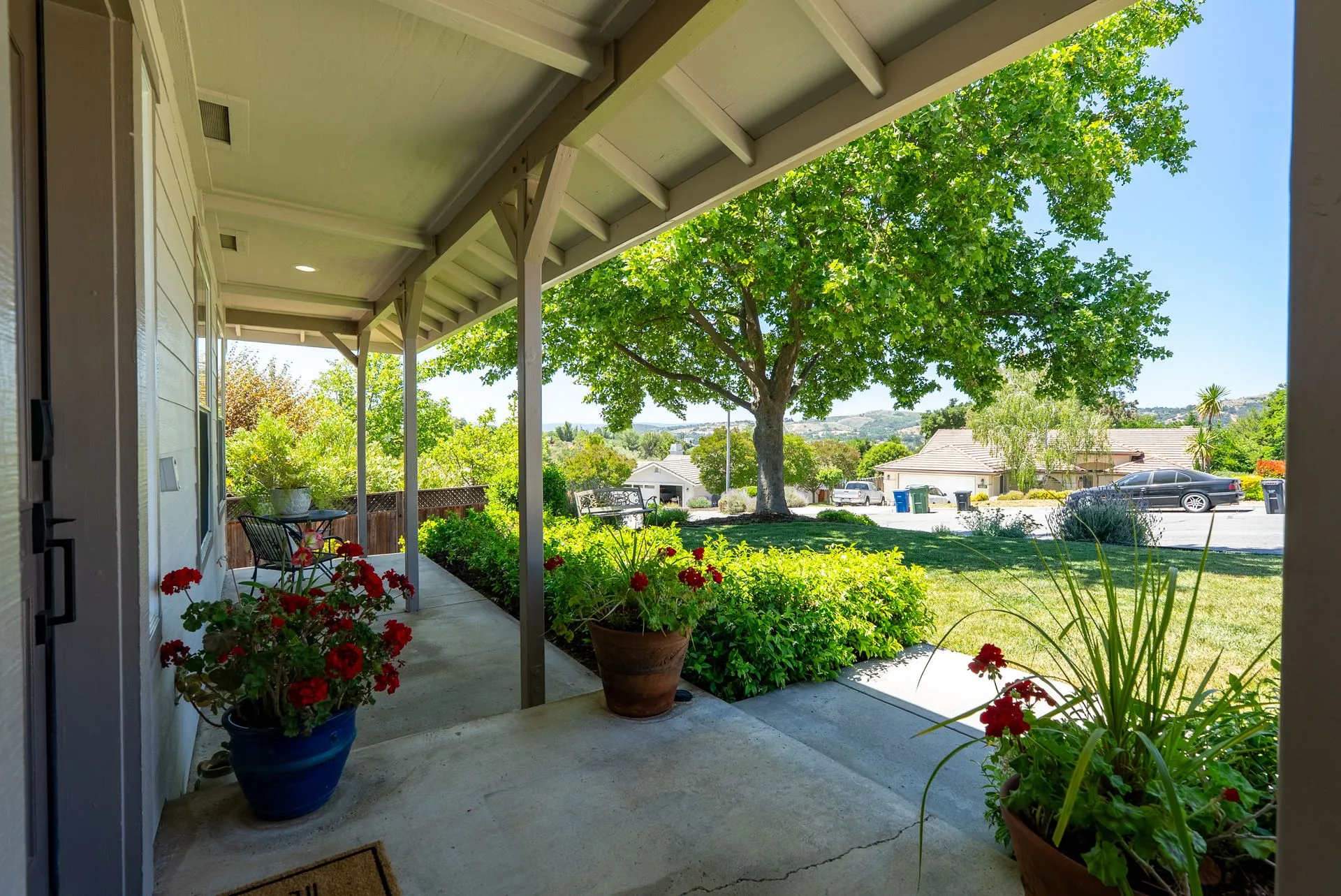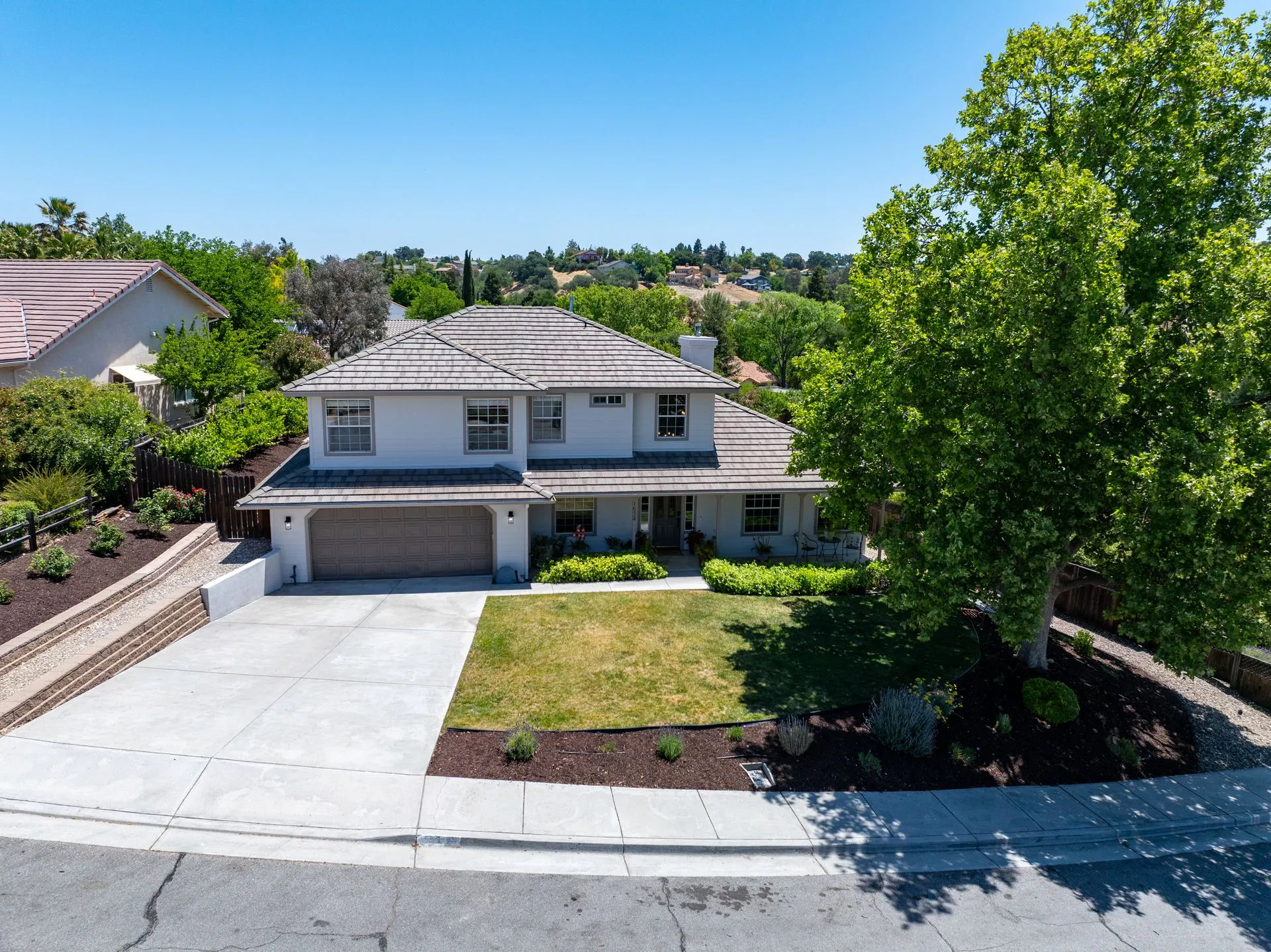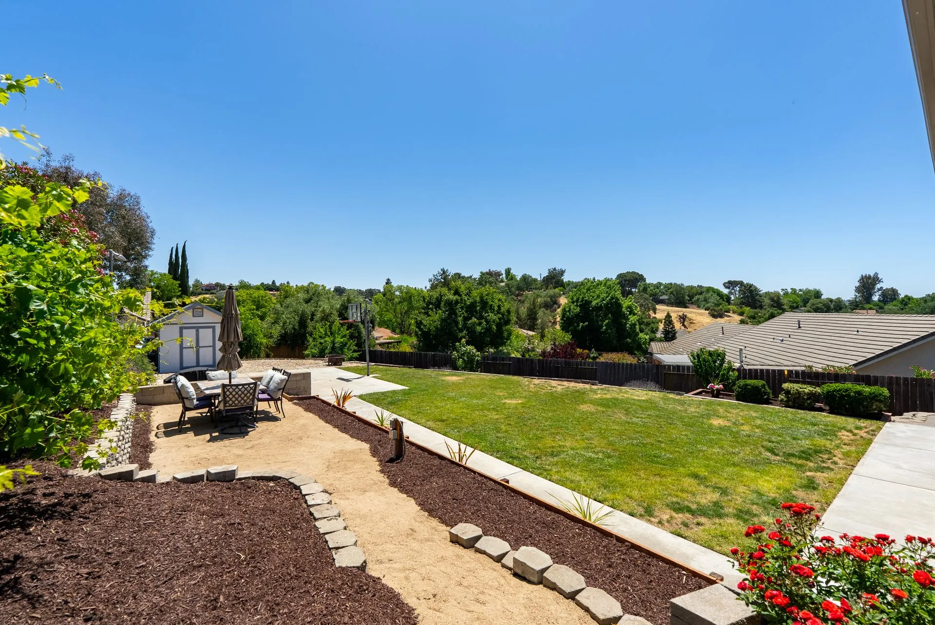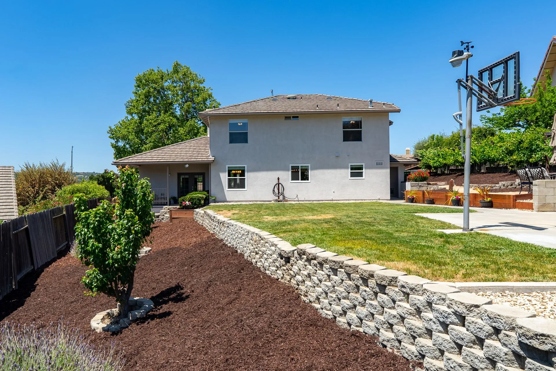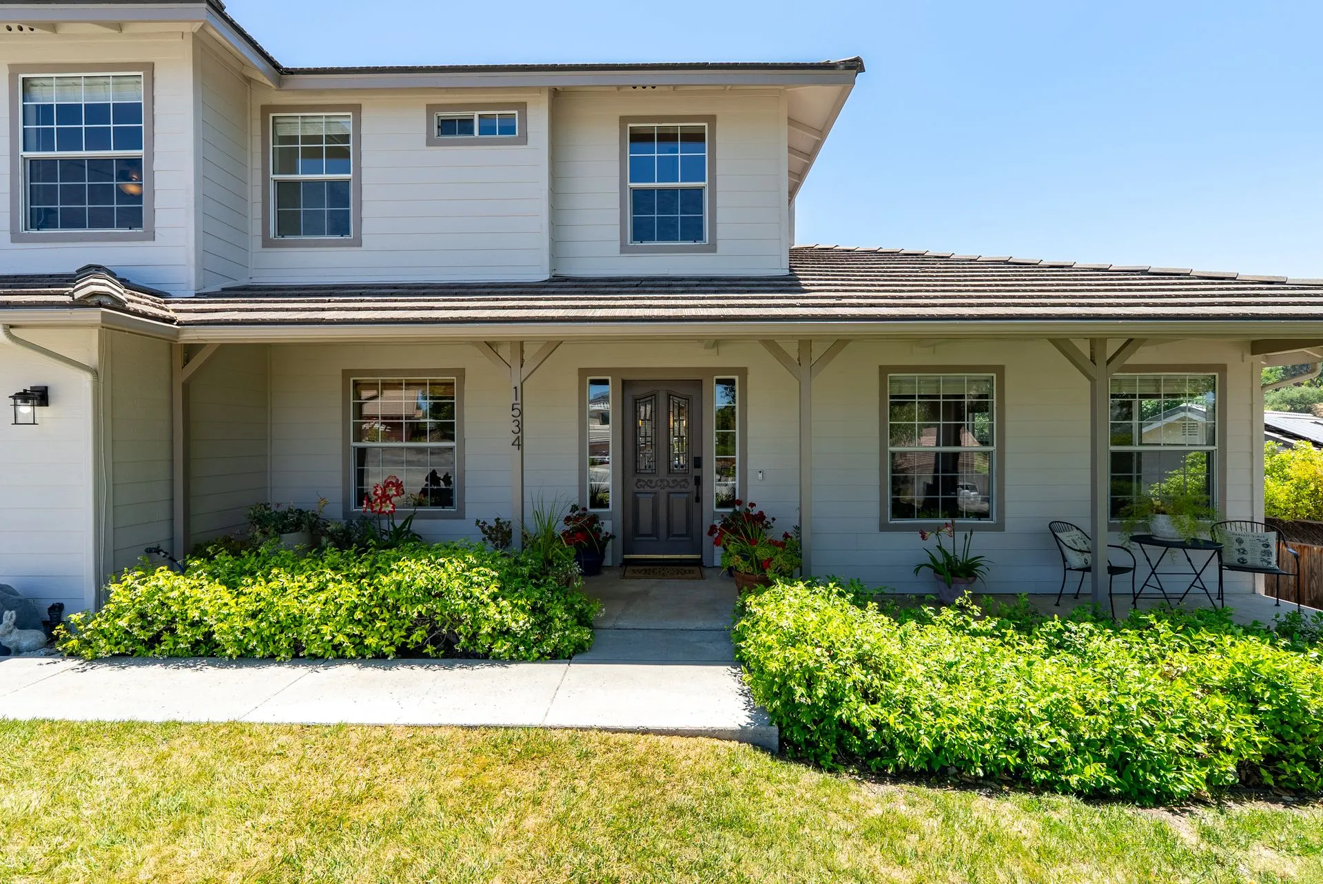 This truly is THE ONE for which you’ve been waiting! Move-in ready & nestled in one of Paso Robles’ most desirable neighborhoods, this beautiful residence offers an indoor/outdoor flow, comfort & stunning views of the rolling coastal hills from every room. A welcoming covered front porch sets the tone, inviting you into the formal entryway & a spacious, light-filled living room which easily flows out to the appreciably sized backyard (almost 1/3 of an acre). The covered rear patio creates an ideal space for relaxing while enjoying the serene surroundings. The heart of the home is the stunning chef’s kitchen, thoughtfully remodeled with luxurious finishes. Highlights include custom granite countertops sourced from Brazil, designer subway tile backsplash, a walk-in pantry, stainless steel appliances including a 5-burner gas range, French-door refrigerator, built-in microwave, dishwasher & farm-style sink. A large center island w/ breakfast bar offers ample space for entertaining, including a built-in wine fridge. Adjacent to the kitchen is a generously sized granite trimmed laundry room w/ a sink & powder room. Just off the entryway, a spacious study features custom built-ins; this space can easily serve as a home office & guest space. Upstairs are 3 spacious bedrooms, including a serene primary suite w/ treetop views, a light & bright ensuite bathroom with dual sinks. The additional bedrooms are well-sized & the updated hall bathroom features a modern vanity. Additional features include luxury vinyl flooring, Simplisafe camera/doorbell, custom hardware, USB outlets, adding style & function. The backyard is a true standout, featuring 10 grapevines of several varietals, along w/ cherry, plum & pear trees that produce delicious fruit – perfect for sharing, making jam, enjoying Paso’s summer harvest. Outdoor living is enhanced w/ multiple entertaining spaces including covered front & back porches, an elevated patio w/ expansive views, where you can actually watch launches from Vandenberg Space Force Base, a basketball/game court & storage shed. The attached two-car garage includes a new garage door opener & additional built-in storage. This light-filled home blends tasteful updates, thoughtful design & natural beauty – making it a rare and exceptional opportunity. Rounding out this offering is the close proximity to the iconic downtown Paso Robles w/ its myriad of wine bars, restaurants, boutiques, cafes, & renowned annual events. Welcome home!