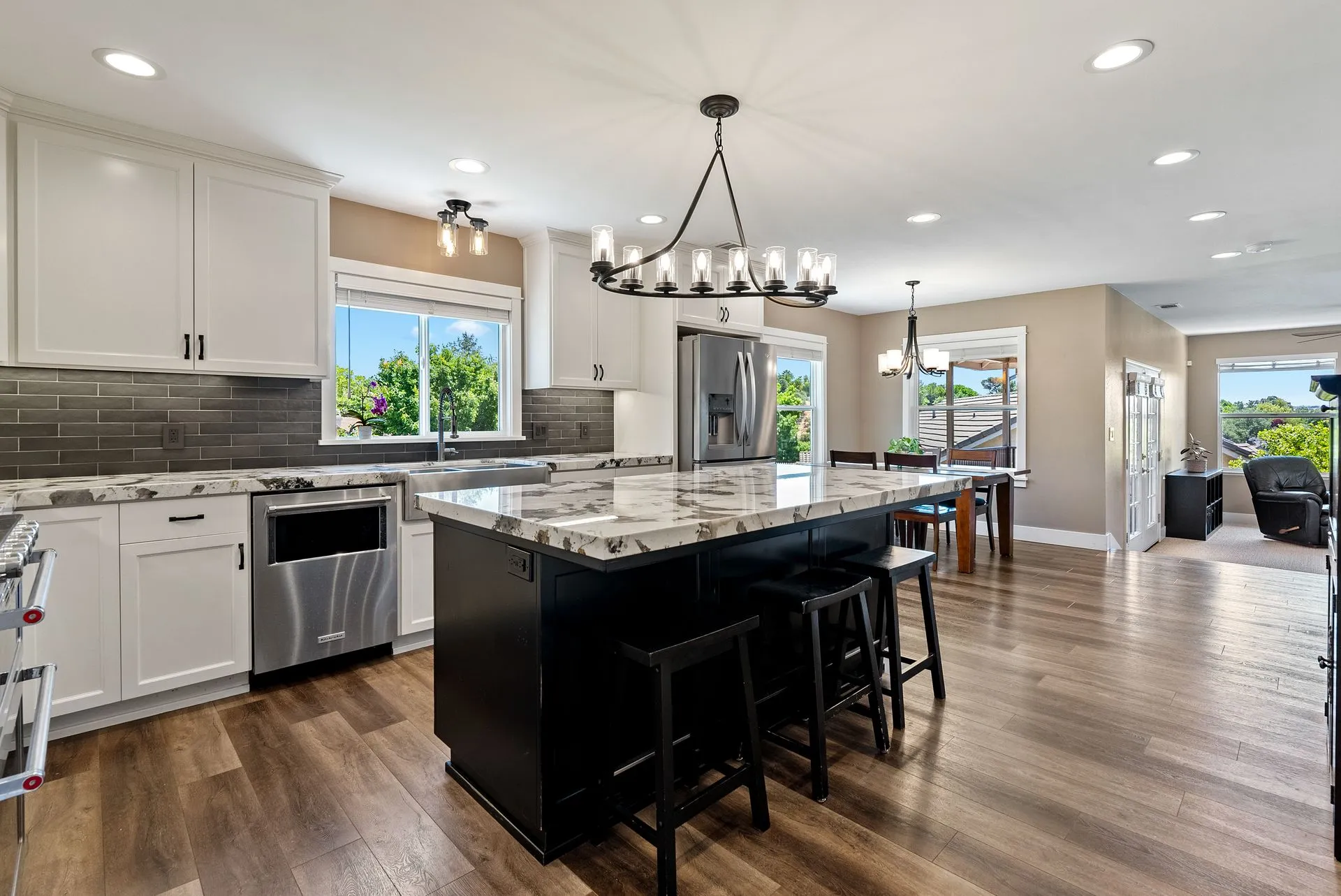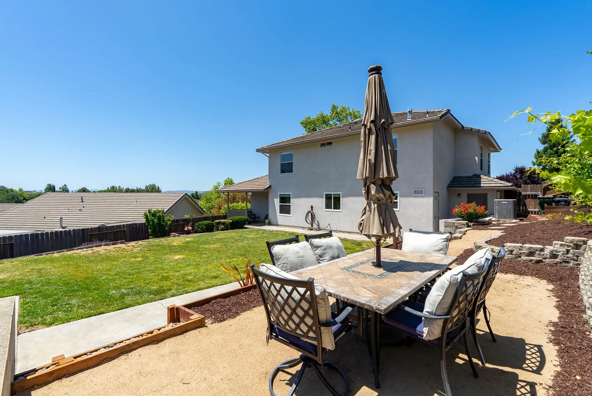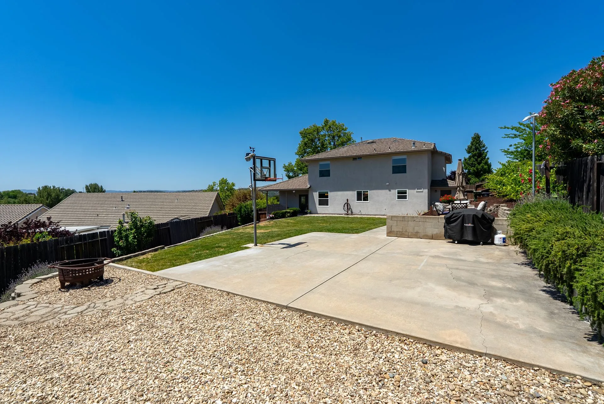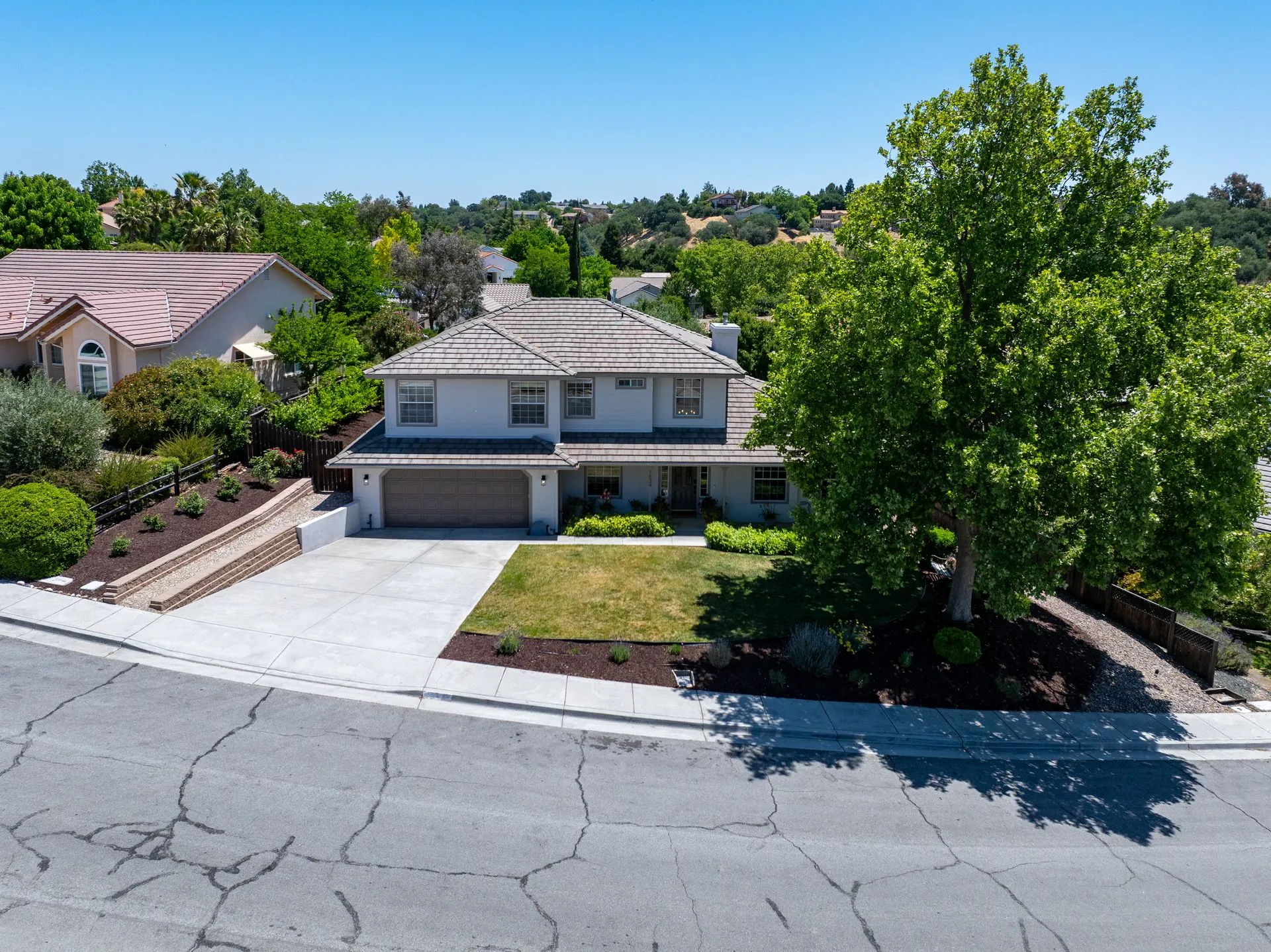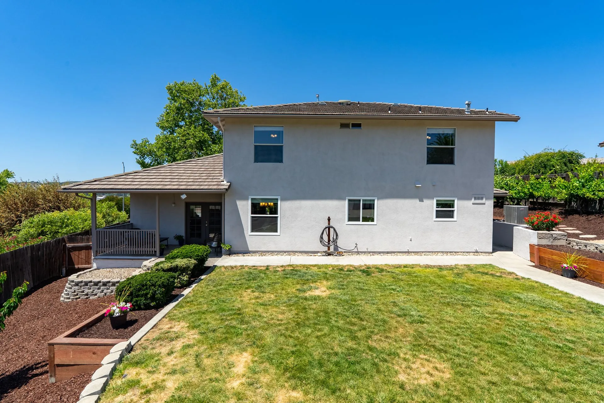 This truly is THE ONE for which you’ve been waiting! Move-in ready & nestled in one of Paso Robles’ most desirable neighborhoods, this beautiful residence offers an indoor/outdoor flow, comfort & stunning views of the rolling coastal hills from every room. A welcoming covered front porch sets the tone, inviting you into the formal entryway & a spacious, light-filled living room which easily flows out to the appreciably sized backyard (almost 1/3 of an acre). The covered rear patio creates an ideal space for relaxing while enjoying the serene surroundings. The heart of the home is the stunning chef’s kitchen, thoughtfully remodeled with luxurious finishes. Highlights include custom granite countertops sourced from Brazil, designer subway tile backsplash, a walk-in pantry, stainless steel appliances including a 5-burner gas range, French-door refrigerator, built-in microwave, dishwasher & farm-style sink. A large center island w/ breakfast bar offers ample space for entertaining, including a built-in wine fridge. Adjacent to the kitchen is a generously sized granite trimmed laundry room w/ a sink & powder room. Just off the entryway, a spacious study features custom built-ins; this space can easily serve as a home office & guest space. Upstairs are 3 spacious bedrooms, including a serene primary suite w/ treetop views, a light & bright ensuite bathroom with dual sinks. The additional bedrooms are well-sized & the updated hall bathroom features a modern vanity. Additional features include luxury vinyl flooring, Simplisafe camera/doorbell, custom hardware, USB outlets, adding style & function. The backyard is a true standout, featuring 10 grapevines of several varietals, along w/ cherry, plum & pear trees that produce delicious fruit – perfect for sharing, making jam, enjoying Paso’s summer harvest. Outdoor living is enhanced w/ multiple entertaining spaces including covered front & back porches, an elevated patio w/ expansive views, where you can actually watch launches from Vandenberg Space Force Base, a basketball/game court & storage shed. The attached two-car garage includes a new garage door opener & additional built-in storage. This light-filled home blends tasteful updates, thoughtful design & natural beauty – making it a rare and exceptional opportunity. Rounding out this offering is the close proximity to the iconic downtown Paso Robles w/ its myriad of wine bars, restaurants, boutiques, cafes, & renowned annual events. Welcome home!