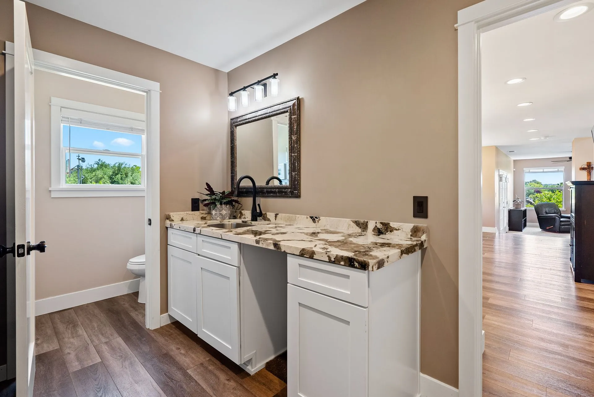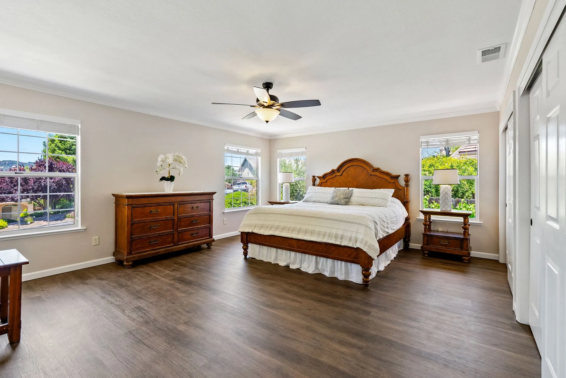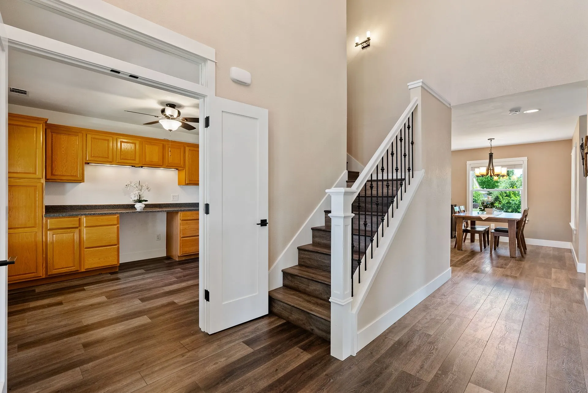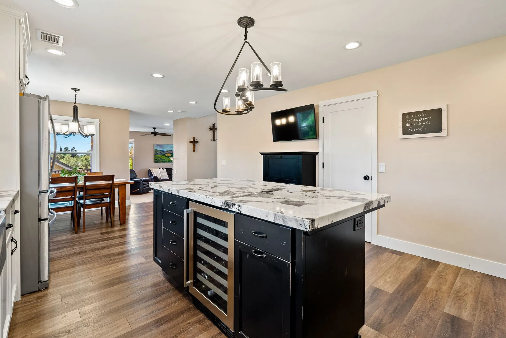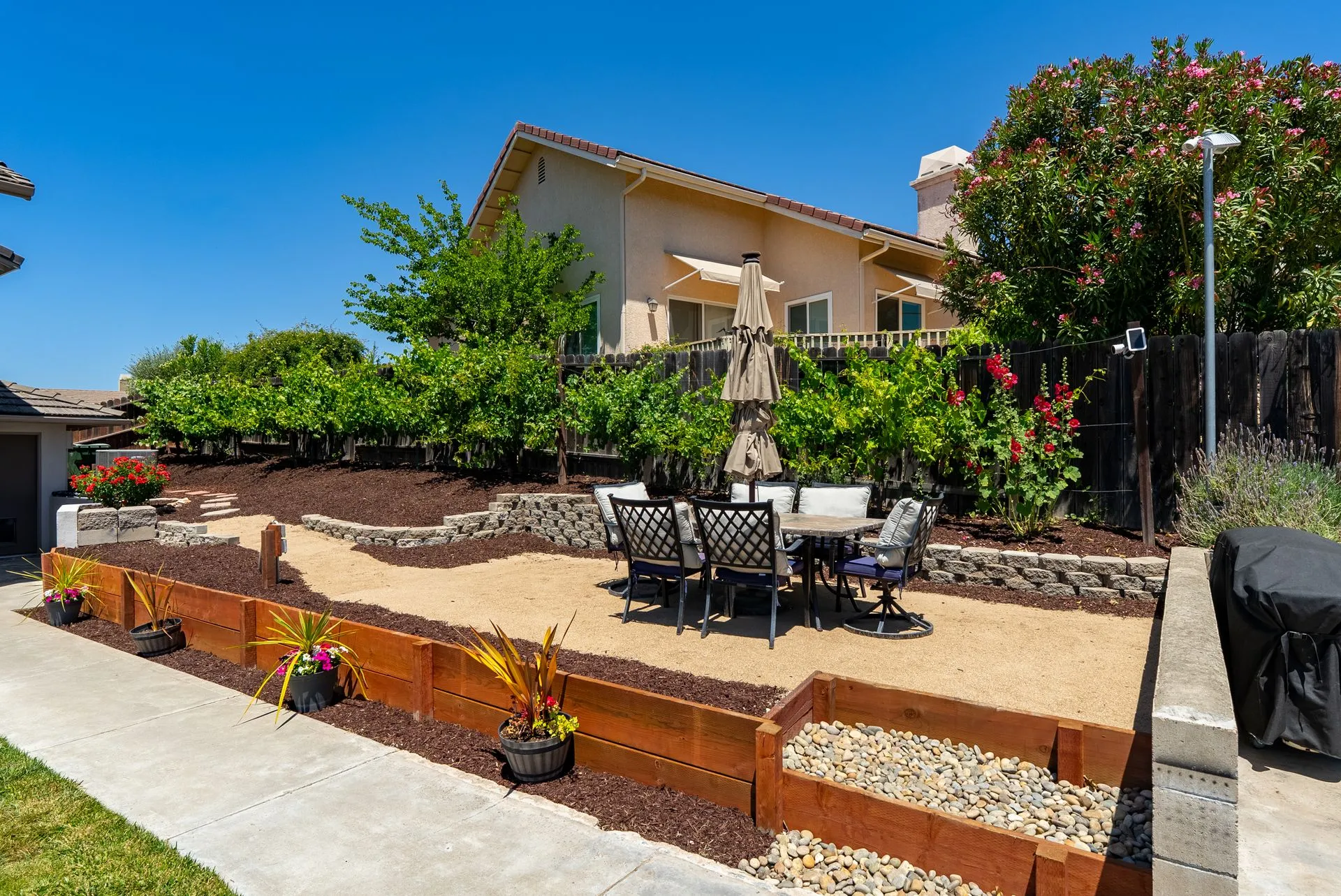 This truly is THE ONE for which you’ve been waiting! Move-in ready & nestled in one of Paso Robles’ most desirable neighborhoods, this beautiful residence offers an indoor/outdoor flow, comfort & stunning views of the rolling coastal hills from every room. A welcoming covered front porch sets the tone, inviting you into the formal entryway & a spacious, light-filled living room which easily flows out to the appreciably sized backyard (almost 1/3 of an acre). The covered rear patio creates an ideal space for relaxing while enjoying the serene surroundings. The heart of the home is the stunning chef’s kitchen, thoughtfully remodeled with luxurious finishes. Highlights include custom granite countertops sourced from Brazil, designer subway tile backsplash, a walk-in pantry, stainless steel appliances including a 5-burner gas range, French-door refrigerator, built-in microwave, dishwasher & farm-style sink. A large center island w/ breakfast bar offers ample space for entertaining, including a built-in wine fridge. Adjacent to the kitchen is a generously sized granite trimmed laundry room w/ a sink & powder room. Just off the entryway, a spacious study features custom built-ins; this space can easily serve as a home office & guest space. Upstairs are 3 spacious bedrooms, including a serene primary suite w/ treetop views, a light & bright ensuite bathroom with dual sinks. The additional bedrooms are well-sized & the updated hall bathroom features a modern vanity. Additional features include luxury vinyl flooring, Simplisafe camera/doorbell, custom hardware, USB outlets, adding style & function. The backyard is a true standout, featuring 10 grapevines of several varietals, along w/ cherry, plum & pear trees that produce delicious fruit – perfect for sharing, making jam, enjoying Paso’s summer harvest. Outdoor living is enhanced w/ multiple entertaining spaces including covered front & back porches, an elevated patio w/ expansive views, where you can actually watch launches from Vandenberg Space Force Base, a basketball/game court & storage shed. The attached two-car garage includes a new garage door opener & additional built-in storage. This light-filled home blends tasteful updates, thoughtful design & natural beauty – making it a rare and exceptional opportunity. Rounding out this offering is the close proximity to the iconic downtown Paso Robles w/ its myriad of wine bars, restaurants, boutiques, cafes, & renowned annual events. Welcome home!
