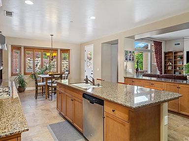 What's better than one waterfall? TWO WATERFALLS! Yes, that's right, enjoy the custom landscaping of this exceptional property which is highlighted by two spectacular rock waterfalls. 1644 Heidi Court is a modern and sophisticated residence situated on a quiet cul-de-sac in the highly sought after and upscale Montebello Oaks Estates neighborhood. This special community is within a short distance to historic downtown Paso Robles, now a world-class wine destination, offering boutique shopping, wine bars, fine dining, cafes, and a myriad of seasonal events. Built in 2012 by the "forward-thinking" home builder, Wathen Castanos, this home was designed to be energy efficient and timeless. The bright & open floorplan offers a comfortable and gracious ambience to compliment the wine country lifestyle. The home is centered around the spacious great room with a gas-burning fireplace and custom media shelving, gliding easily to the granite-finished chef's kitchen with stainless steel appliances, coffee bar, separate pantry, breakfast bar, and separate eating area; additional living area provides flexibility for a formal dining room, den or home office. The high ceilings lend a sense of fluid space... all of which flows easily into the front porch and the resort-inspired backyard with a multitude of spaces in which to dine, relax, entertain, watch outdoor movies, and enjoy the passage of time. The primary bedroom suite is completed by a spa-inspired bathroom featuring a soaking tub, glass enclosed shower, dual sinks, and a deep walk-in closet. Two additional bedrooms and bathrooms with designer finishes round out the private living spaces. Further amenities include: gleaming hardwood floors, an extra-large laundry room with loads of cabinet storage and deep sink; attached 3 car garage: with steel roll-up doors, 2 garage door openers, and extra storage; utility shed; RV/boat parking; tankless water heater; and water softener. Truly, this property exudes a special sense of style, place, and home. So, welcome home!