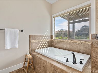 Welcome to your dream Paso Robles Wine Country home. This elegant residence is located in the coveted Montebello Oaks Estates development, and it is move-in ready, offering the perfect combination of comfort, style and convenience. Upon entering, you are greeted by a formal entryway that leads into the sundrenched great room, which is graced by a corner fireplace and highlighted with glass sliding doors leading to the spacious and modern rear deck, trimmed with a retractable shade cover, providing an ideal spot to entertain guests while enjoying the peaceful setting. The open concept floorplan seamlessly connects the living room, kitchen, dining area, and outdoor deck, providing the highly sought- after indoor/outdoor California lifestyle. The gourmet chef’s kitchen features granite stone countertops, breakfast bar, a 5-burner gas range, stainless steel appliances, pendant and recessed lighting, and abundant cabinet space for all of your culinary needs. The adjacent dining area overlooks the verdant backyard and also offers a lovely space for both casual and formal dining. The primary suite is a true retreat, perfect for relaxation, and exudes spa-like luxury and tranquility, including a walk-in closet with built-in storage, a dual sink vanity, a soaking tub, and a separate glass enclosed shower. The three additional bedrooms are spacious and bright, offering ample closet space and new plush wall-to-wall carpeting. Additional amenities include sparkling new laminate floors, a neutral color palette that provides a soothing ambiance, water softener, an attached 2 car garage with room for extra storage, and a low maintenance yard with fruit trees. Conveniently situated within close proximity to downtown Paso Robles’ upscale shopping, dining and entertainment venues, including the region’s myriad of renowned wineries. Don’t miss this opportunity to own a truly special residence in Montebello Oaks Estates.
