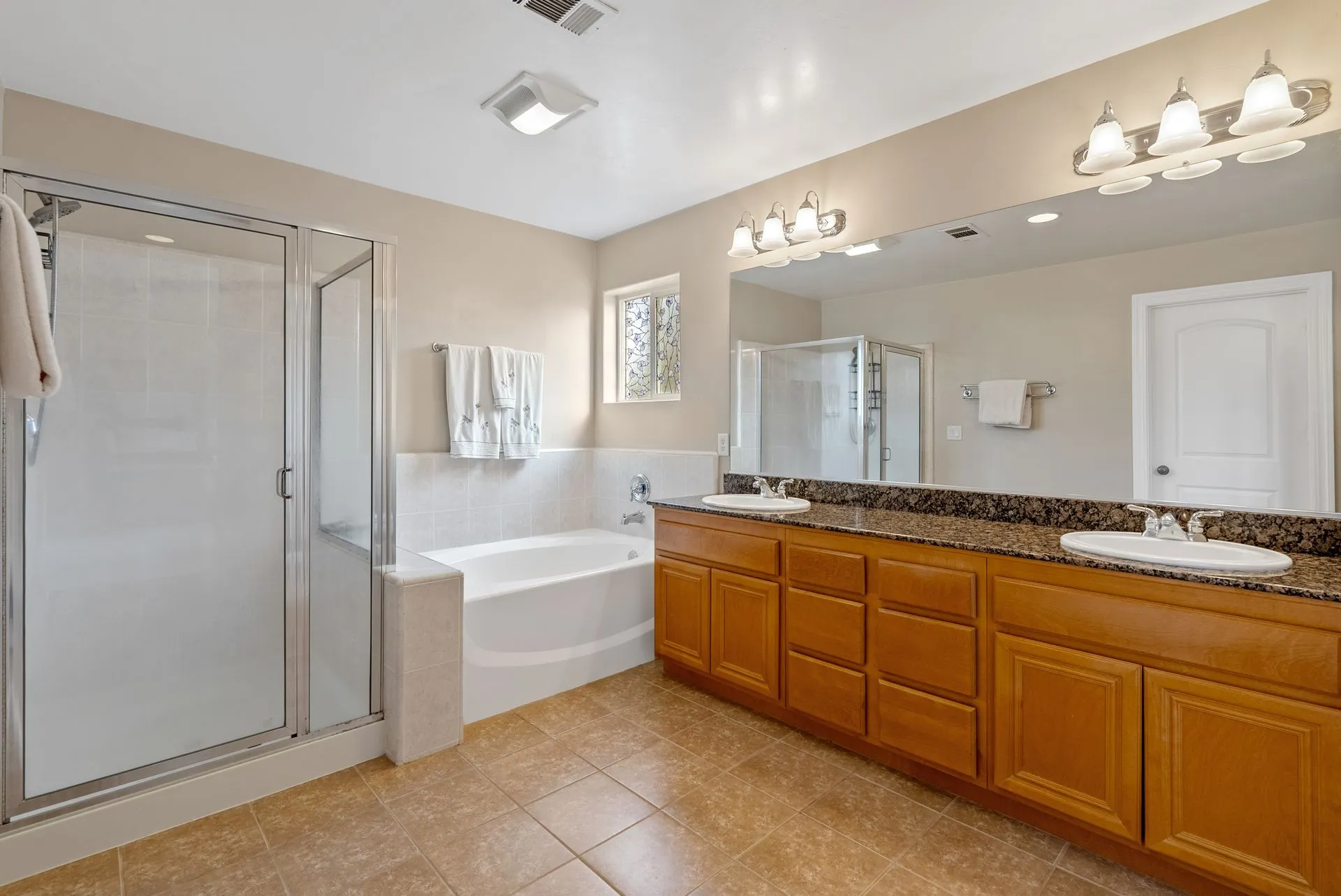 This stunning, first-time-on-the-market home exemplifies pride of ownership. Nestled in a sought-after neighborhood close to downtown, this residence combines elegance, functionality, and an open, welcoming design. Upon entry, you’ll be greeted by a spacious family room with soaring ceilings that bathe the space in natural light, setting the tone for the seamless flow of the home. The open floor plan connects the kitchen and living room, where a cozy fireplace and direct access to the beautifully landscaped backyard create a perfect space for entertaining. The kitchen is the heart of the home, offering a seamless blend of style and practicality. Go outside to the expansive patio area with pavers, a lush lawn, and plenty of usable yard space with room for a pool—a private oasis ready for relaxation or gatherings. This thoughtfully designed home features 4 bedrooms, including a ground-level bedroom perfect for guests or multigenerational living. Upstairs, each of the 3 bedrooms boasts its own ensuite bathroom, ensuring privacy and convenience. The luxurious primary suite is a retreat of its own, featuring a soaking tub and spacious closet. Additional highlights include a pristine 3-car garage, meticulous landscaping, and a move-in-ready condition that showcases the care and attention of its, to date, only owner. Don’t miss this rare opportunity to own a home on one of the most coveted streets in this highly sought-after neighborhood. Experience refined living, just moments from the charm and conveniences of downtown.