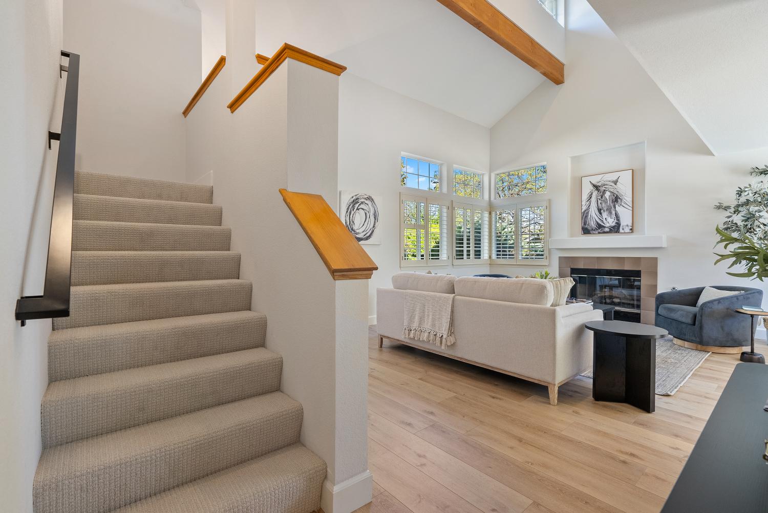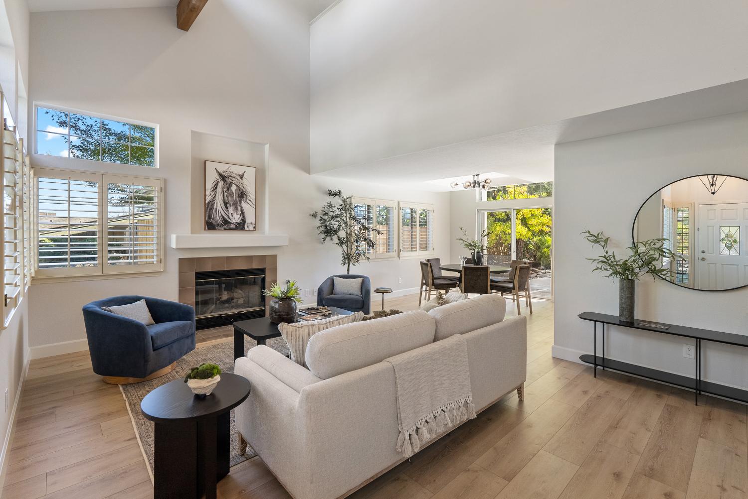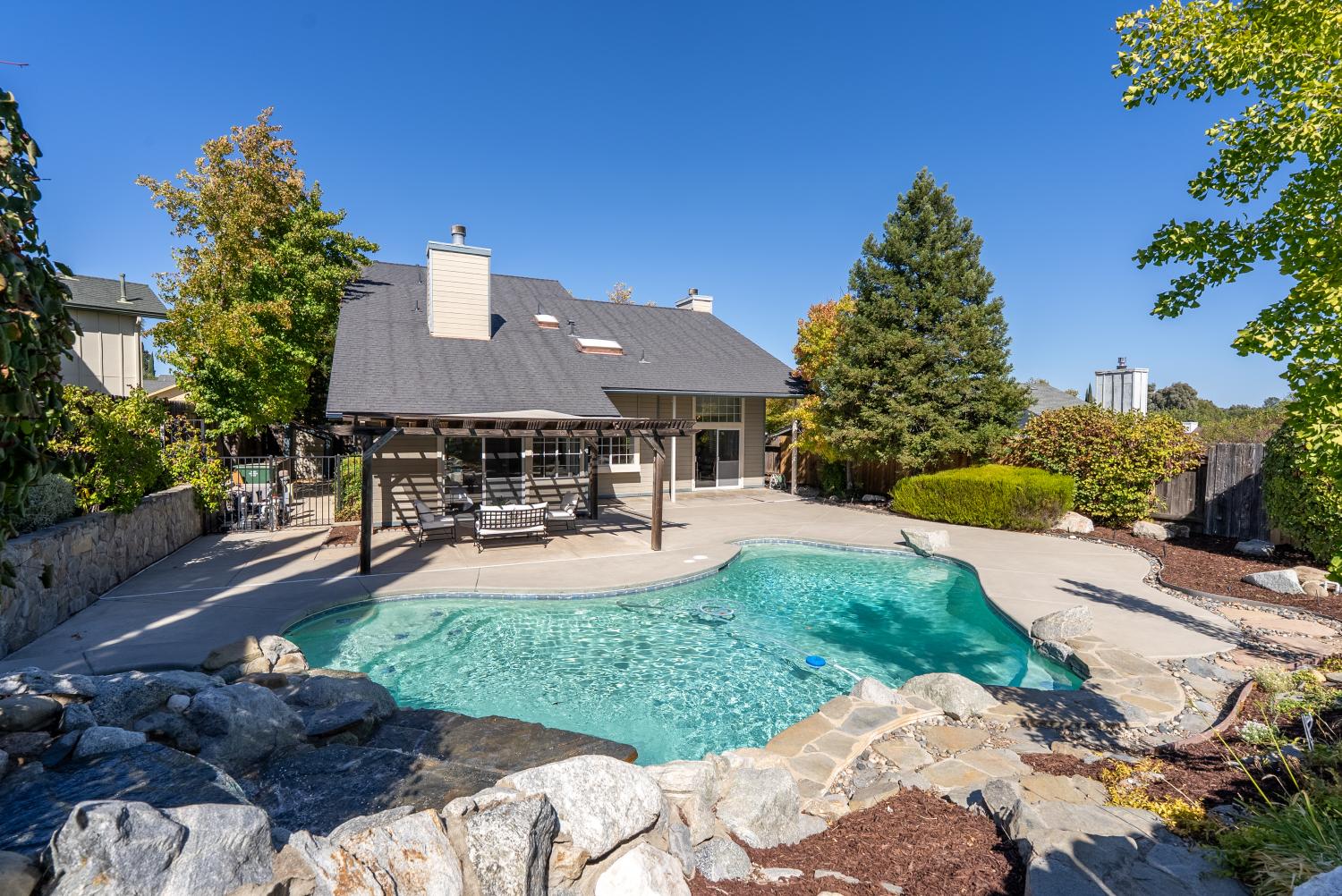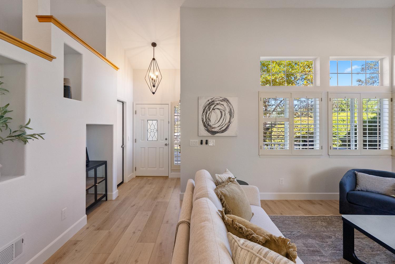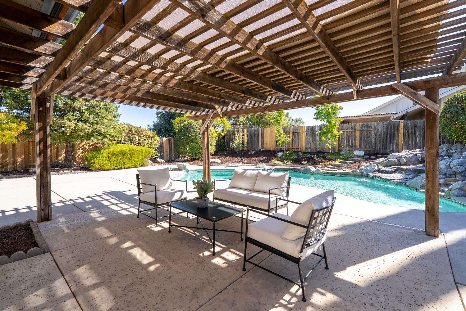 Welcome to this stunning Paso Robles residence that perfectly resonates with today’s modern lifestyle, located just minutes from the iconic historic downtown district. This move-in ready property combines chic sophistication with comfort, showcasing recent upgrades such as luxury vinyl flooring, designer-selected interior paint with a timeless palette, updated baseboards, deluxe carpeting, ceiling fans, water-saving faucets, and stylish light fixtures, adding a serene and tranquil atmosphere throughout the home. Opulent details include plantation shutters, tray ceilings in the kitchen and dining areas, custom built-ins, and recessed lighting. The vaulted ceilings and exposed beams provide an airy ambiance, complimented by the versatile and open floor plan. The flexible layout offers two bedrooms and a full bath on the main level - one of which is attached to the bathroom and as such offers an ensuite layout - and two additional bedrooms plus two full baths upstairs. The upstairs primary suite features a double vanity, walk-in closet, and high ceilings. The spacious great room, centered around a welcoming fireplace, flows easily into the kitchen and backyard—perfect for everyday living, dining and entertaining. The bright, well-appointed kitchen provides generous counter and cabinet space, a breakfast bar, gas range, dishwasher, built-in microwave, refrigerator, and wine storage. Upstairs, a comfortable family room loft, with a second fireplace, sets the scene for movie or game nights. Designed for effortless indoor-outdoor living, the property features a charming front terrace and a private backyard retreat with a sparkling pool, spa, and waterfall. The covered patio creates a relaxing space for outdoor dining and quiet evenings. With its timeless elegance, abundant storage, and attached two-car garage, this residence delivers affordable luxury in one of Paso Robles’ most central neighbors—close to shopping, schools, and the vibrant downtown filled with fine restaurants, boutiques, wine bars, and annual events such as Art in the Park and the New Year's Eve bon fire. Come experience the warmth, comfort, and charm which this Paso Robles gem has to offer—this truly is "the one" which you have been waiting for. Never before on the market and this premier offering is priced well and won’t last long so schedule a showing today.