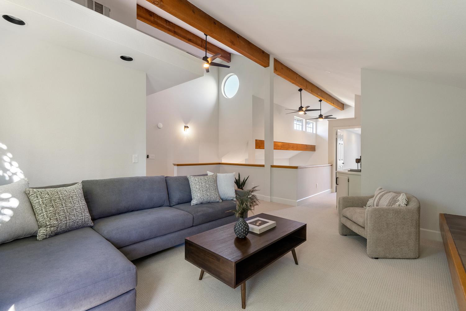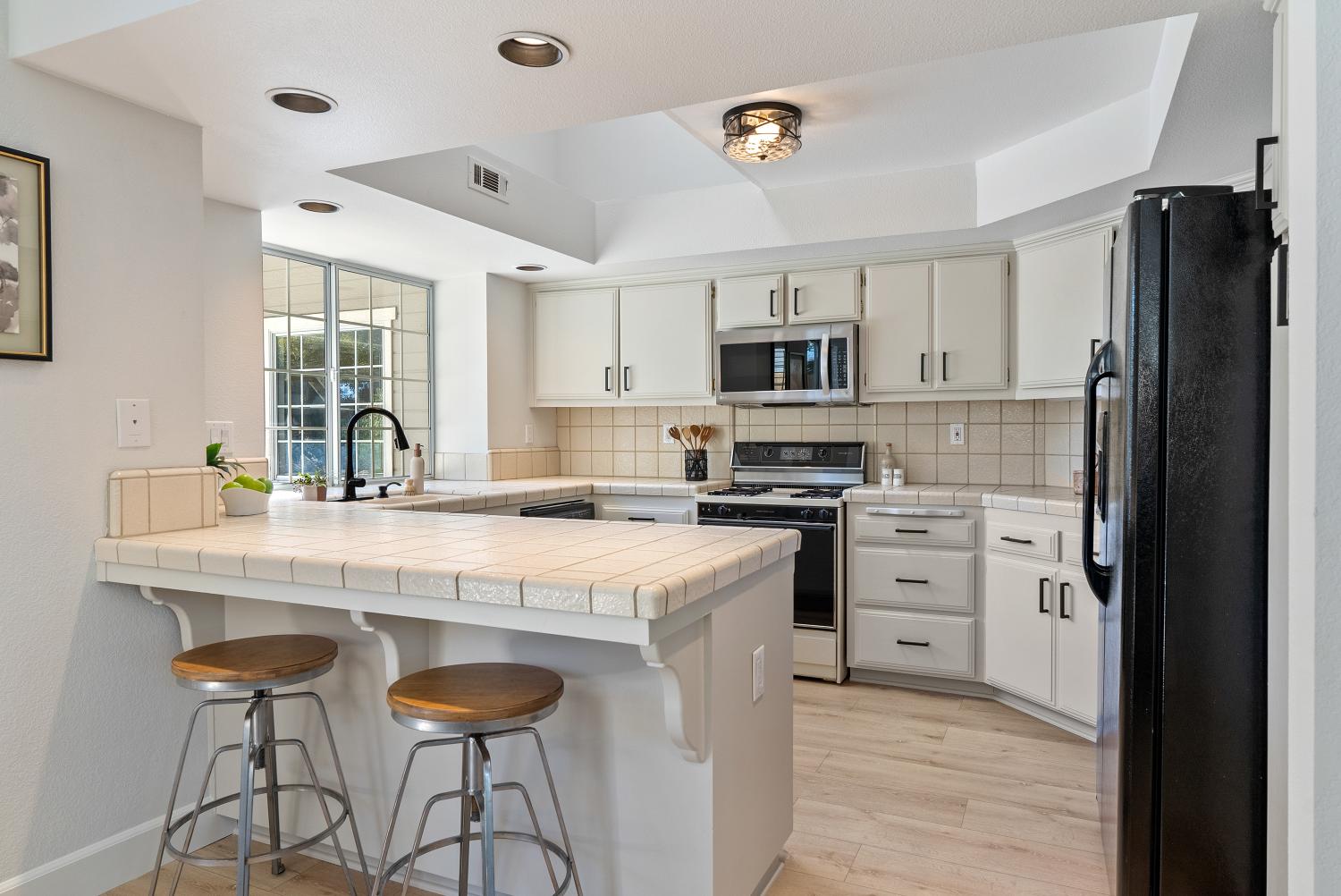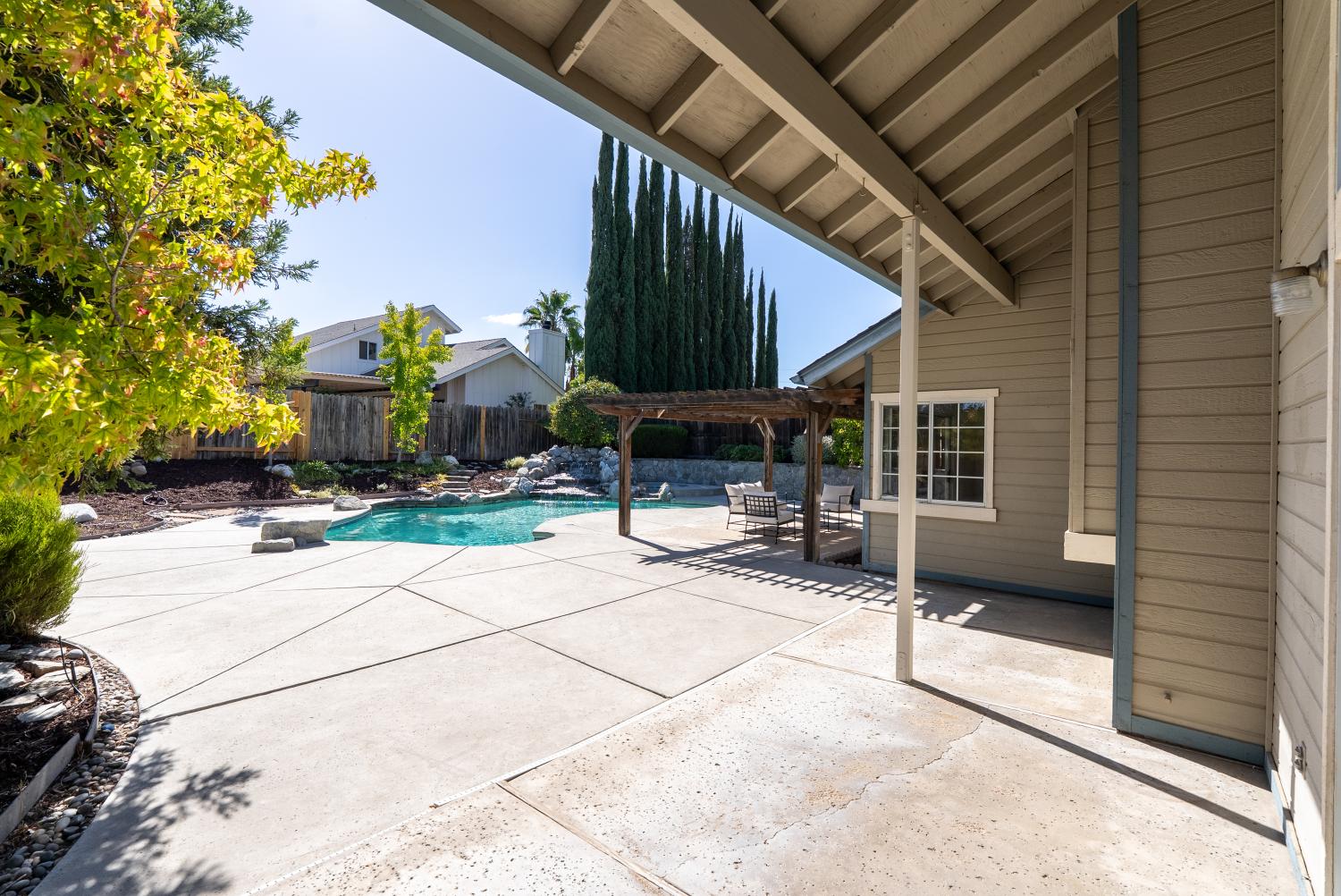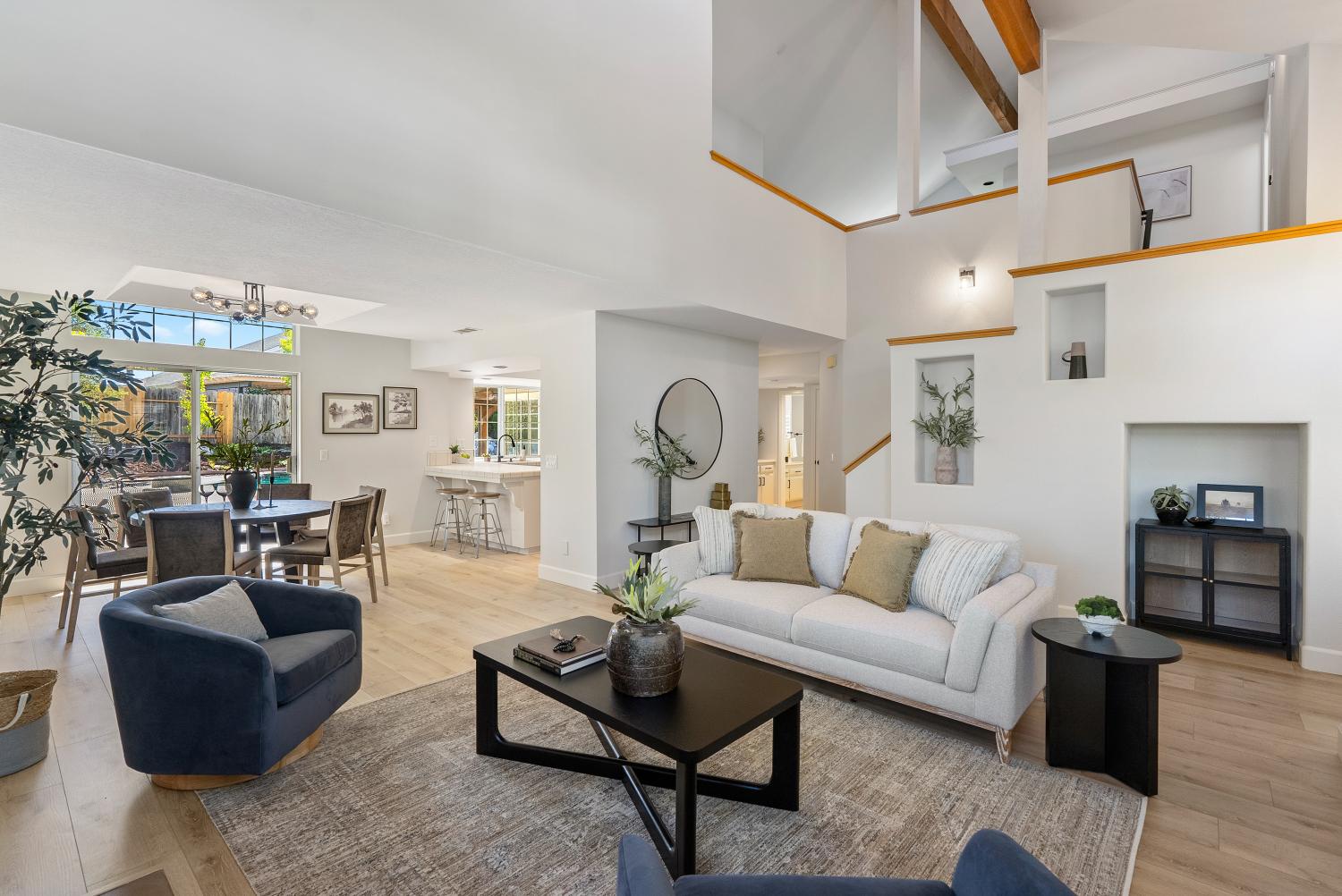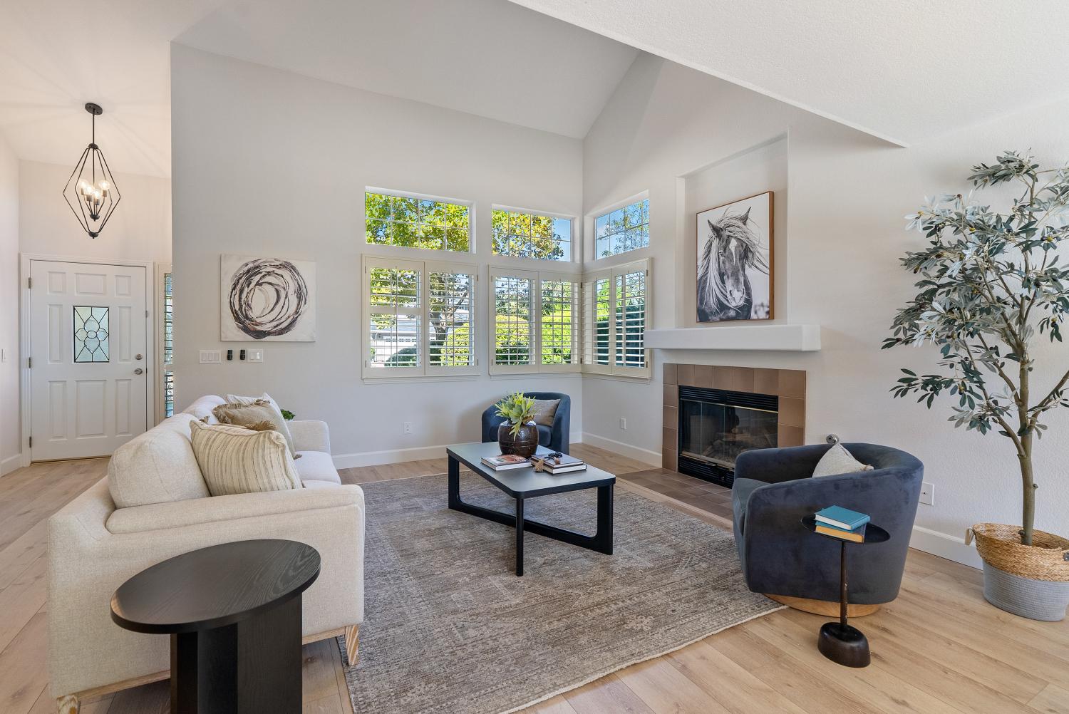 Welcome to this stunning Paso Robles residence that perfectly resonates with today’s modern lifestyle, located just minutes from the iconic historic downtown district. This move-in ready property combines chic sophistication with comfort, showcasing recent upgrades such as luxury vinyl flooring, designer-selected interior paint with a timeless palette, updated baseboards, deluxe carpeting, ceiling fans, water-saving faucets, and stylish light fixtures, adding a serene and tranquil atmosphere throughout the home. Opulent details include plantation shutters, tray ceilings in the kitchen and dining areas, custom built-ins, and recessed lighting. The vaulted ceilings and exposed beams provide an airy ambiance, complimented by the versatile and open floor plan. The flexible layout offers two bedrooms and a full bath on the main level - one of which is attached to the bathroom and as such offers an ensuite layout - and two additional bedrooms plus two full baths upstairs. The upstairs primary suite features a double vanity, walk-in closet, and high ceilings. The spacious great room, centered around a welcoming fireplace, flows easily into the kitchen and backyard—perfect for everyday living, dining and entertaining. The bright, well-appointed kitchen provides generous counter and cabinet space, a breakfast bar, gas range, dishwasher, built-in microwave, refrigerator, and wine storage. Upstairs, a comfortable family room loft, with a second fireplace, sets the scene for movie or game nights. Designed for effortless indoor-outdoor living, the property features a charming front terrace and a private backyard retreat with a sparkling pool, spa, and waterfall. The covered patio creates a relaxing space for outdoor dining and quiet evenings. With its timeless elegance, abundant storage, and attached two-car garage, this residence delivers affordable luxury in one of Paso Robles’ most central neighbors—close to shopping, schools, and the vibrant downtown filled with fine restaurants, boutiques, wine bars, and annual events such as Art in the Park and the New Year's Eve bon fire. Come experience the warmth, comfort, and charm which this Paso Robles gem has to offer—this truly is "the one" which you have been waiting for. Never before on the market and this premier offering is priced well and won’t last long so schedule a showing today.