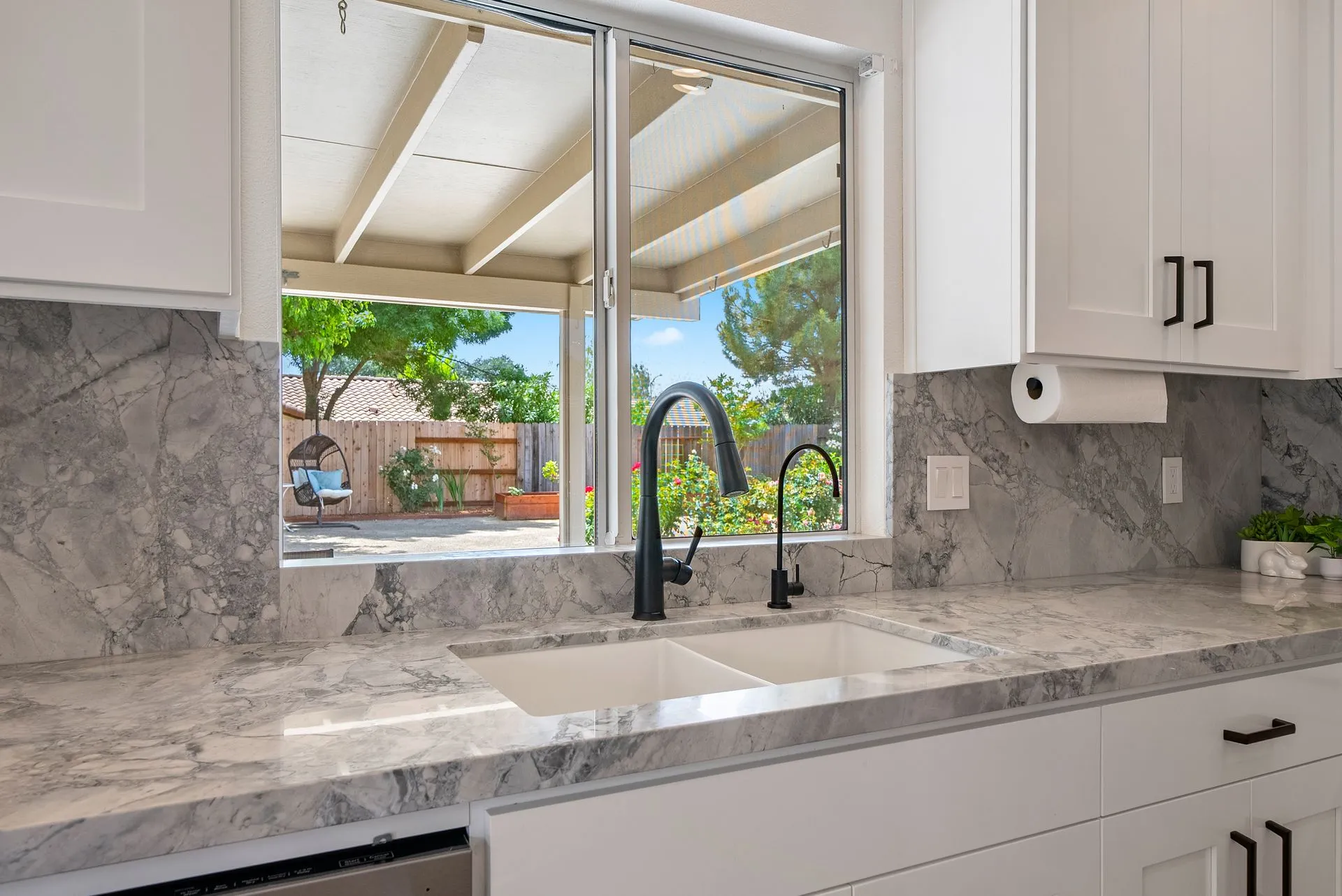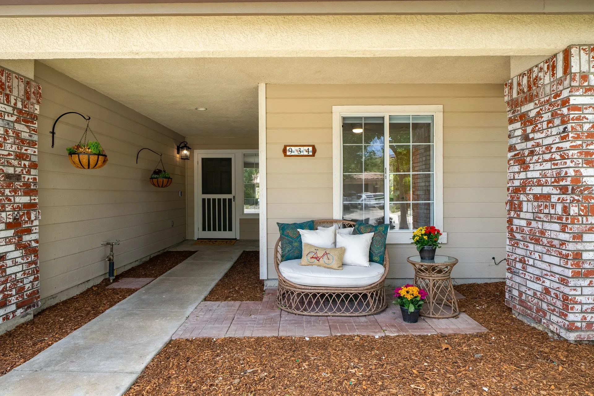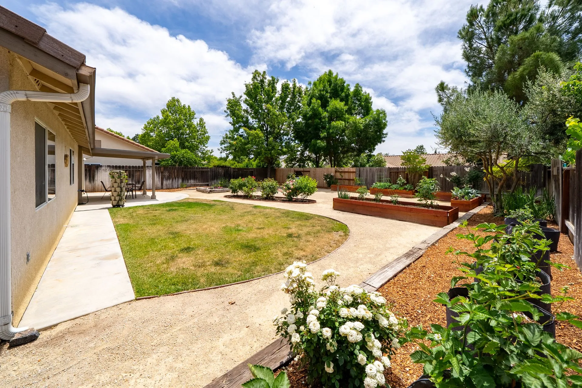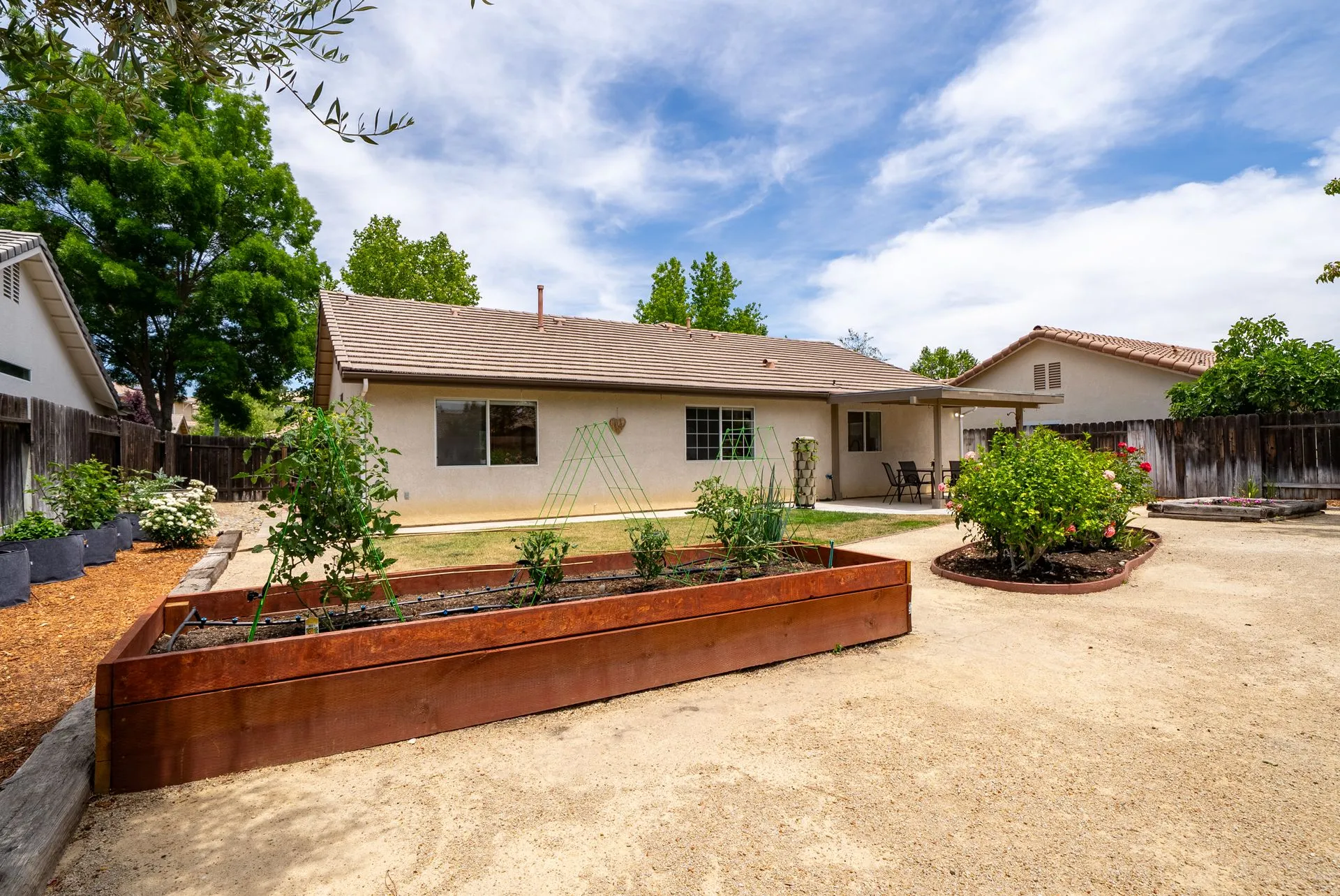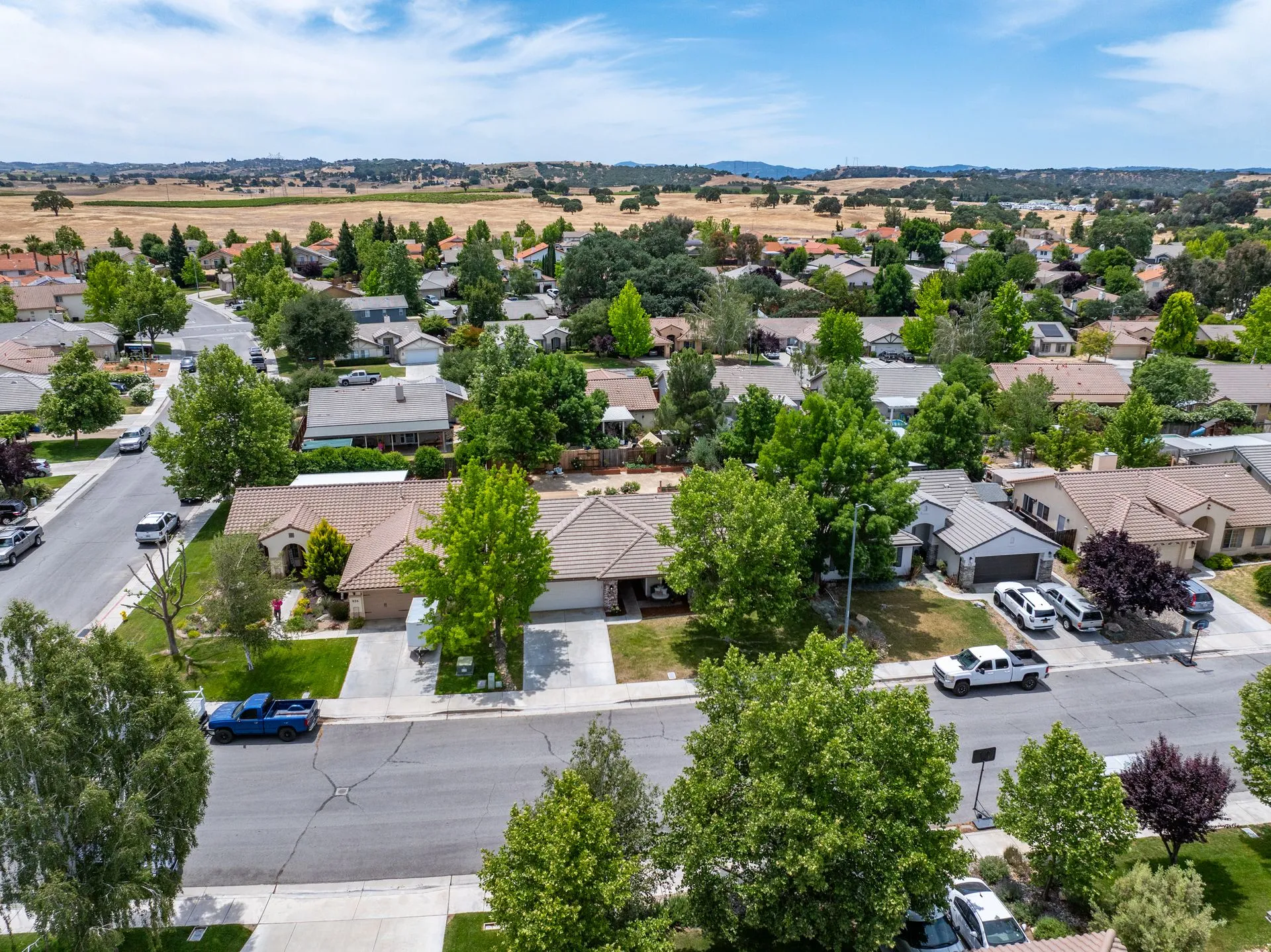 Welcome to 934 Sycamore Canyon Road—your dream home in the heart of Paso Robles Wine Country. This move-in ready, pristine, single-level residence has been thoughtfully updated w/ modern touches & stylish finishes throughout. Offering three spacious bedrooms & two bathrooms, the home is filled w/ natural light & offers an exceptional open flow, tied together by stunning tile floors. The private primary suite feels like a retreat, complete w/ mirrored closet doors & a beautifully updated ensuite bathroom featuring a dual-sink Super White Dolomite stone vanity, a glass-enclosed shower & separate water closet. The additional bedrooms are generously sized & the second bathroom has also been tastefully updated. The eat-in kitchen is a standout with elegant Super White Dolomite stone countertops & backsplash, refined white cabinetry w/ black hardware, recessed lighting & stainless steel appliances—including a French door refrigerator, gas range, microwave/air fryer & dishwasher. Completing the space is a view window above the sink & RO system connected to both the sink and fridge. A sliding glass door provides seamless flow from the kitchen to the private backyard w/ covered patio & raised garden beds full of fresh herbs, kale, berries & more. The separate laundry room includes a newer washer and dryer & leads into the two-car garage, which features a Tesla EV charger, an extra refrigerator, updated smart garage door opener, and room for additional storage. Throughout the home, recent upgrades include designer lighting, ceiling fans, 4” baseboards, updated light switches/power outlets, and interior door hardware. Smart home features include a Nest thermostat & smoke detectors; SimpliSafe entry lock and notification system; a smart air filter in the primary bath; and a smart watering controller for the yard. An owned Hague water filtration and RO system—installed in July 2024—ensures top-tier water quality throughout the home. Outdoors, enjoy a shaded front porch, a covered back patio, beautiful rose bushes, and multiple inviting spaces for relaxing or entertaining. Located in the highly sought-after Meadowlark neighborhood, this tranquil setting offers a peaceful lifestyle just minutes from downtown Paso Robles, award-winning wineries, and within easy reach of San Luis Obispo, scenic hiking trails, and Central Coast beaches. This beautifully updated home is ready for you to move in and enjoy—whether for entertaining guests or enjoying quiet moments at home.