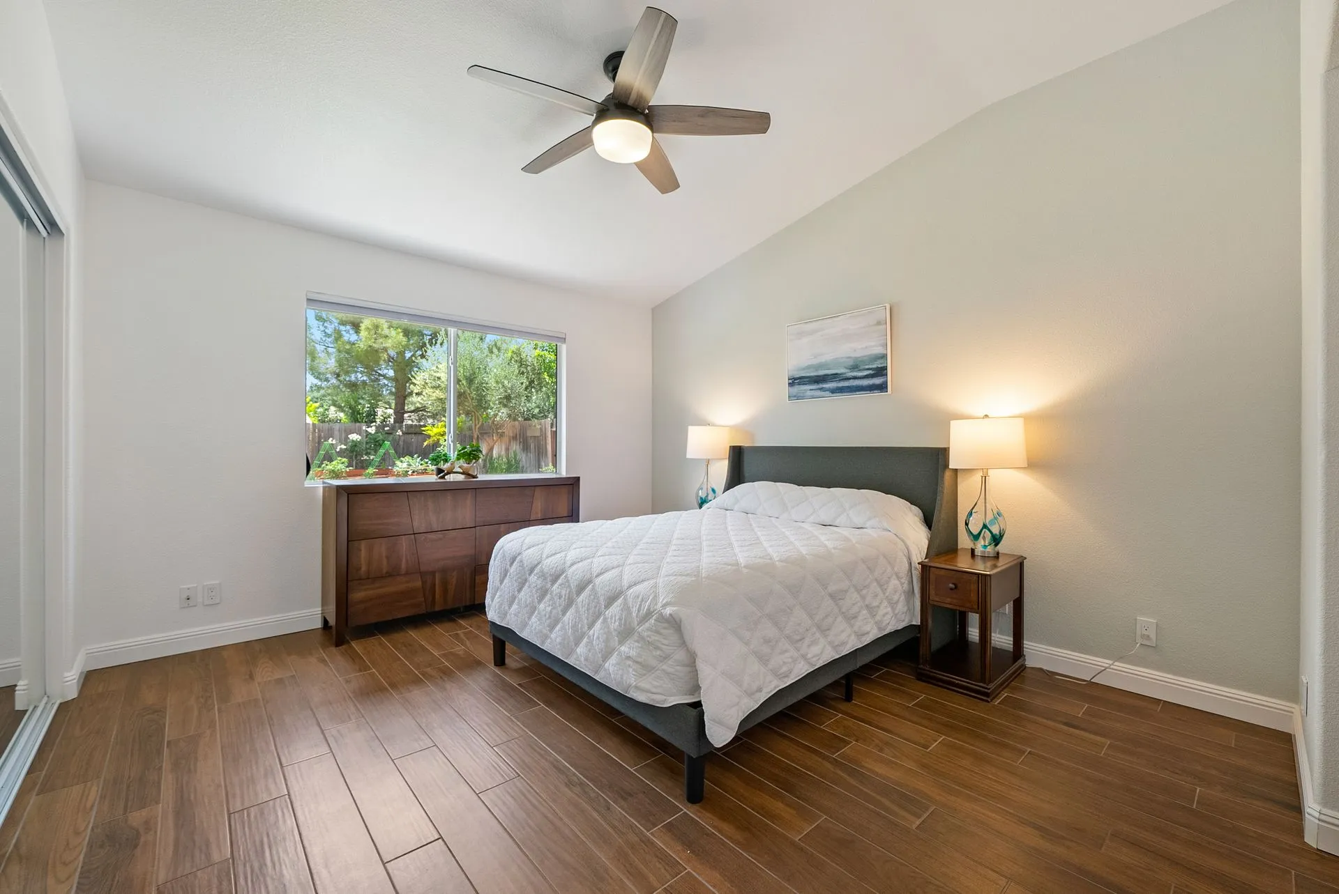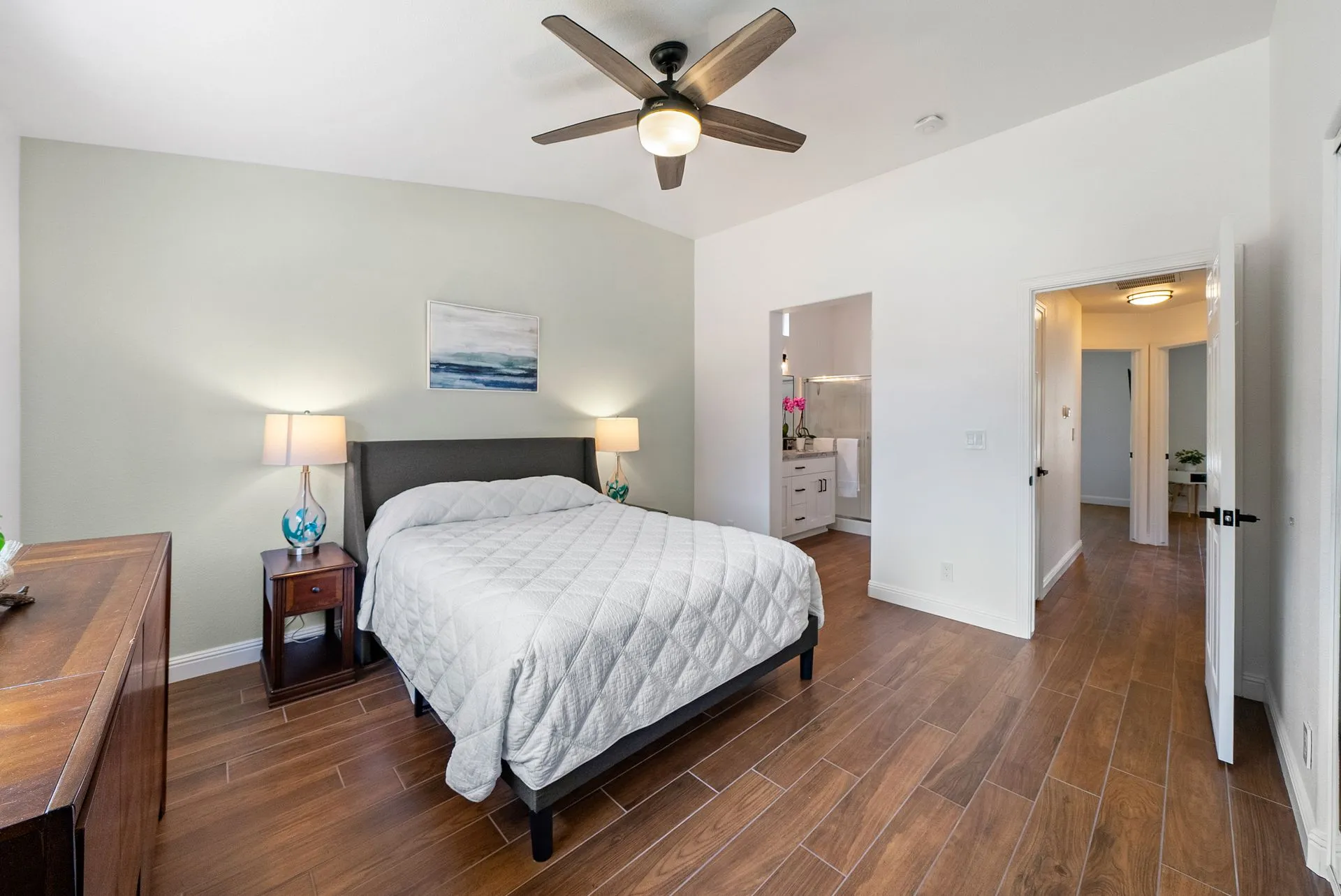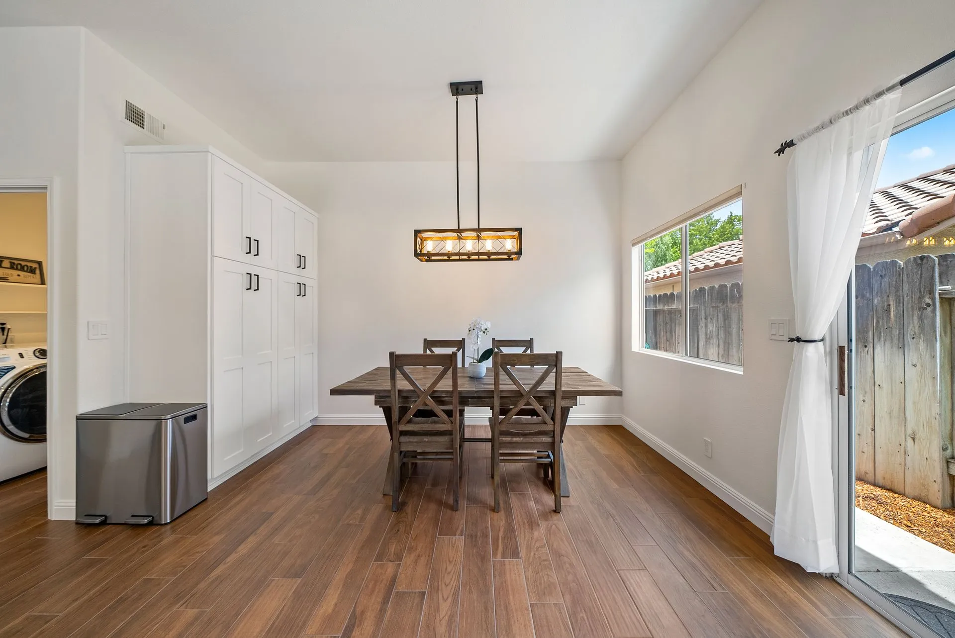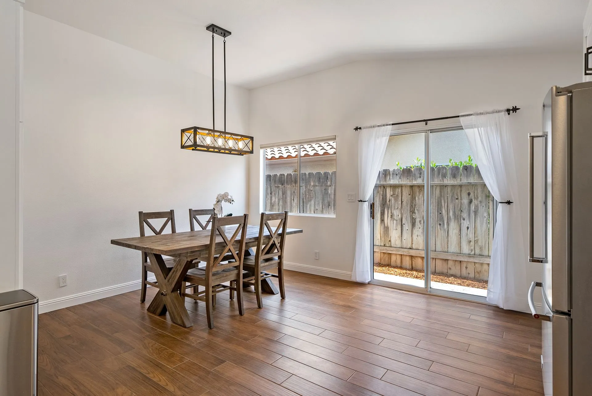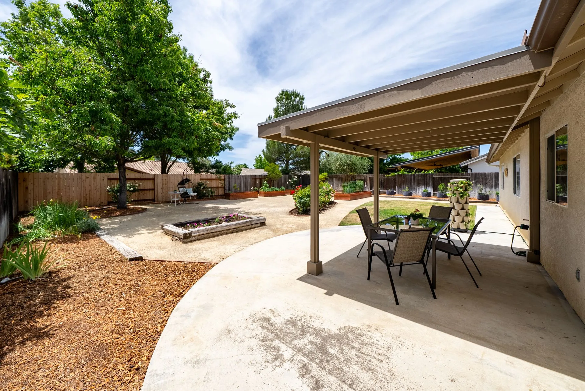 Welcome to 934 Sycamore Canyon Road—your dream home in the heart of Paso Robles Wine Country. This move-in ready, pristine, single-level residence has been thoughtfully updated w/ modern touches & stylish finishes throughout. Offering three spacious bedrooms & two bathrooms, the home is filled w/ natural light & offers an exceptional open flow, tied together by stunning tile floors. The private primary suite feels like a retreat, complete w/ mirrored closet doors & a beautifully updated ensuite bathroom featuring a dual-sink Super White Dolomite stone vanity, a glass-enclosed shower & separate water closet. The additional bedrooms are generously sized & the second bathroom has also been tastefully updated. The eat-in kitchen is a standout with elegant Super White Dolomite stone countertops & backsplash, refined white cabinetry w/ black hardware, recessed lighting & stainless steel appliances—including a French door refrigerator, gas range, microwave/air fryer & dishwasher. Completing the space is a view window above the sink & RO system connected to both the sink and fridge. A sliding glass door provides seamless flow from the kitchen to the private backyard w/ covered patio & raised garden beds full of fresh herbs, kale, berries & more. The separate laundry room includes a newer washer and dryer & leads into the two-car garage, which features a Tesla EV charger, an extra refrigerator, updated smart garage door opener, and room for additional storage. Throughout the home, recent upgrades include designer lighting, ceiling fans, 4” baseboards, updated light switches/power outlets, and interior door hardware. Smart home features include a Nest thermostat & smoke detectors; SimpliSafe entry lock and notification system; a smart air filter in the primary bath; and a smart watering controller for the yard. An owned Hague water filtration and RO system—installed in July 2024—ensures top-tier water quality throughout the home. Outdoors, enjoy a shaded front porch, a covered back patio, beautiful rose bushes, and multiple inviting spaces for relaxing or entertaining. Located in the highly sought-after Meadowlark neighborhood, this tranquil setting offers a peaceful lifestyle just minutes from downtown Paso Robles, award-winning wineries, and within easy reach of San Luis Obispo, scenic hiking trails, and Central Coast beaches. This beautifully updated home is ready for you to move in and enjoy—whether for entertaining guests or enjoying quiet moments at home.