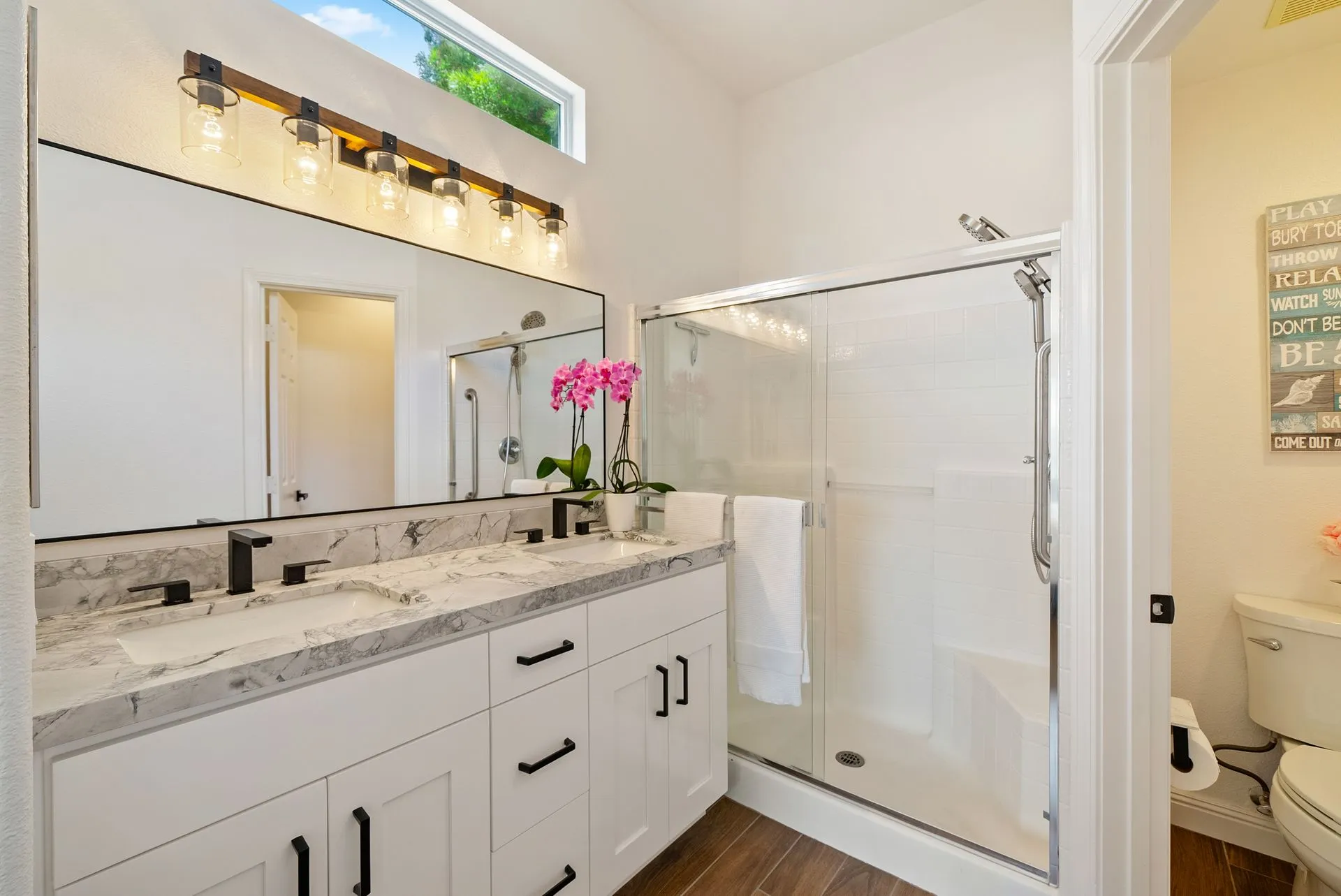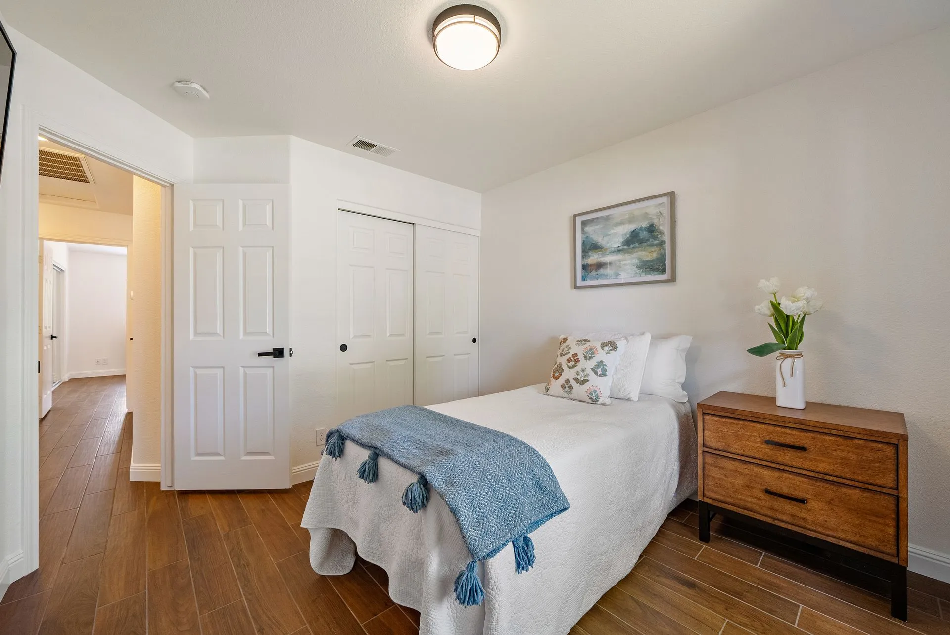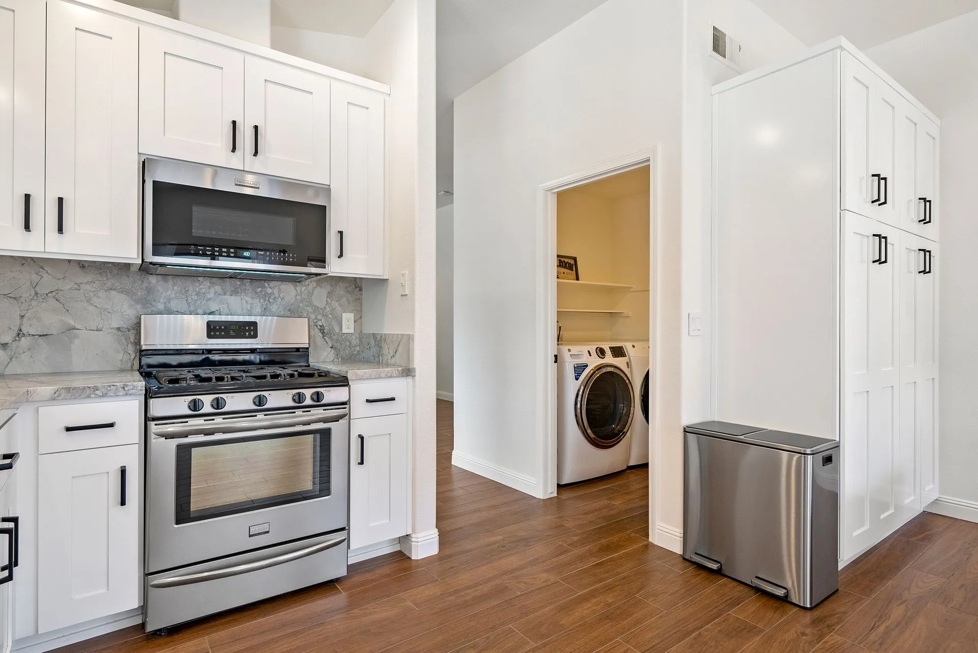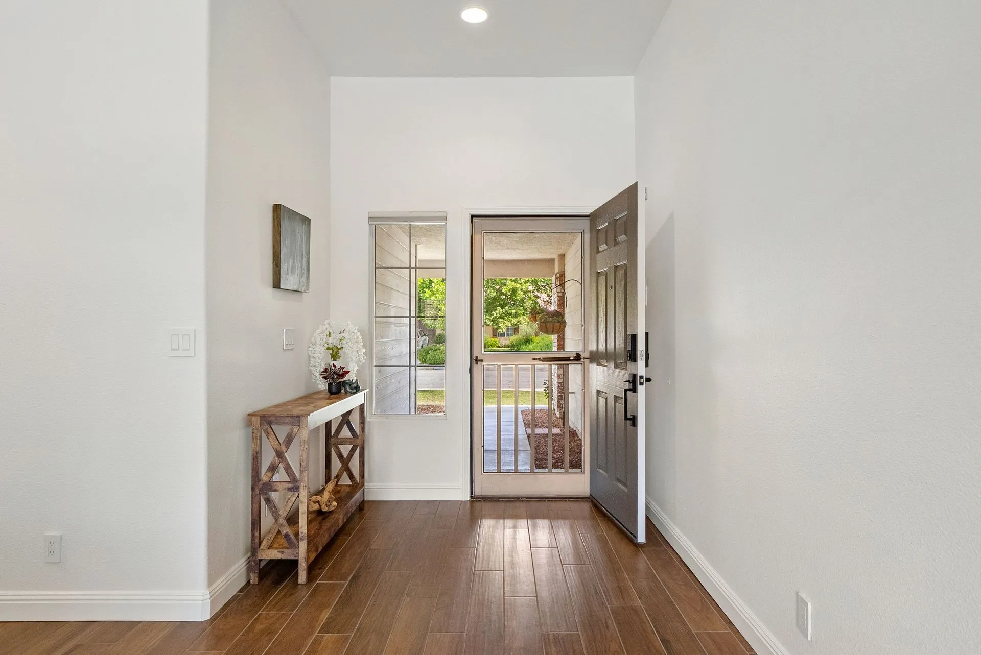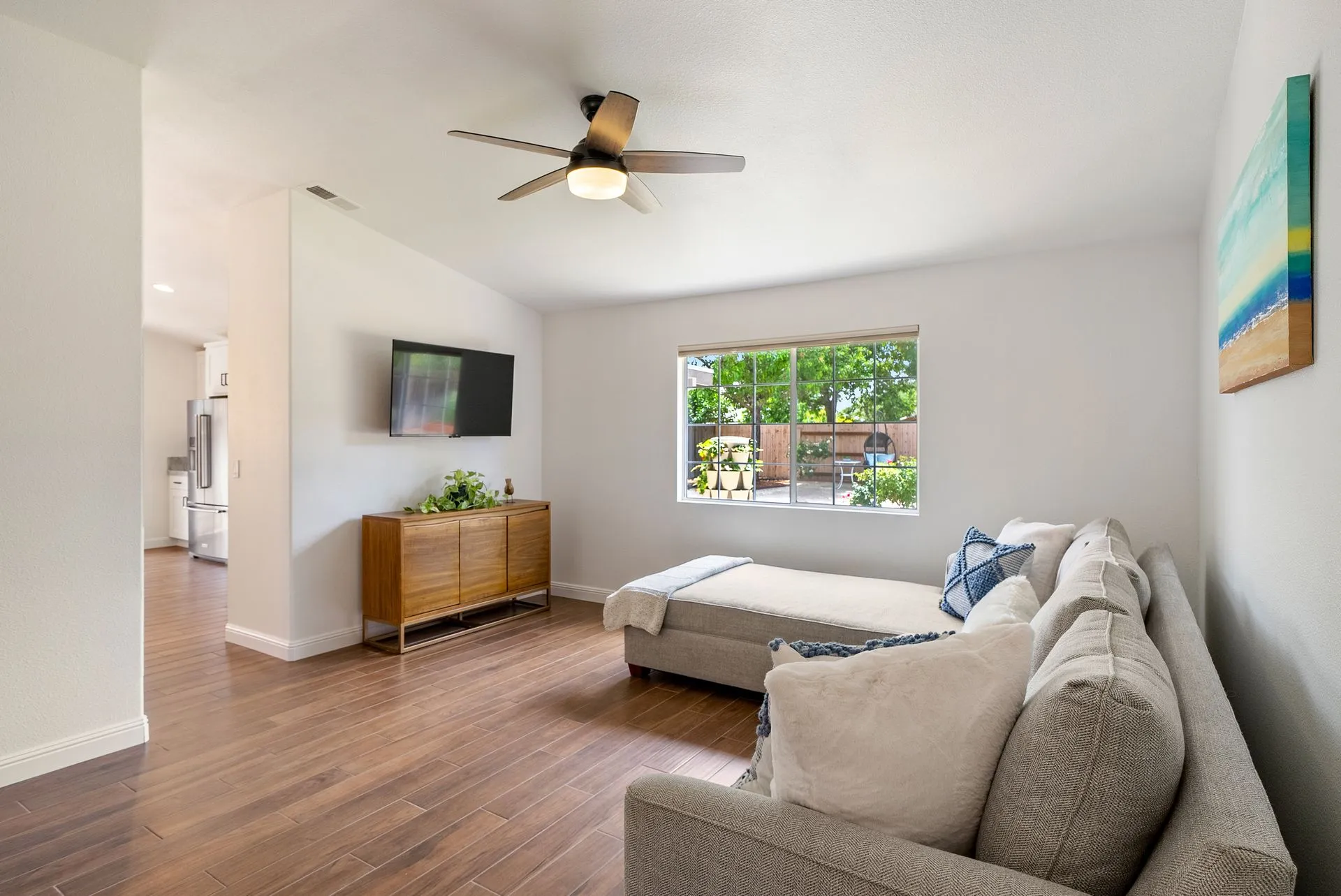 Welcome to 934 Sycamore Canyon Road—your dream home in the heart of Paso Robles Wine Country. This move-in ready, pristine, single-level residence has been thoughtfully updated w/ modern touches & stylish finishes throughout. Offering three spacious bedrooms & two bathrooms, the home is filled w/ natural light & offers an exceptional open flow, tied together by stunning tile floors. The private primary suite feels like a retreat, complete w/ mirrored closet doors & a beautifully updated ensuite bathroom featuring a dual-sink Super White Dolomite stone vanity, a glass-enclosed shower & separate water closet. The additional bedrooms are generously sized & the second bathroom has also been tastefully updated. The eat-in kitchen is a standout with elegant Super White Dolomite stone countertops & backsplash, refined white cabinetry w/ black hardware, recessed lighting & stainless steel appliances—including a French door refrigerator, gas range, microwave/air fryer & dishwasher. Completing the space is a view window above the sink & RO system connected to both the sink and fridge. A sliding glass door provides seamless flow from the kitchen to the private backyard w/ covered patio & raised garden beds full of fresh herbs, kale, berries & more. The separate laundry room includes a newer washer and dryer & leads into the two-car garage, which features a Tesla EV charger, an extra refrigerator, updated smart garage door opener, and room for additional storage. Throughout the home, recent upgrades include designer lighting, ceiling fans, 4” baseboards, updated light switches/power outlets, and interior door hardware. Smart home features include a Nest thermostat & smoke detectors; SimpliSafe entry lock and notification system; a smart air filter in the primary bath; and a smart watering controller for the yard. An owned Hague water filtration and RO system—installed in July 2024—ensures top-tier water quality throughout the home. Outdoors, enjoy a shaded front porch, a covered back patio, beautiful rose bushes, and multiple inviting spaces for relaxing or entertaining. Located in the highly sought-after Meadowlark neighborhood, this tranquil setting offers a peaceful lifestyle just minutes from downtown Paso Robles, award-winning wineries, and within easy reach of San Luis Obispo, scenic hiking trails, and Central Coast beaches. This beautifully updated home is ready for you to move in and enjoy—whether for entertaining guests or enjoying quiet moments at home.