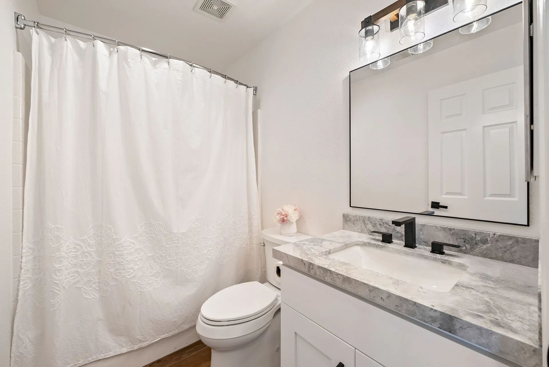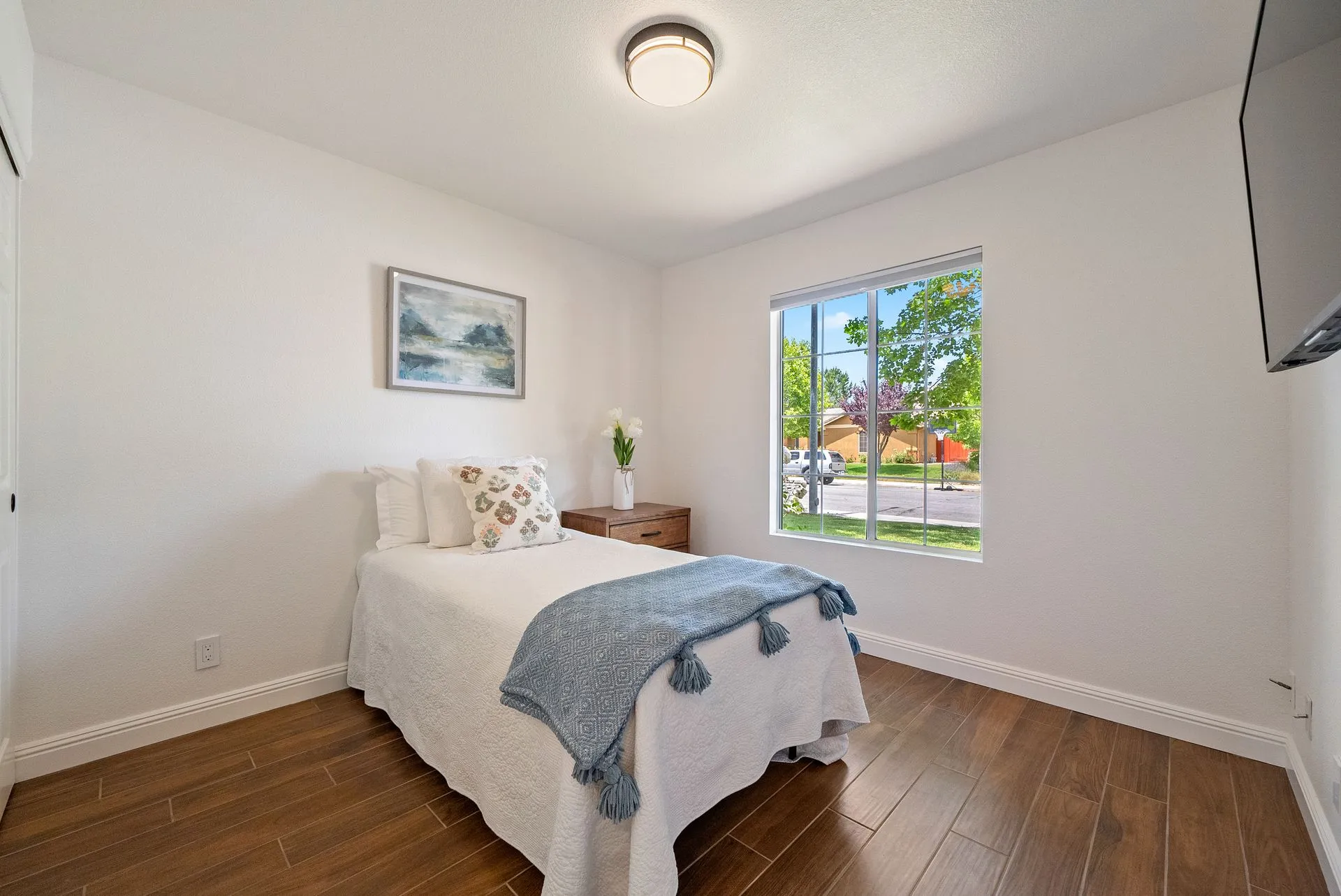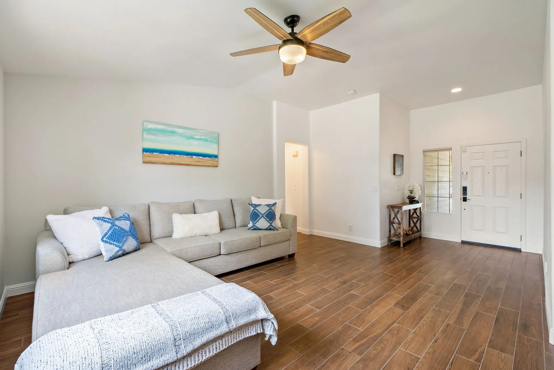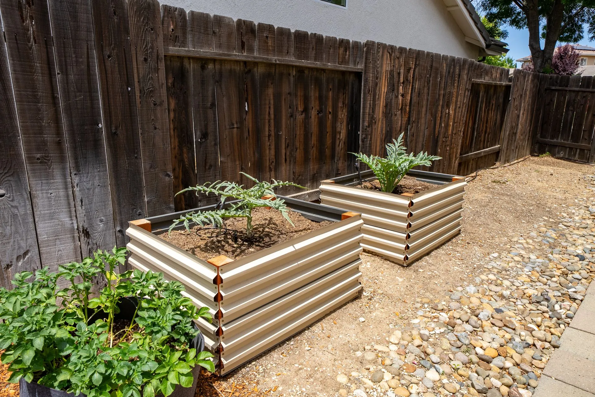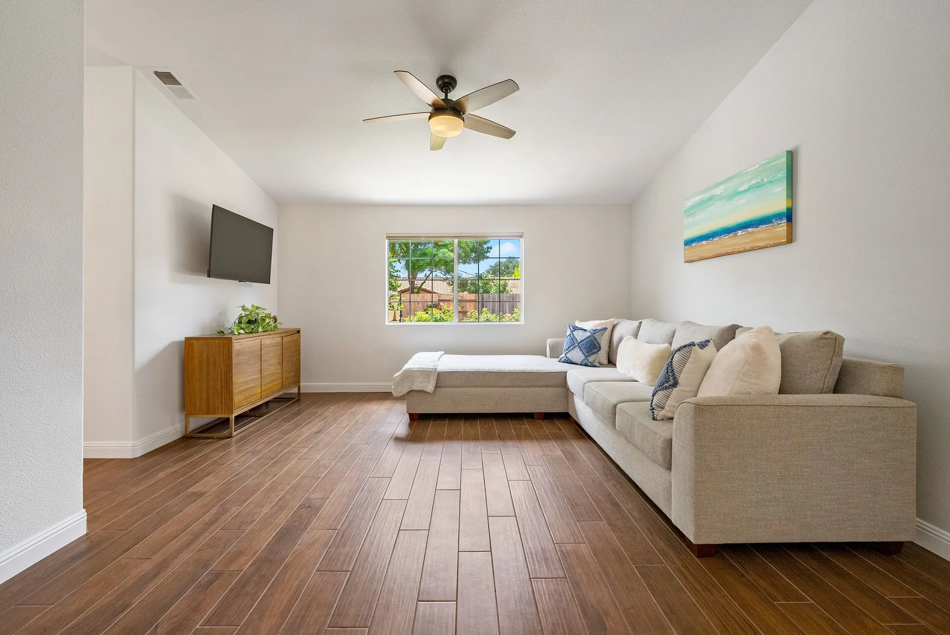 Welcome to 934 Sycamore Canyon Road—your dream home in the heart of Paso Robles Wine Country. This move-in ready, pristine, single-level residence has been thoughtfully updated w/ modern touches & stylish finishes throughout. Offering three spacious bedrooms & two bathrooms, the home is filled w/ natural light & offers an exceptional open flow, tied together by stunning tile floors. The private primary suite feels like a retreat, complete w/ mirrored closet doors & a beautifully updated ensuite bathroom featuring a dual-sink Super White Dolomite stone vanity, a glass-enclosed shower & separate water closet. The additional bedrooms are generously sized & the second bathroom has also been tastefully updated. The eat-in kitchen is a standout with elegant Super White Dolomite stone countertops & backsplash, refined white cabinetry w/ black hardware, recessed lighting & stainless steel appliances—including a French door refrigerator, gas range, microwave/air fryer & dishwasher. Completing the space is a view window above the sink & RO system connected to both the sink and fridge. A sliding glass door provides seamless flow from the kitchen to the private backyard w/ covered patio & raised garden beds full of fresh herbs, kale, berries & more. The separate laundry room includes a newer washer and dryer & leads into the two-car garage, which features a Tesla EV charger, an extra refrigerator, updated smart garage door opener, and room for additional storage. Throughout the home, recent upgrades include designer lighting, ceiling fans, 4” baseboards, updated light switches/power outlets, and interior door hardware. Smart home features include a Nest thermostat & smoke detectors; SimpliSafe entry lock and notification system; a smart air filter in the primary bath; and a smart watering controller for the yard. An owned Hague water filtration and RO system—installed in July 2024—ensures top-tier water quality throughout the home. Outdoors, enjoy a shaded front porch, a covered back patio, beautiful rose bushes, and multiple inviting spaces for relaxing or entertaining. Located in the highly sought-after Meadowlark neighborhood, this tranquil setting offers a peaceful lifestyle just minutes from downtown Paso Robles, award-winning wineries, and within easy reach of San Luis Obispo, scenic hiking trails, and Central Coast beaches. This beautifully updated home is ready for you to move in and enjoy—whether for entertaining guests or enjoying quiet moments at home.